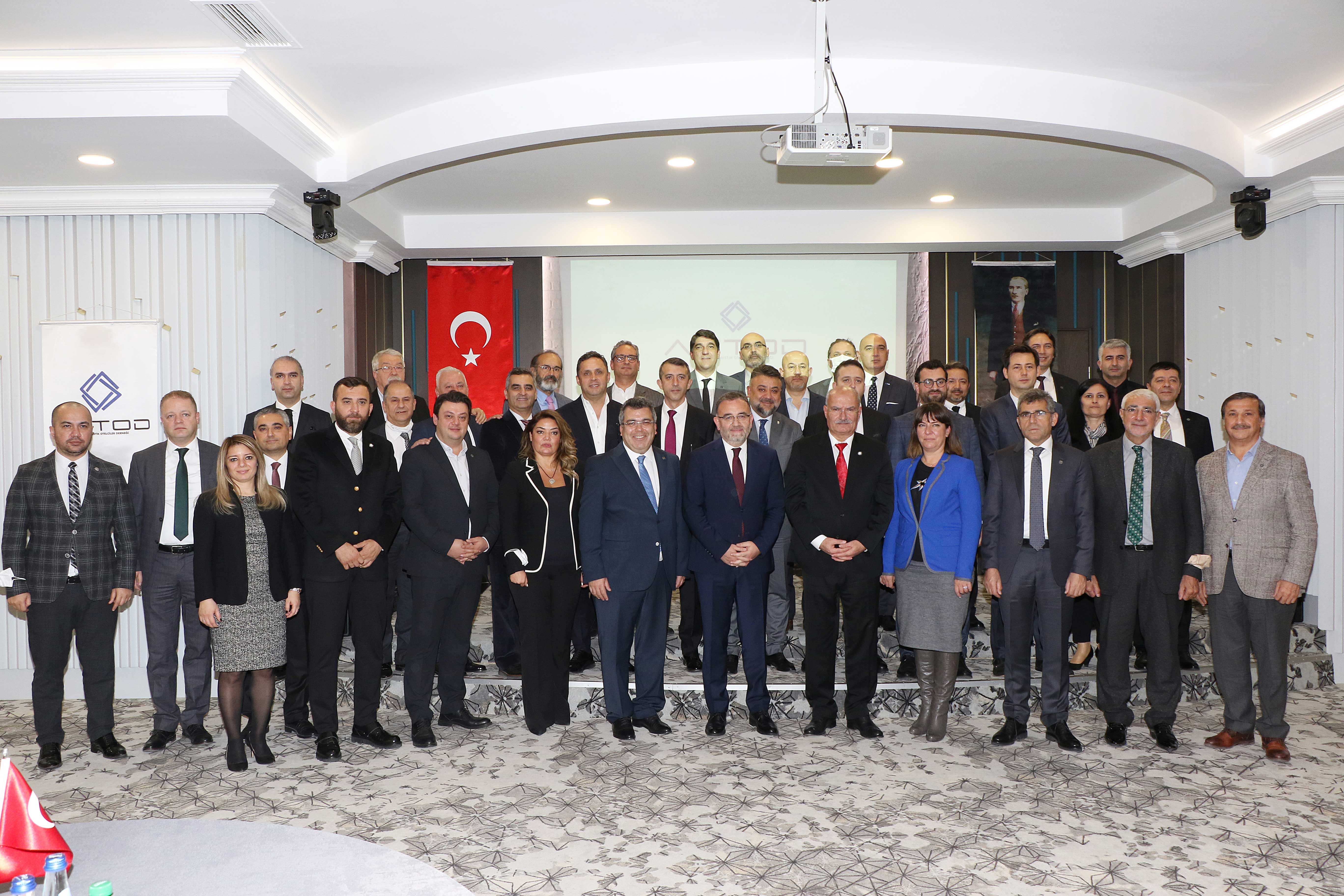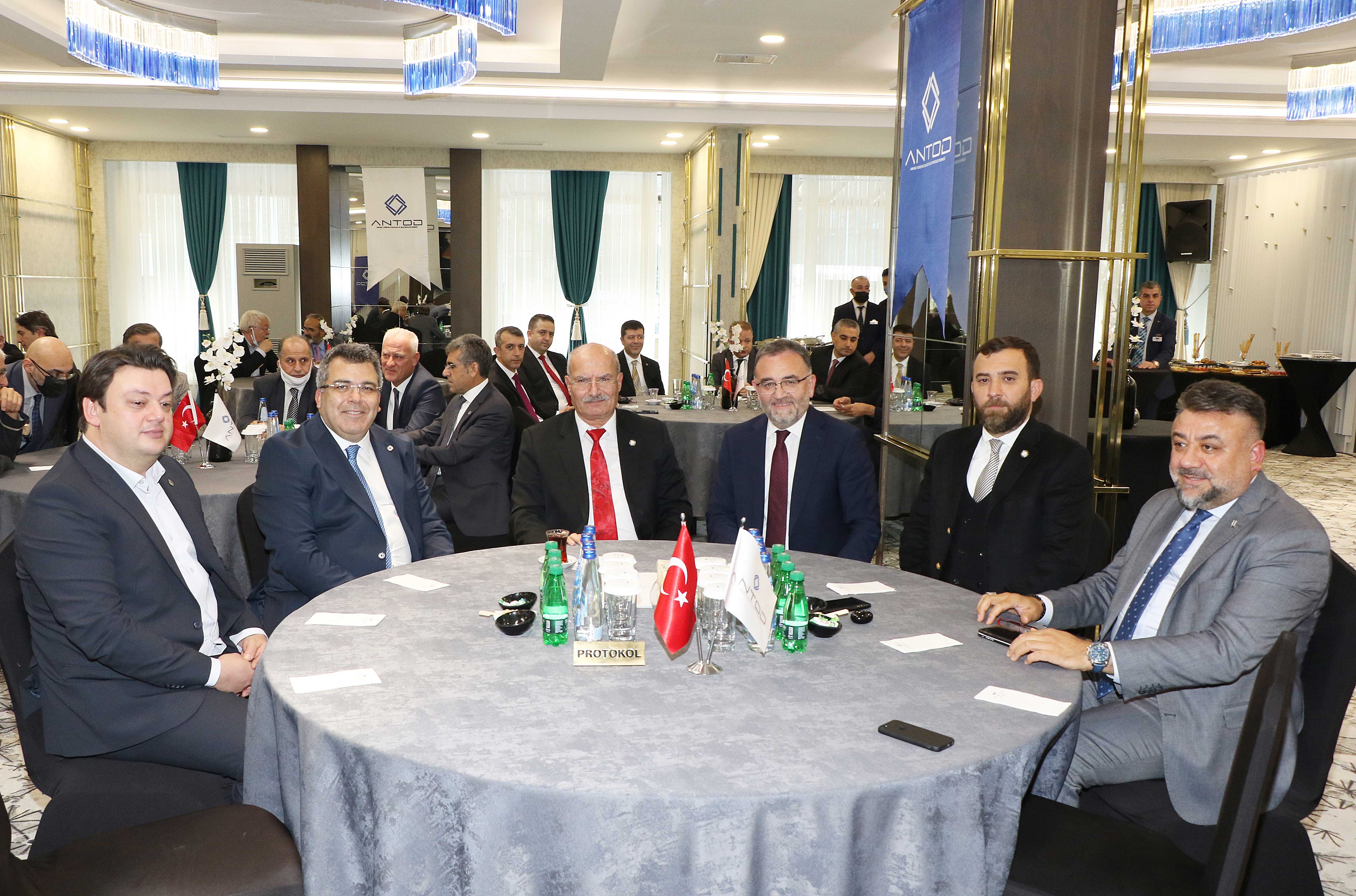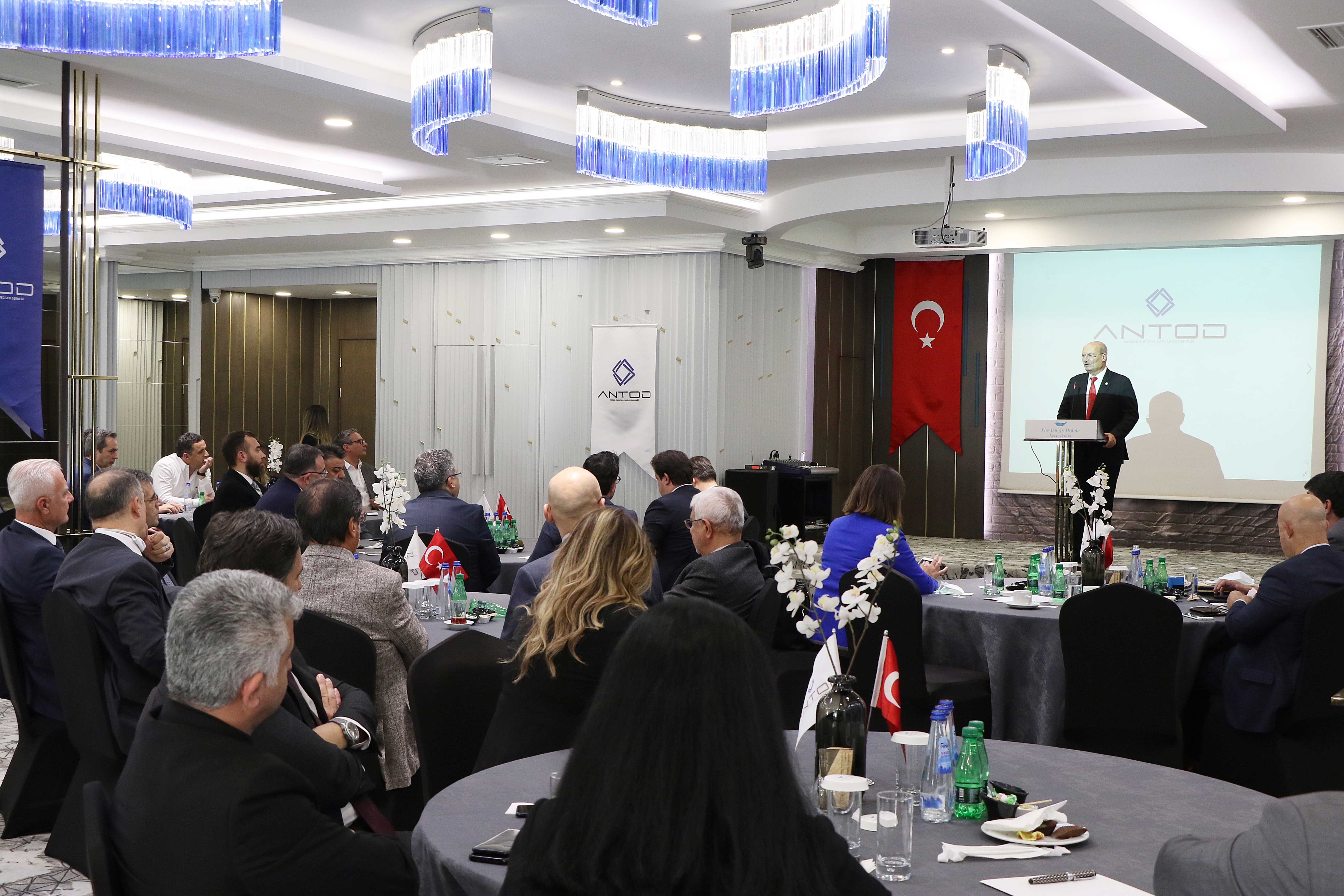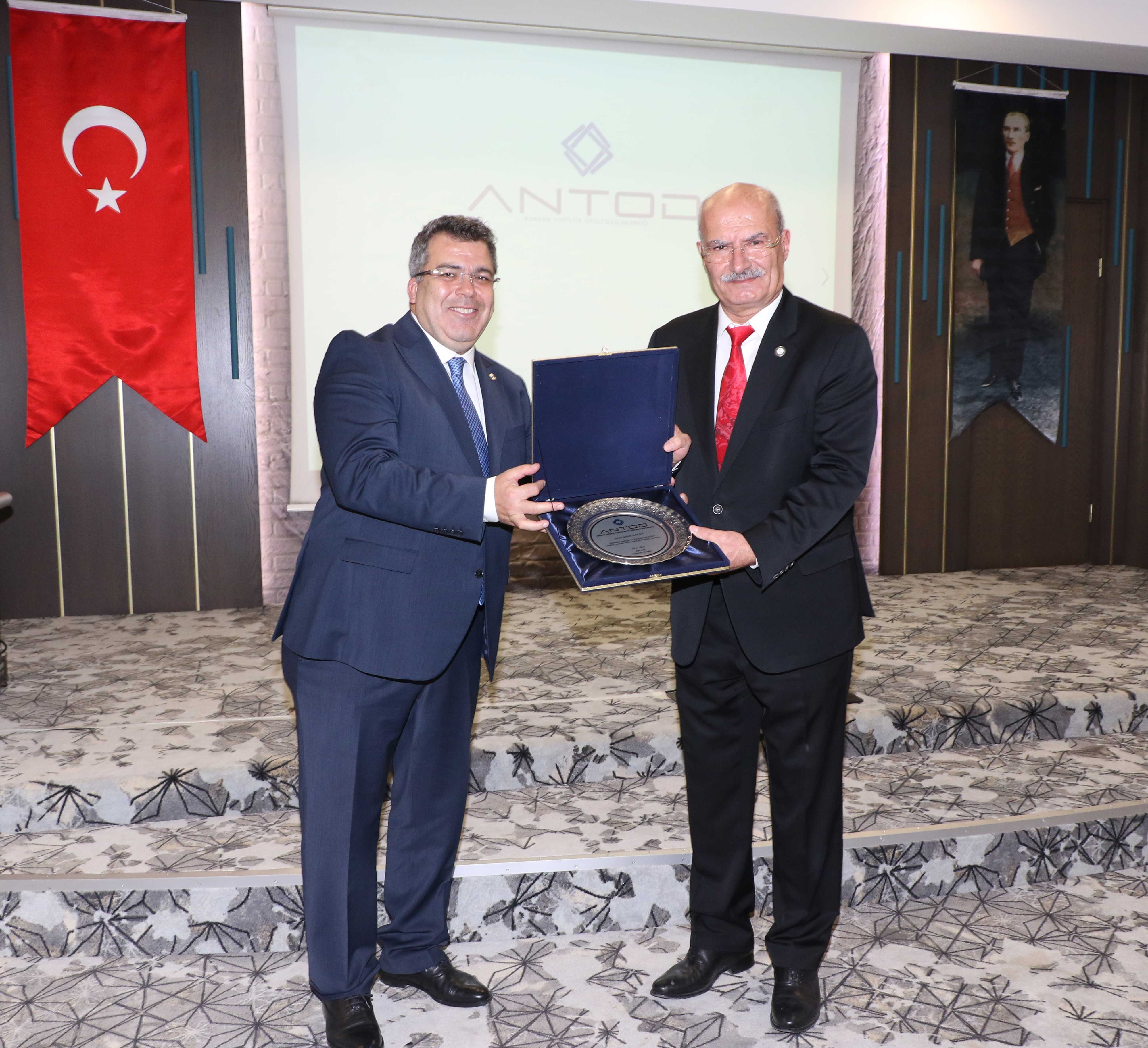 Konuşmasının ardından ANTOD Yönetim Kurulu Başkanı Atilla Aytun, ATO Başkanı Baran'a kente katkılarından dolayı verilen teşekkür plaketi sundu.