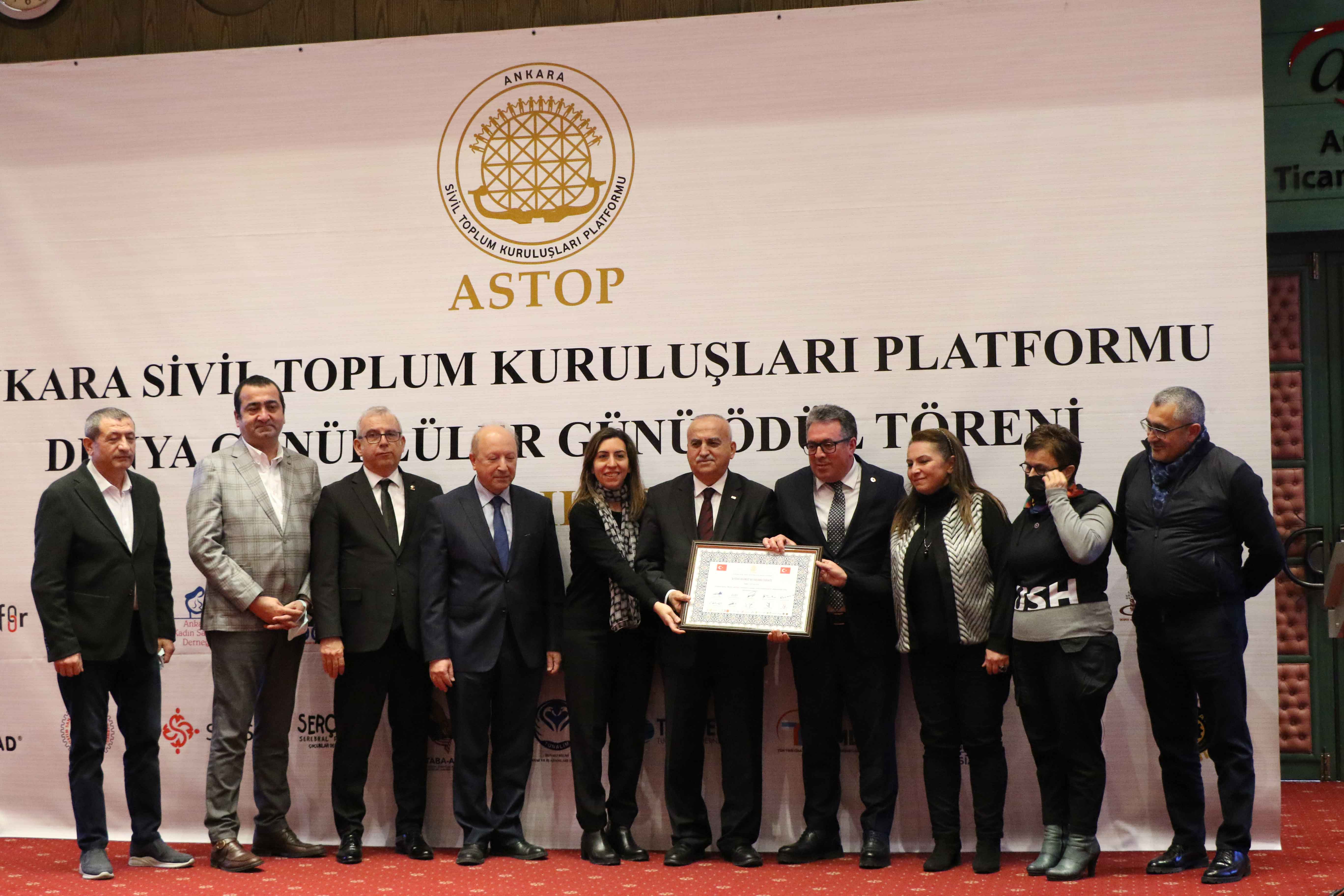 5 Aralık Dünya Gönüllüler Günü dolayısıyla ATO'nun ev sahipliğinde Ankara Sivil Toplum Kuruluşları Platformu (ASTOP) tarafından düzenlenen törende, ATO Başkanı Gürsel Baran, "Sivil Toplum Dostu Beratı"na layık görüldü.