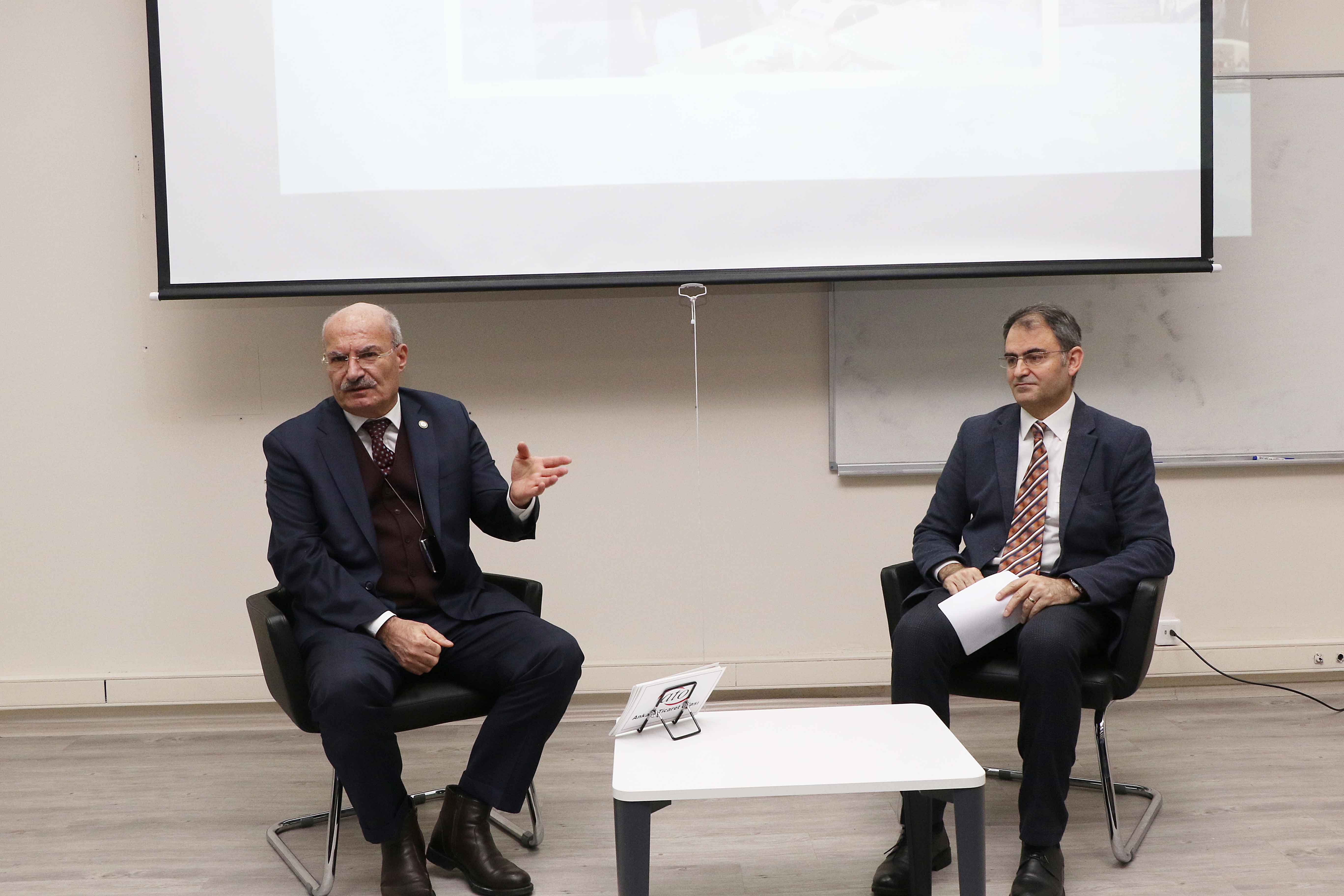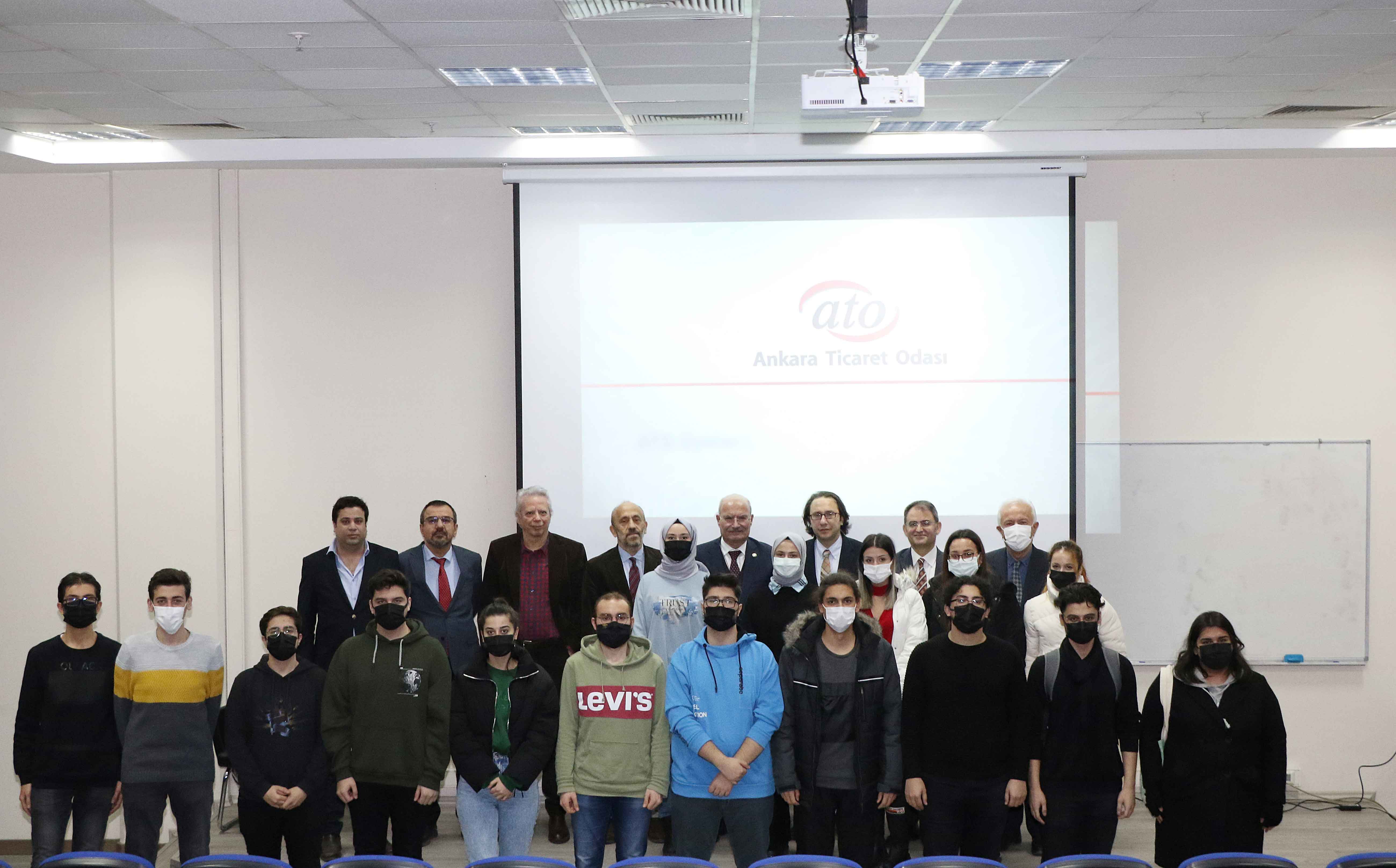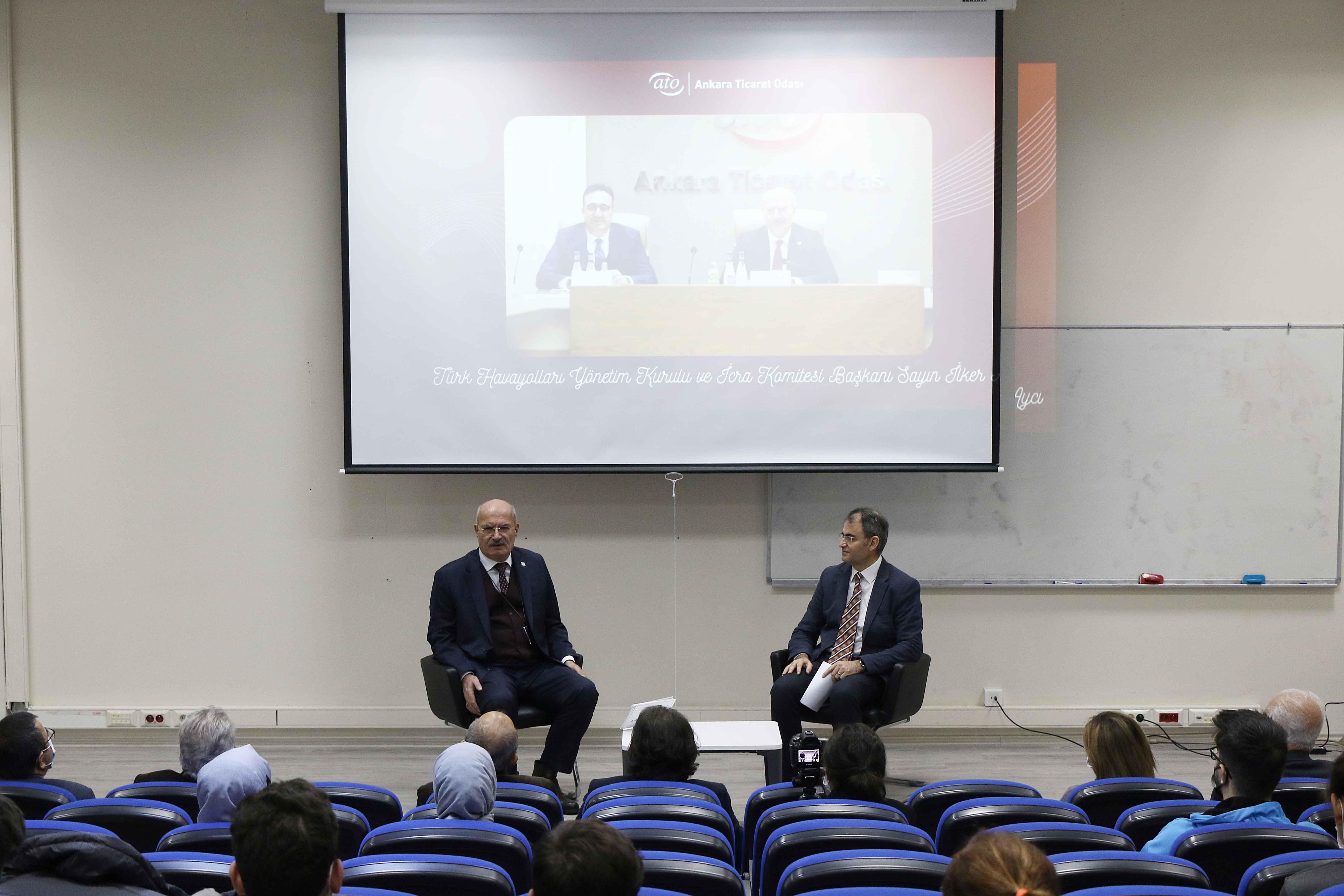 21 ARALIK 2021- Ankara Ticaret Odası (ATO) Yönetim Kurulu Başkanı Gürsel Baran, Ankara Bilim Üniversitesi'nin, öğrencilerin okudukları şehrin ticaret, ekonomik, sosyal ve kültürel hayatını tanımaları amacıyla gerçekleştirdiği "Ankara" dersine konuşmacı olarak katılarak, Ankara'nın ticaret ve ekonomik hayatı, sosyal ve kültürel zenginlikleri ile Ankara Ticaret Odası'nın faaliyetleri hakkında bilgi verdi.