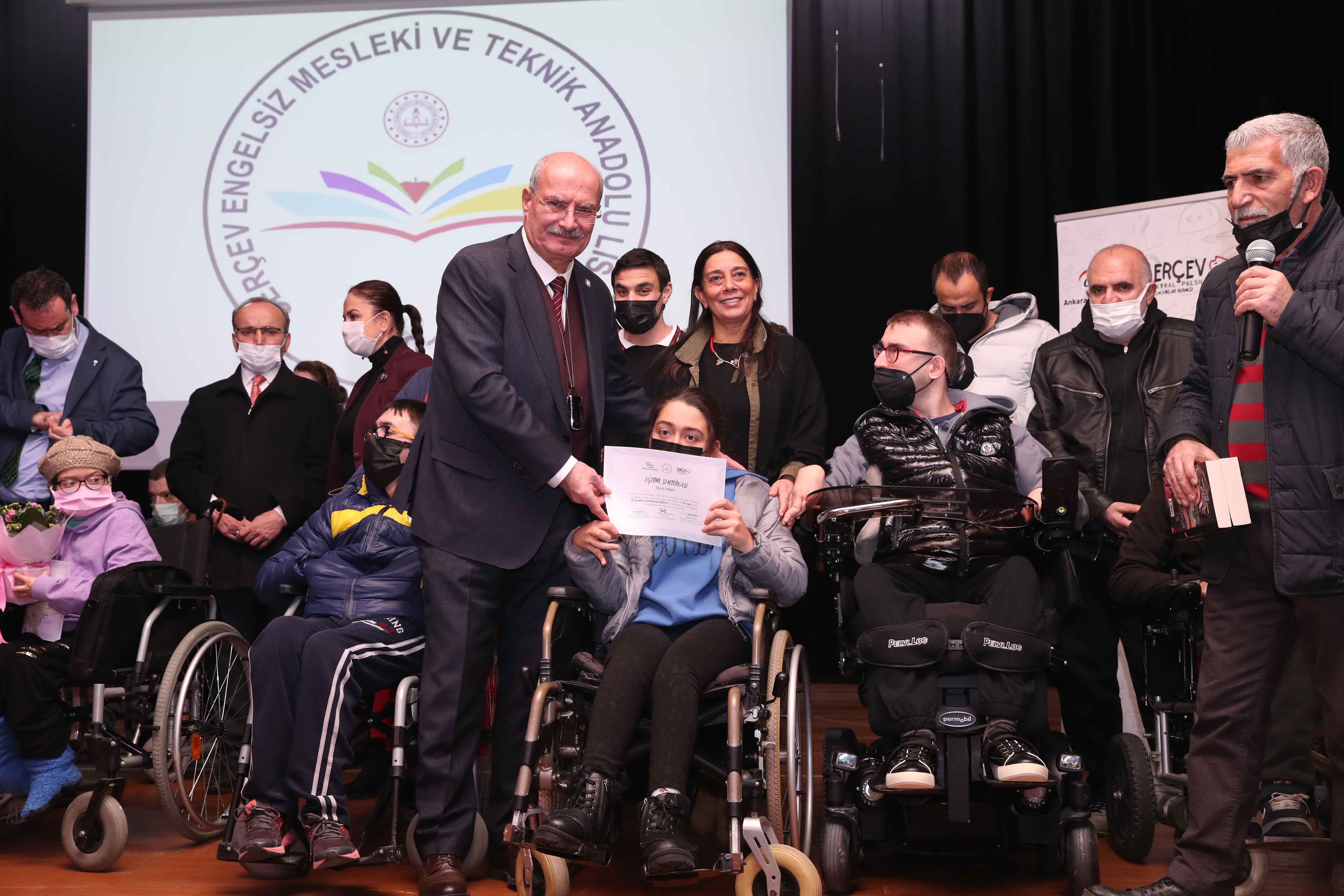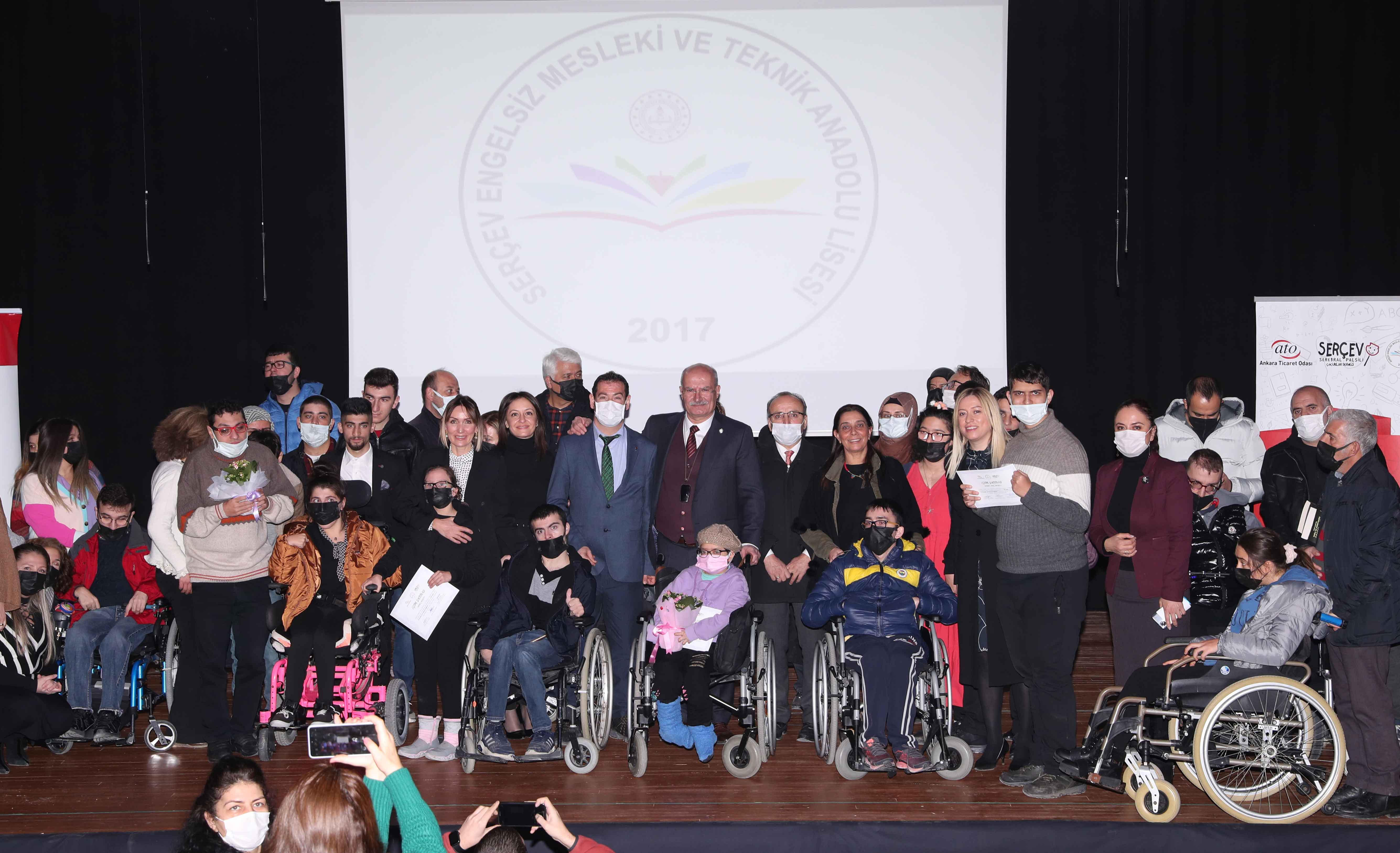 20 Ocak 2022- Ankara Ticaret Odası'nın (ATO) "E-Ticaret ve E-İhracat Seferberliği" kapsamında hayata geçirdiği ve SERÇEV Engelsiz Mesleki ve Teknik Anadolu Lisesi'nde eğitim gören serebral palsili gençlerin de faydalandığı "E-Ticaret ve E-İhracat" eğitimlerinin ilk etabı tamamlandı. Üç ay süren eğitime katılarak internet üzerinden ticaret ve ihracat yapmanın bütün inceliklerini öğrenen serebral palsili gençler sertifikalarını ATO Yönetim Kurulu Başkanı Gürsel Baran'ın elinden aldı. Baran, "Serebral Palsili gençlerimizin e-ticareti öğrenerek çalışma hayatında başarı sağlaması yalnızca kendileri için değil ülke ekonomisi için de büyük bir avantajdır" dedi.