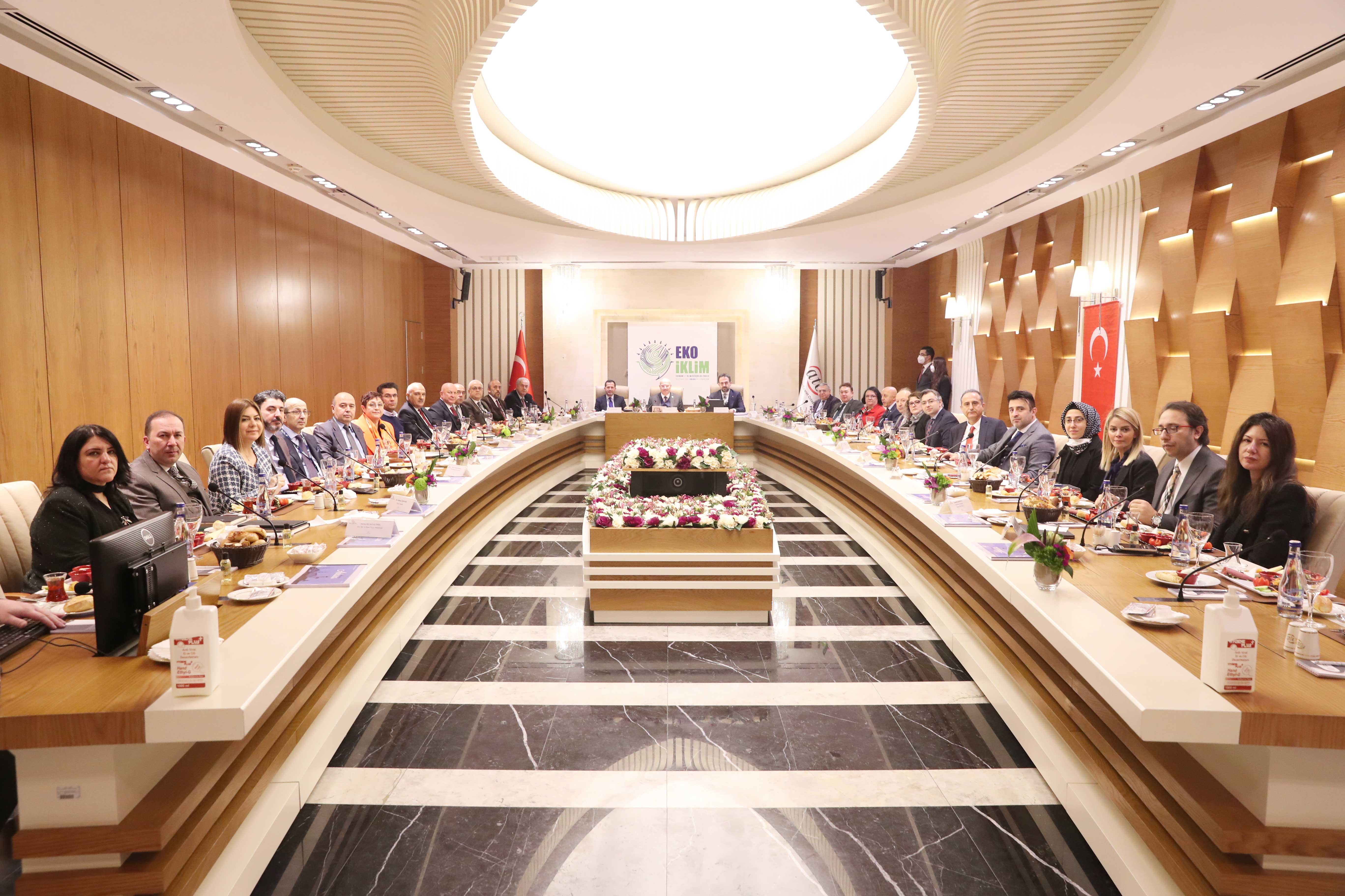 Ankara Ticaret Odası'nın öncülüğünde 30-31 Mart tarihlerinde ATO Congresium'da gerçekleşecek "EKO İKLİM Ekonomi ve İklim Değişikliği Zirvesi" hazırlık toplantısı, ATO Yönetim Kurulu Başkanı Gürsel Baran ile ATO Yönetim Kurulu Başkan Yardımcısı ve Ankara Kent Konseyi (AKK) Başkanı Halil İbrahim Yılmaz'ın ev sahipliğinde, Sanayi, Ticaret, Enerji, Tabii Kaynaklar, Bilgi ve Teknoloji Komisyonu Başkanı Ziya Altunyaldız ile Ankara'da bulunan üniversitelerinin Rektör, Rektör Yardımcısı ve temsilcisi düzeyinde katılımıyla gerçekleştirildi.