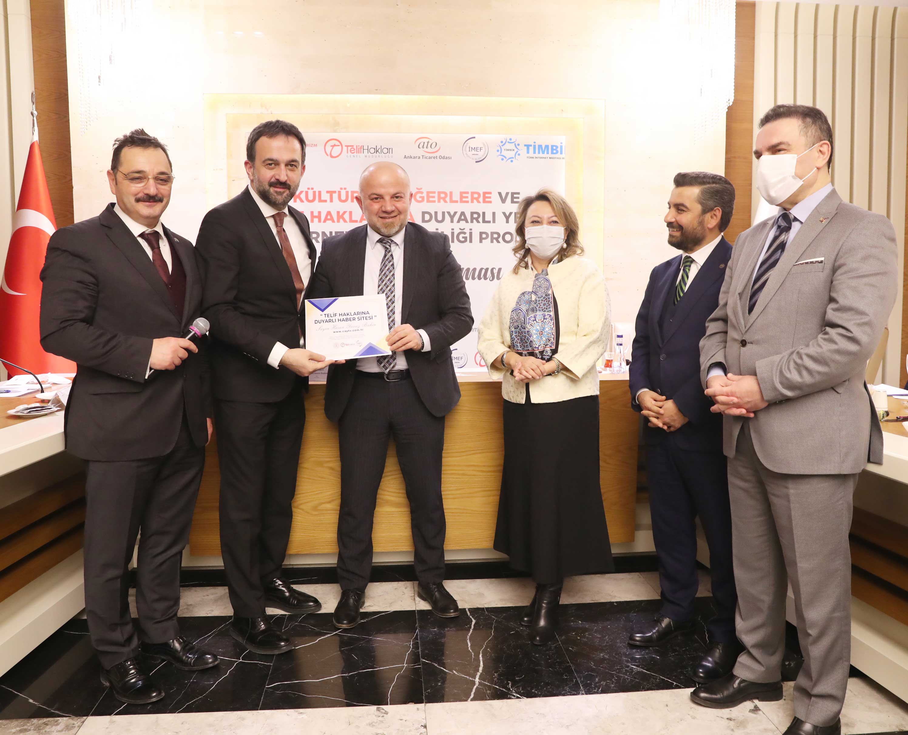 İnternet Medya ve Bilişim Federasyonu (İMEF) tarafından yürütülen, Kültür ve Turizm Bakanlığı Telif Hakları Genel Müdürlüğü tarafından desteklenen proje kapsamında ATO Duatepe Hizmet Binası'nda gerçekleşen buluşmaya ATO Yönetim Kurulu Başkan Yardımcısı Halil İbrahim Yılmaz, Radyo ve Televizyon Üst Kurulu (RTÜK) Başkan Yardımcısı İbrahim Uslu ve İMEF Genel Başkanı Dr. Süleyman Basa katıldı.