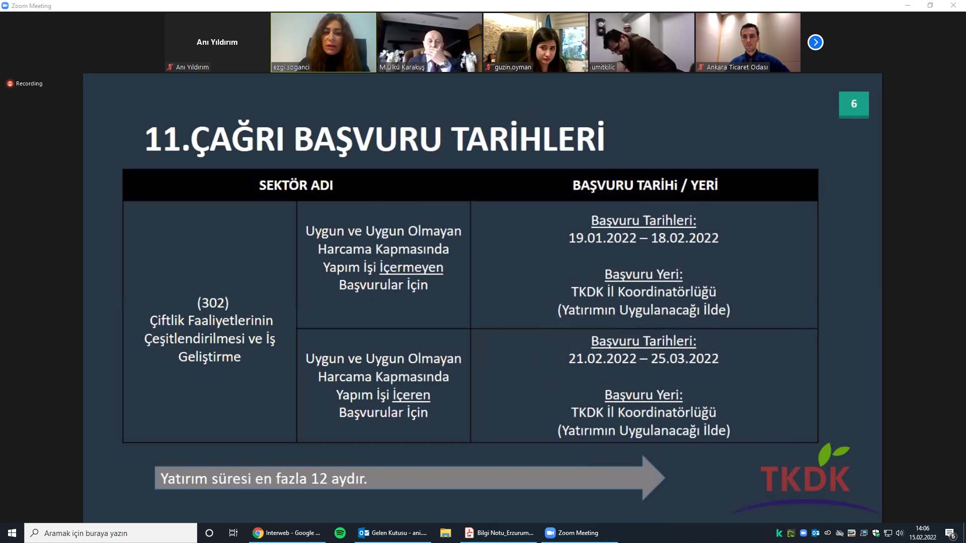 16 ŞUBAT 2022-Tarım ve Kırsal Kalkınmayı Destekleme Kurumu (TKDK), Avrupa Birliği ve Türkiye Cumhuriyeti tarafından eş finansmanla oluşturulan IPARD II Programı'nın 11. Çağrı İlanı Hakkında, Ankara Ticaret Odası (ATO) üyelerine yönelik videokonferans yöntemiyle bir bilgilendirme semineri gerçekleştirdi.