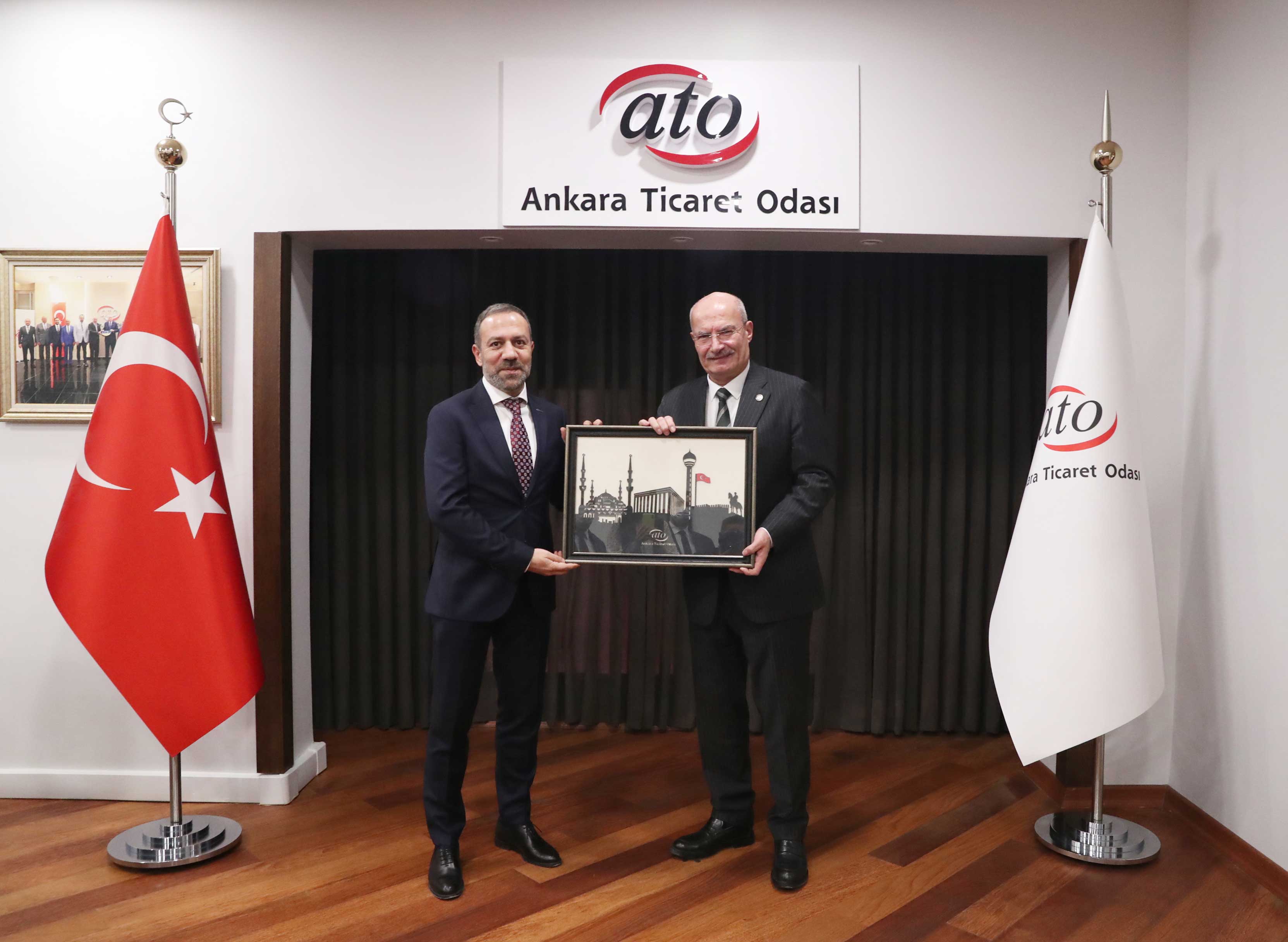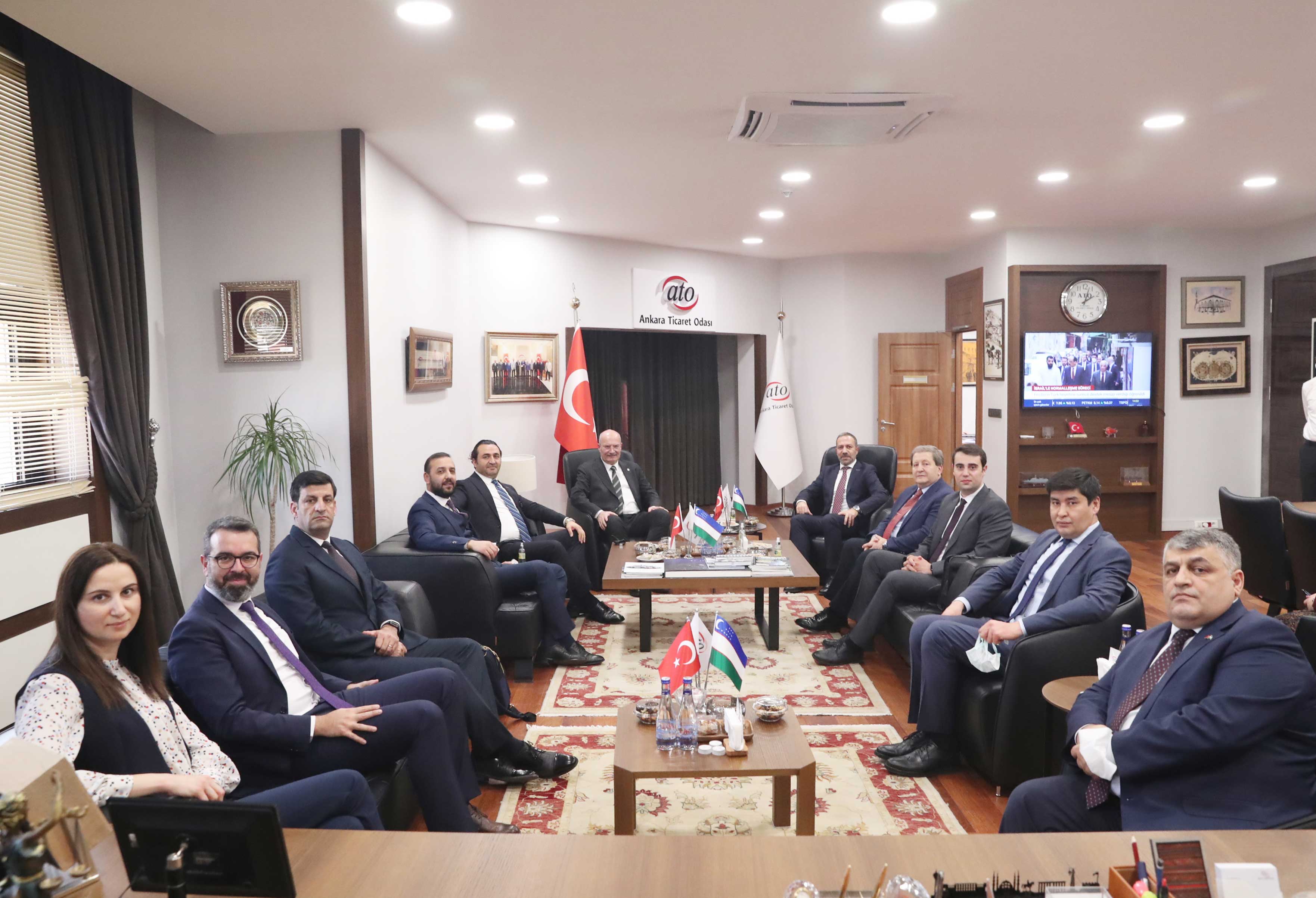 Dış Ekonomik İlişkiler Kurulu (DEİK) Türkiye-Özbekistan İş Konseyi Başkanı Özgür Onur Özgüven, Yürütme Kurulu Heyeti ile birlikte ATO Başkanı Gürsel Baran'ı makamında ziyaret etti. DEİK Türkiye-Özbekistan İş Konseyi'nin yürüttüğü çalışmaları anlatan İş Konseyi Başkanı Özgüven, Türk iş insanlarının Özbekistan'da gerçekleştirdiği yatırımlar hakkında bilgi verdi.