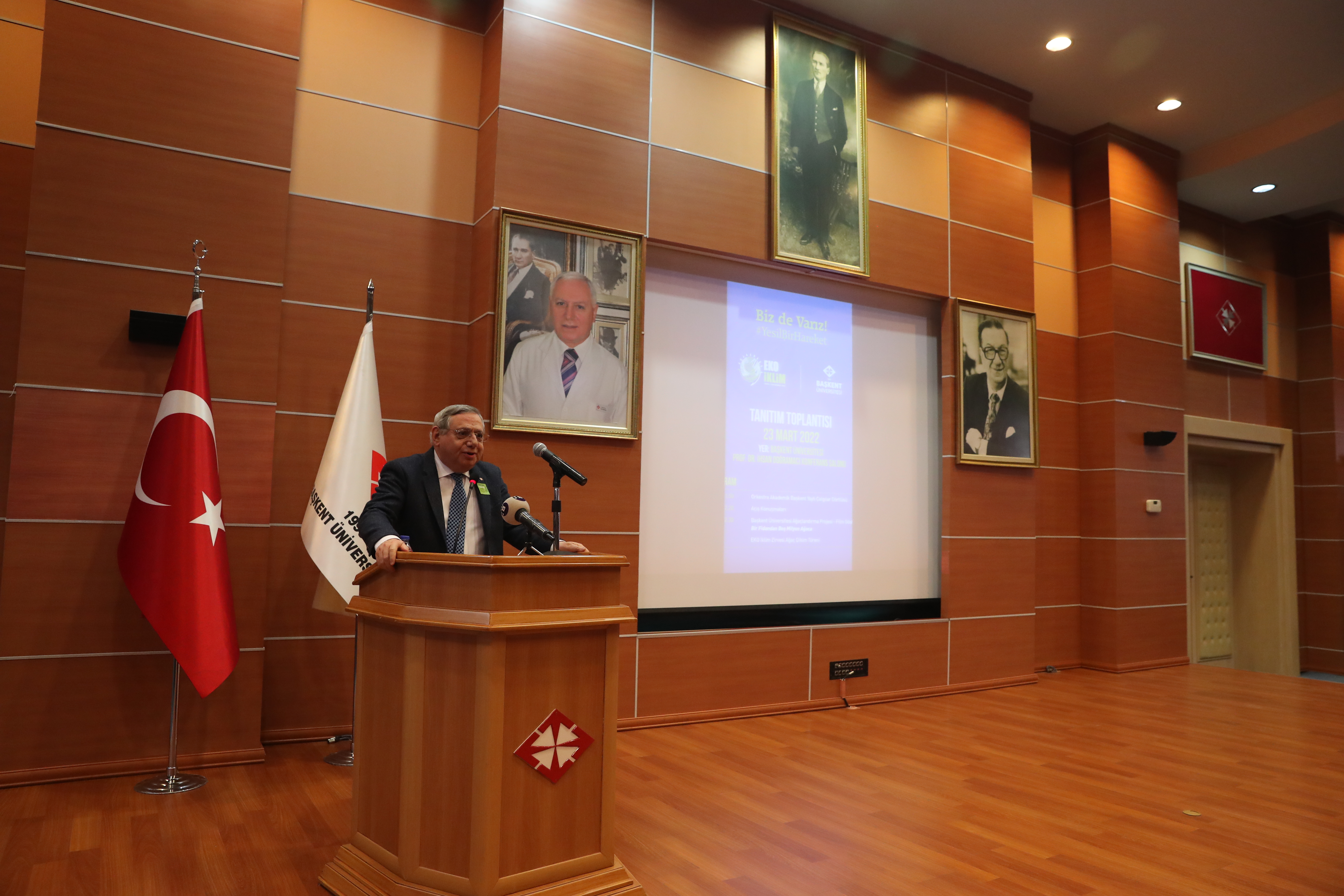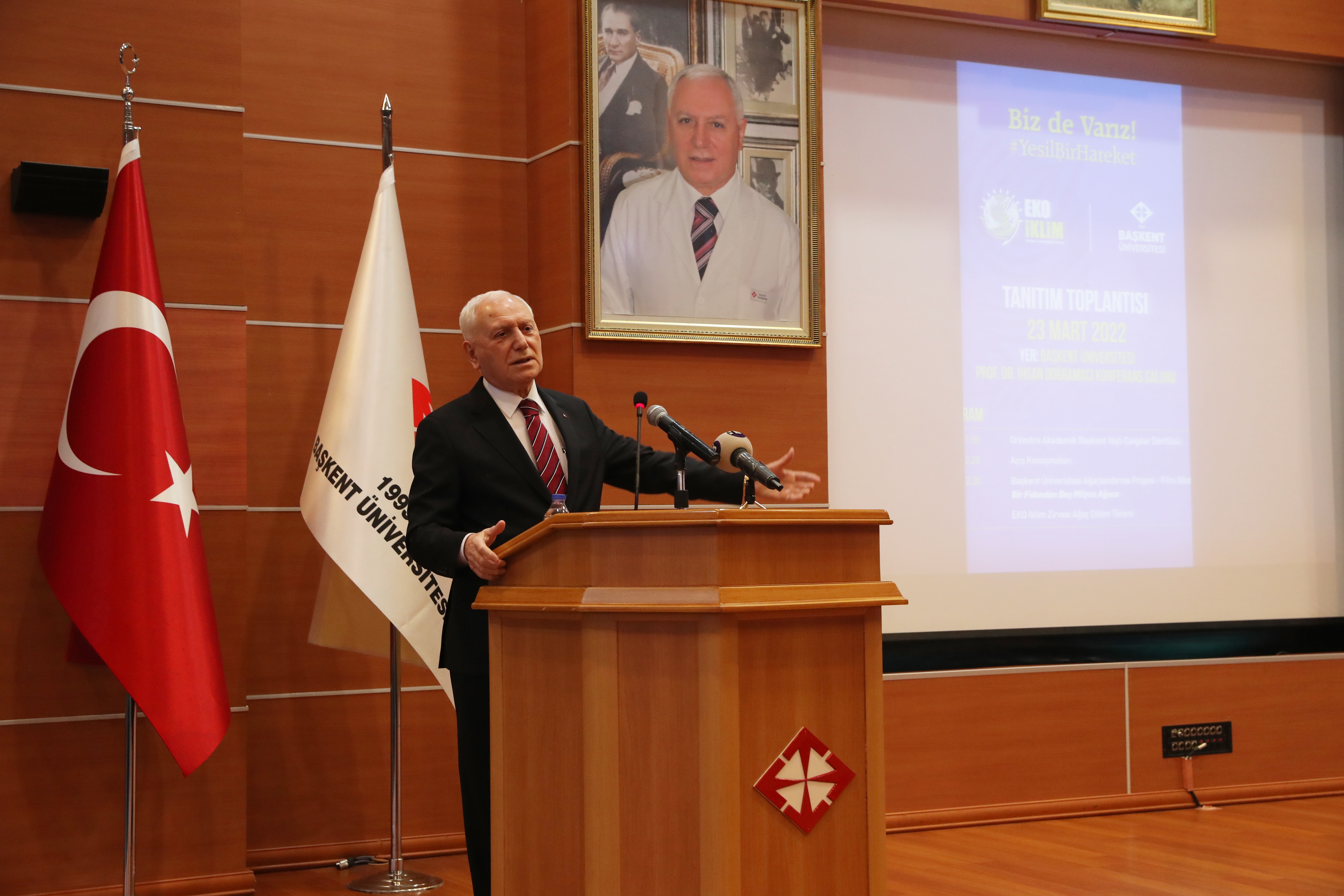 24 MART 2022-İklim değişikliği ve yeşil dönüşüm konularında küresel düzenlemelere en doğru şekilde ve hızla hazırlanmak, iklim değişikliği ile mücadele ve ekonomiye etkisini en aza indirmek amacıyla 30-31 Mart tarihlerinde gerçekleştirilecek "EKO İKLİM Ekonomi ve İklim Değişikliği Zirvesi/Fuarı"nın tanıtım toplantısı Başkent Üniversitesi'nde yapıldı.