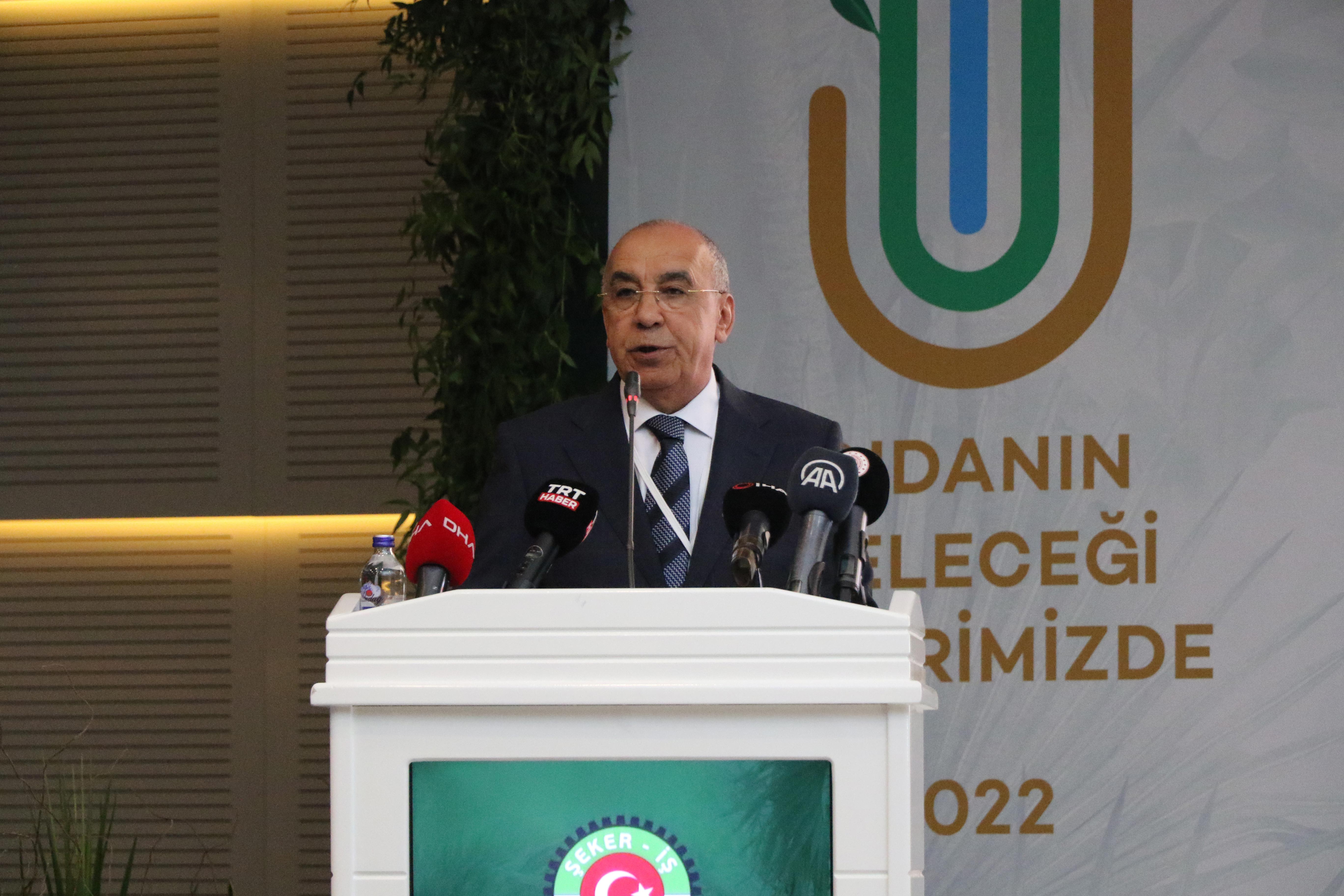 ATO Başkan Yardımcısı Yılmaz, iklim değişikliği çerçevesinde gıdada yeniden dönüşümün masaya yatırıldığı, Türkiye Gıda ve Şeker Sanayi İşçileri (ŞEKER-İŞ) Sendikası tarafından düzenlenen "Gıdanın Geleceği Ellerimizde Zirvesi"nin açılışına katıldı. Ankara'da bir otelde düzenlenen Zirve'nin açılışında konuşan Yılmaz, Türkiye'de her üç kişiden birinin gıda ve gıda ile bağlantılı sektörlerde çalıştığını belirterek, bu yüksek oranın avantajlarından yararlanarak gıda konusunda bilinçlenmeye sektörlerden başlanabileceğini kaydetti. Yeşil dönüşümün devamlılığını sağlamak için gelecek yüzyılın sorunlarına çözüm üretilmesi gerektiğinin altını çizen Yılmaz, "Biz iş dünyası olarak ekonomik faaliyetleri de yakından etkileyecek iklim değişikliği ve yeşil dönüşüm konularının farkındayız. Doğal kaynak maliyetini bilançoda göstermeden rekabet etmeyi bırakıp, dünyayı düşünerek üretim yapmamız gerektiğini tartışmaya başladık. Bir deri ayakkabı için 22 ton, bir tişört için 1.7 ton, bir fincan kahve için 200 litre su kullandığımız gerçeğini konuşmadığımız müddetçe kar etmiş olmuyor, toprağımızdan, suyumuzdan, havamızdan yani dünyamızdan vazgeçmiş oluyoruz." dedi.
