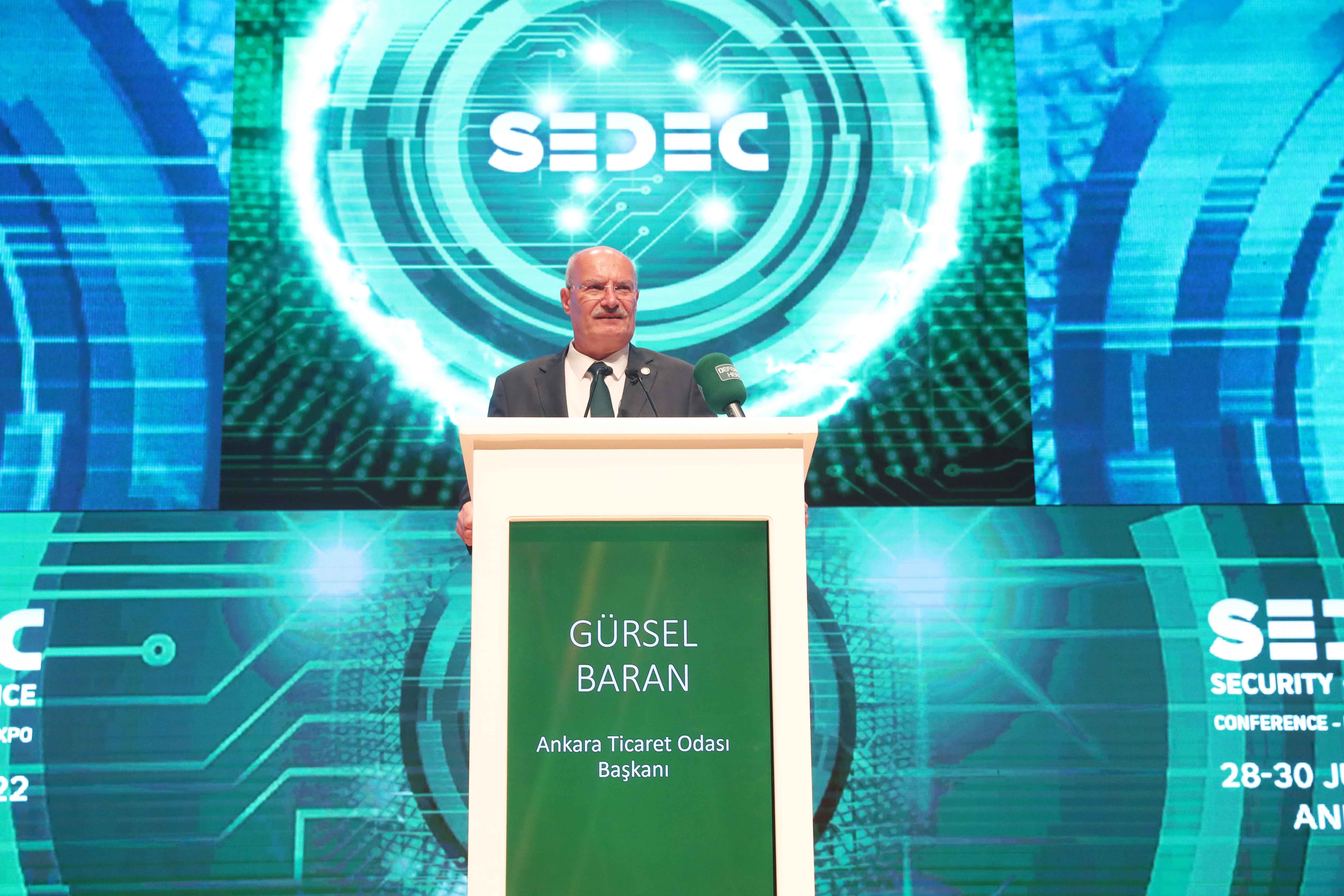 ATO Başkanı Baran, Cumhurbaşkanlığı Savunma Sanayii Başkanlığı ile Savunma ve Havacılık Sanayi İhracatçıları Birliği destekleriyle anayurt güvenliği ve savunma tedarik zinciri sektörlerinde faaliyet gösteren sanayiciler için ihracat köprüsü oluşturmak amacıyla uluslararası ve ulusal 50'yi aşkın ülkeden heyetin katılımıyla ATO ev sahipliğinde üçüncüsü düzenlenen SEDEC 2022'nin ATO Congresium Kongre ve Sergi Merkezi'nde gerçekleşen açılış programına katıldı. Türkiye Cumhuriyeti Cumhurbaşkanı Recep Tayyip Erdoğan'ın yazılı bir mesaj gönderdiği programın açılış konuşmaları, Cumhurbaşkanlığı Savunma Sanayii Başkanı Prof. Dr. İsmail Demir, ATO Başkanı Gürsel Baran, Savunma ve Havacılık Sanayii İmalatçılar Derneği (SASAD) Yönetim Kurulu Başkanı Osman Okyay, Teknopark Ankara Yönetim Kurulu Başkanı Hasan Gültekin ve SEDEC Koordinatörü Hilal Ünal tarafından yapıldı.