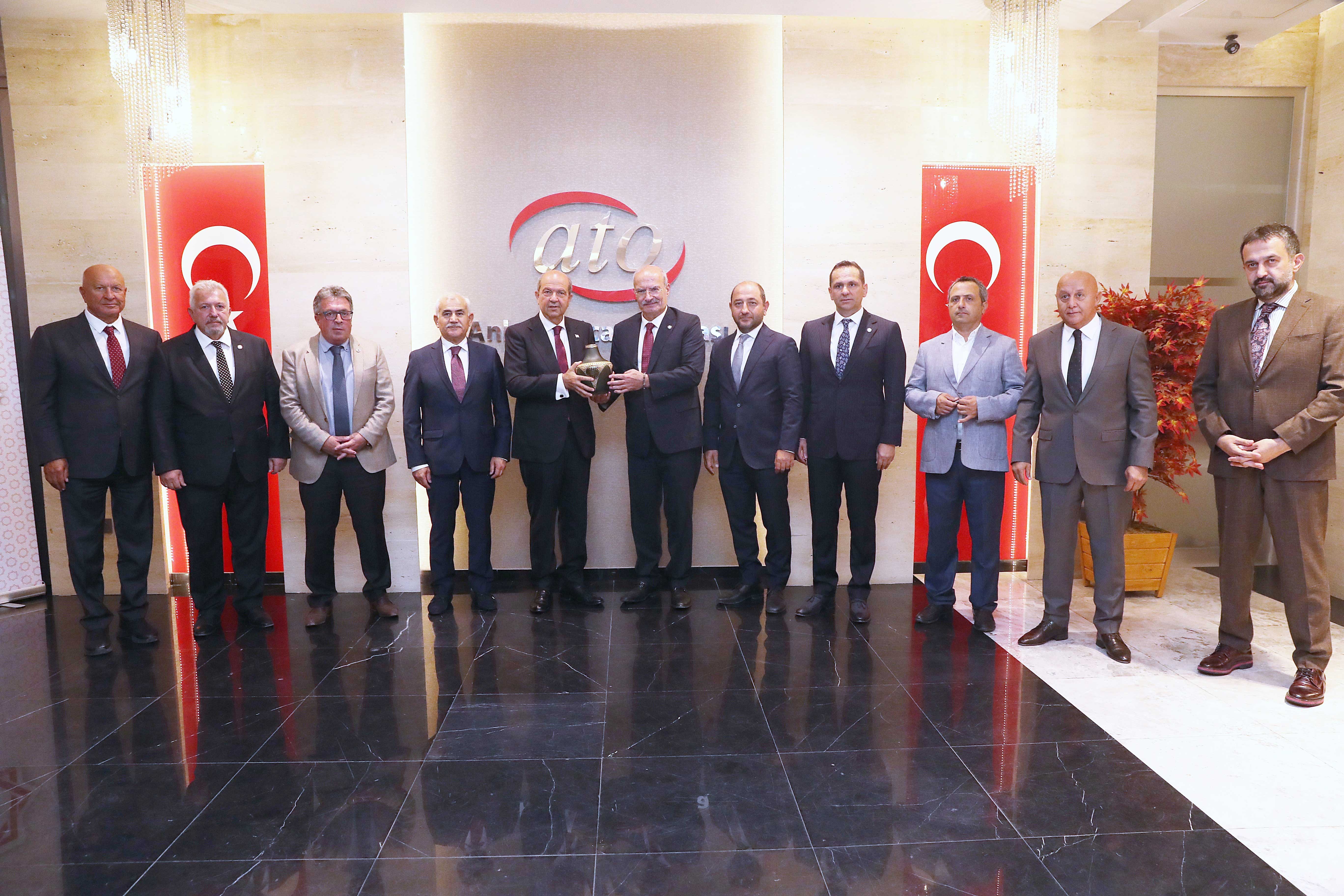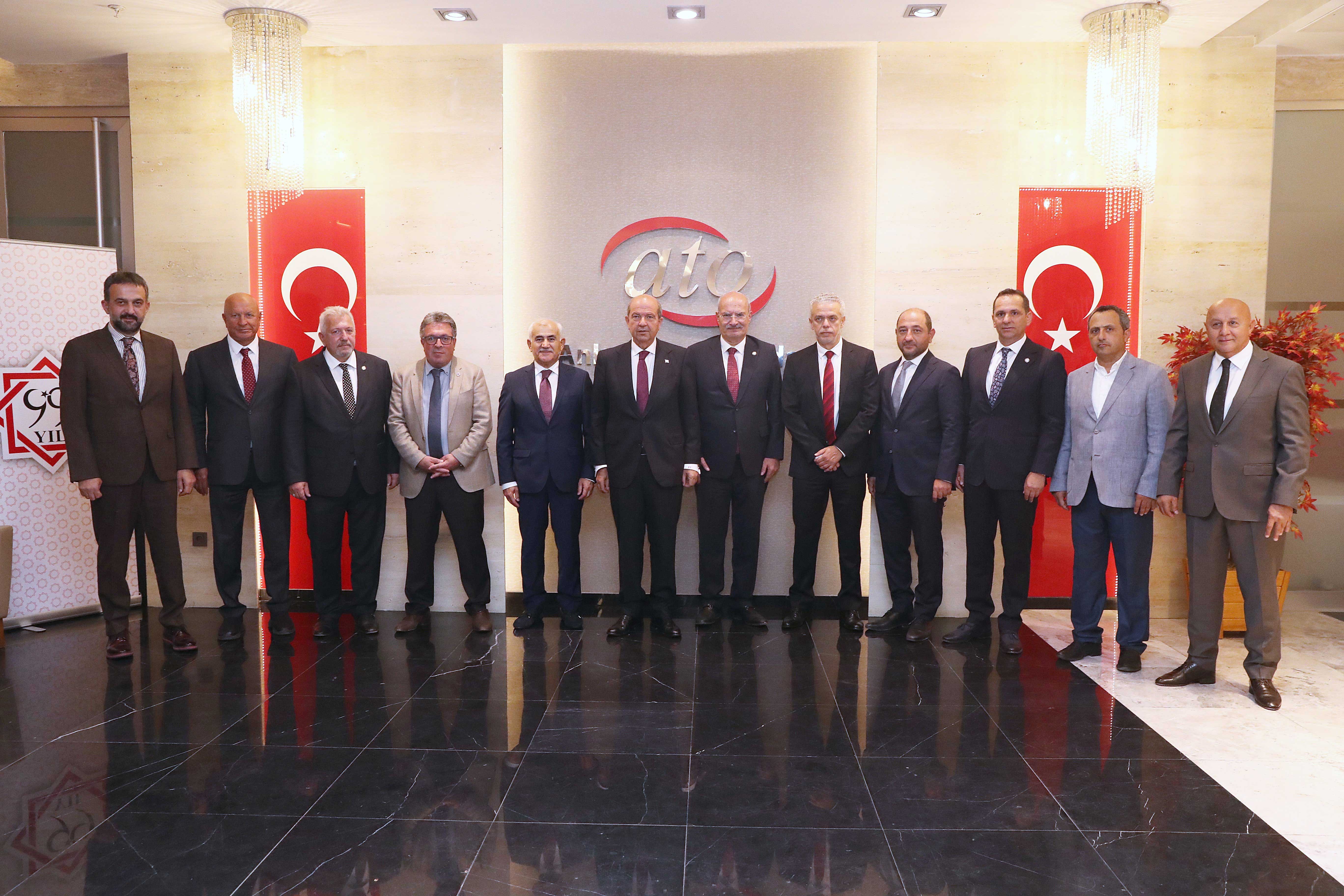 ATO Duatepe Salonu'nda, ATO Yönetim Kurulu Başkanı Gürsel Baran ve ATO Meclis Başkanı Mustafa Deryal ev sahipliğinde gerçekleşen ziyaret programında, Dışişleri Bakan Yardımcısı Yavuz Selim Kıran, KKTC Ankara Büyükelçisi İsmet Korukoğlu, KKTC Cumhurbaşkanlığı Yaveri Binbaşı Hamit Soybir, KKTC Ankara Büyükelçiliği Maslahatgüzarı Fatma Arşehit Soykan ile Ankara Sanayi Odası (ASO) Başkanı Nurettin Özdebir de yer aldı.