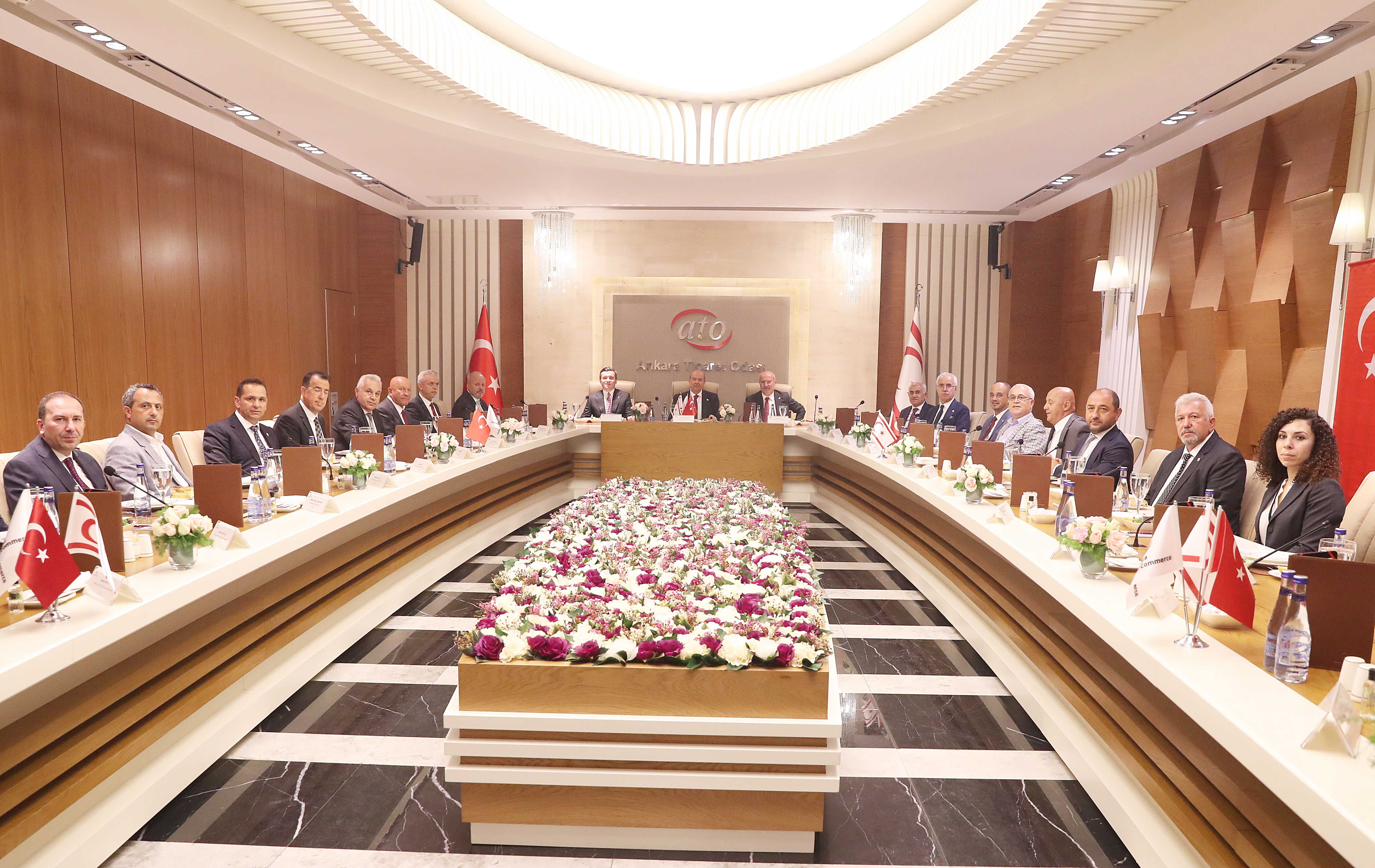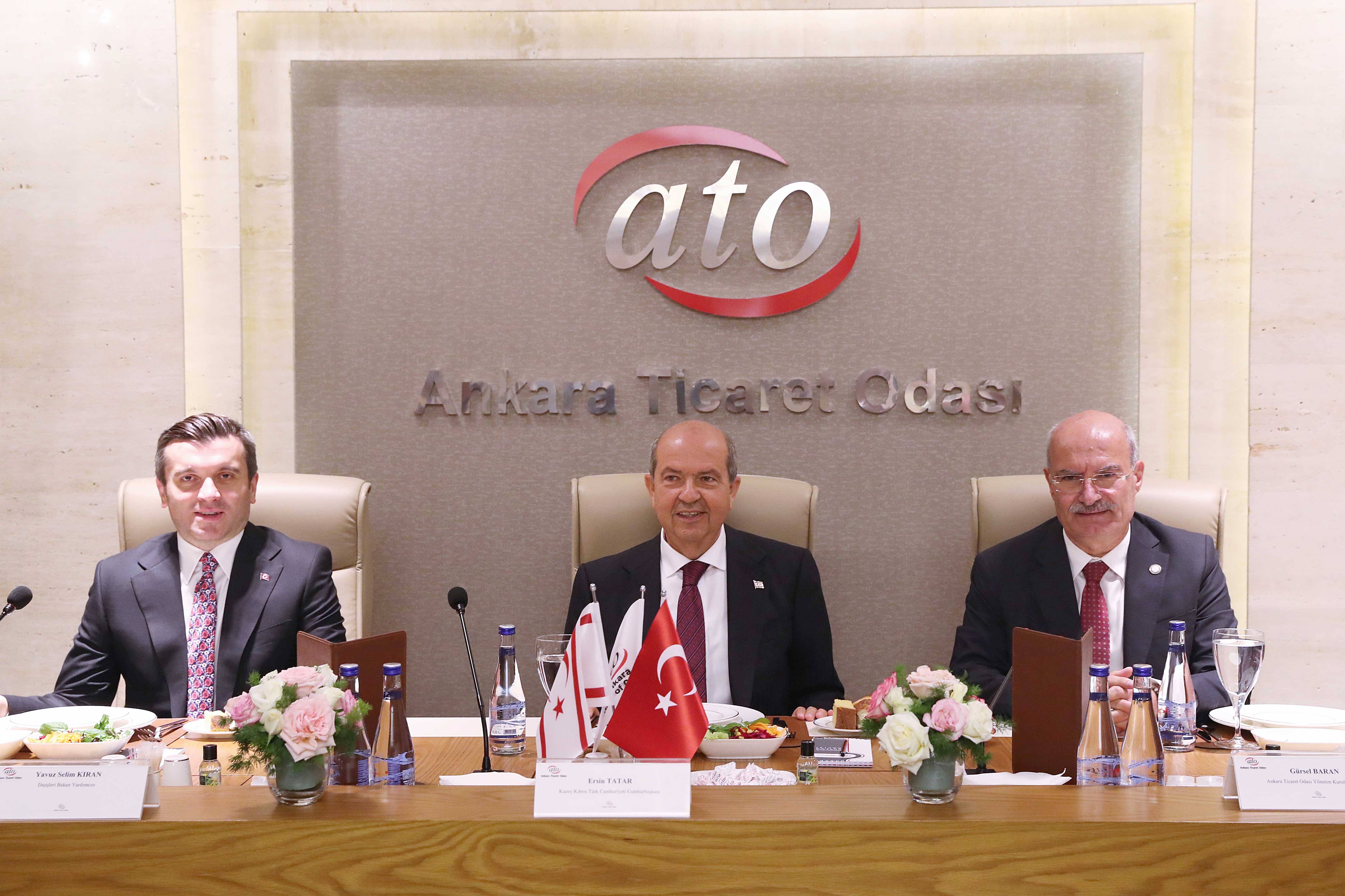 ATO Yönetim Kurulu Başkanı Gürsel Baran ise yaptığı konuşmada, Ankara Ticaret Odası'nın KKTC ile ticari ilişkileri ve işbirliğini geliştirmek üzere yoğun çalışma ve diyalog yürüttüğü bilgisini verdi. Baran, KKTC Cumhurbaşkanı Ersin Tatar'ın geçen yıl Ekim ayında ATO Meclis Toplantısı'na katıldığını hatırlatarak, karşılıklı ziyaretlerin ilişkilerin gelişmesine zemin hazırladığını kaydetti.
