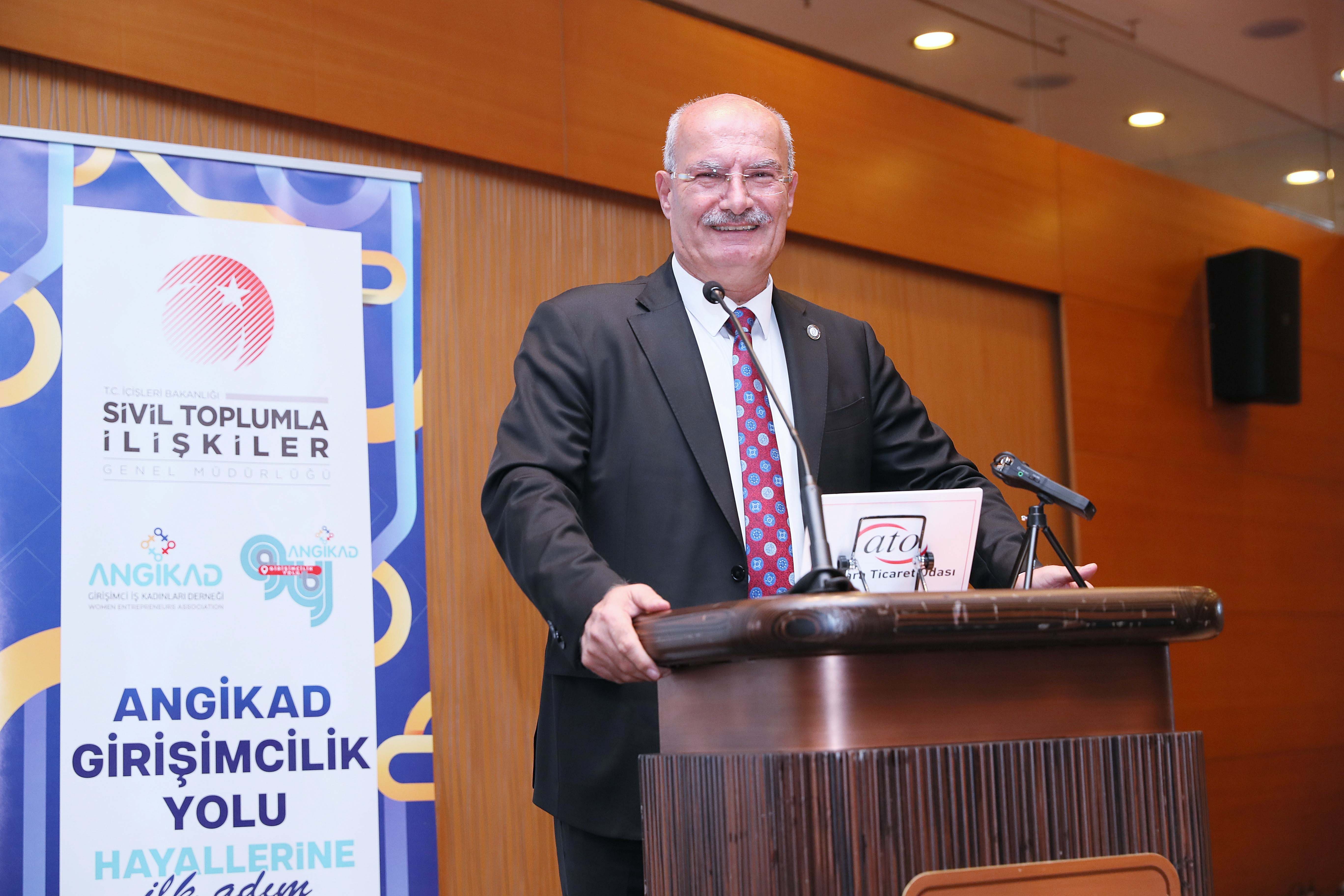 ATO Başkanı Gürsel Baran, burada yaptığı konuşmada, Türkiye'de kadınların istihdam oranının yüzde 30'lar düzeyinde olduğunu belirterek, söz konusu kadın girişimciliği olduğunda bu oranın yüzde 10'lar seviyesine kadar gerilediğini söyledi. İş dünyasında girişimci kadın sayısını artırmaya yönelik projeler hayata geçirmenin önemli olduğunu kaydeden Baran, "ANGİKAD Girişimcilik Yolu Projesi'nin kadın girişimciliğine olumlu katkı sağlayacağına inandığını vurguladı. Proje kapsamında öğrenci, mezun, akademisyen ve iş dünyası paydaşlarına verilen eğitimlerin, kadın girişimcilerin görünürlüğünü artıracağını kaydeden Baran, projeyle girişimci adayların finansal tablolar, bütçe, mali işler, raporlama ve pazarlama alanlarındaki kapasitelerinin de gelişeceğini söyledi.