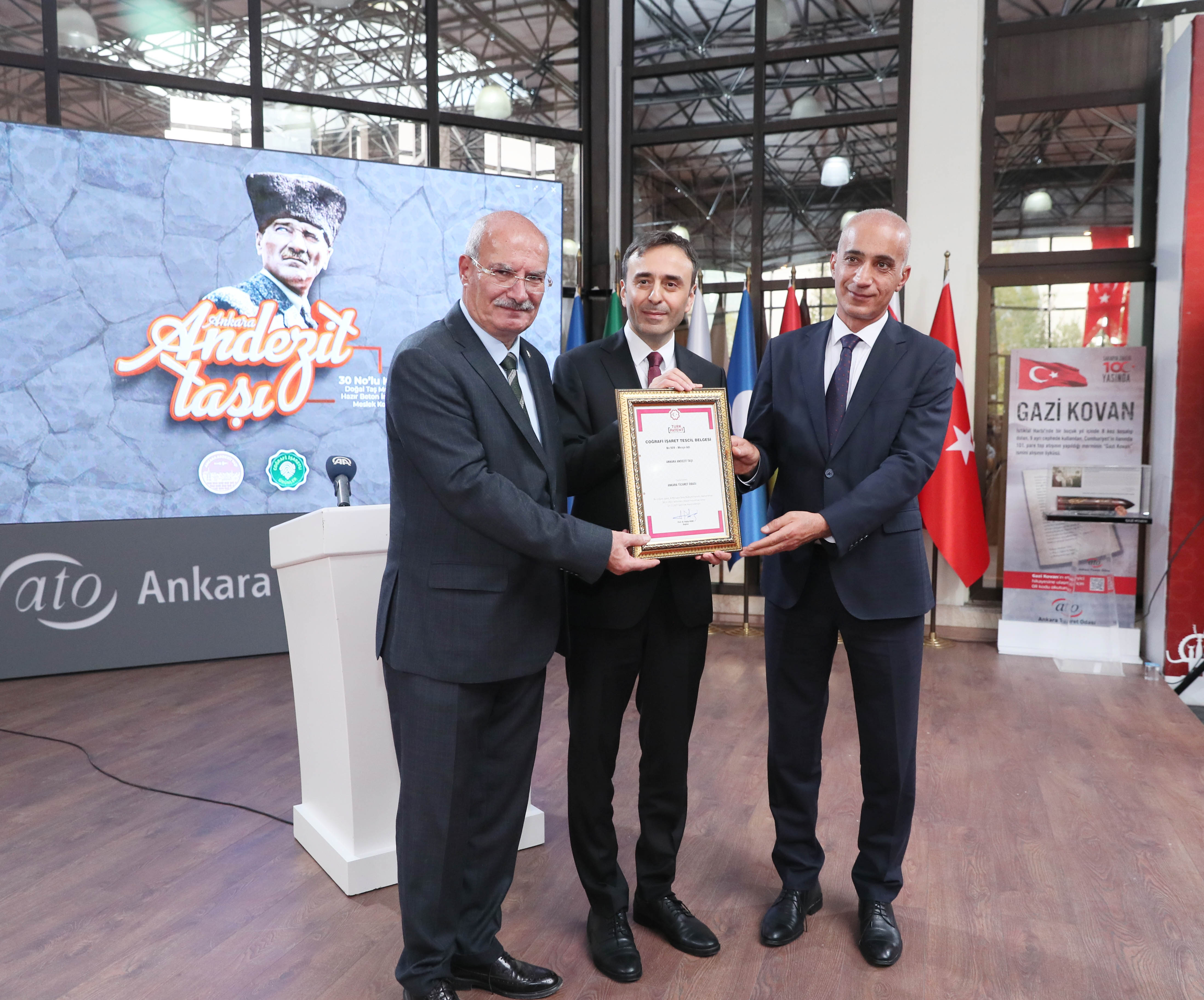Açılış konuşmalarının ardından Ankara Andezit Taşı'nın tescil sürecine katkı sağlayan Ankara Üniversitesi Gıda Güvenliği Fakültesi Müdürü Prof. Dr. Nevzat Arık, Jeoloji Bölümü Başkanı Prof. Dr. Yusuf Kağan Kadıoğlu, Gıda Güvenliği Fakültesi Müdür Yardımcısı Prof. Dr. Tansel Şileli, Enerji Bakanlığı E. Müsteşar Yardımcısı Nevzat Kavaklı'ya teşekkür plaketleri ATO Başkanı Gürsel Baran, Türk Patent ve Marka Kurumu Başkanı Cemil Başpınar, 30 No'lu Doğal Taş, Mermer ve Hazır Beton İmalatçıları Meslek Komitesi Başkanı Ali İhsan Güçlü tarafından takdim edildi.