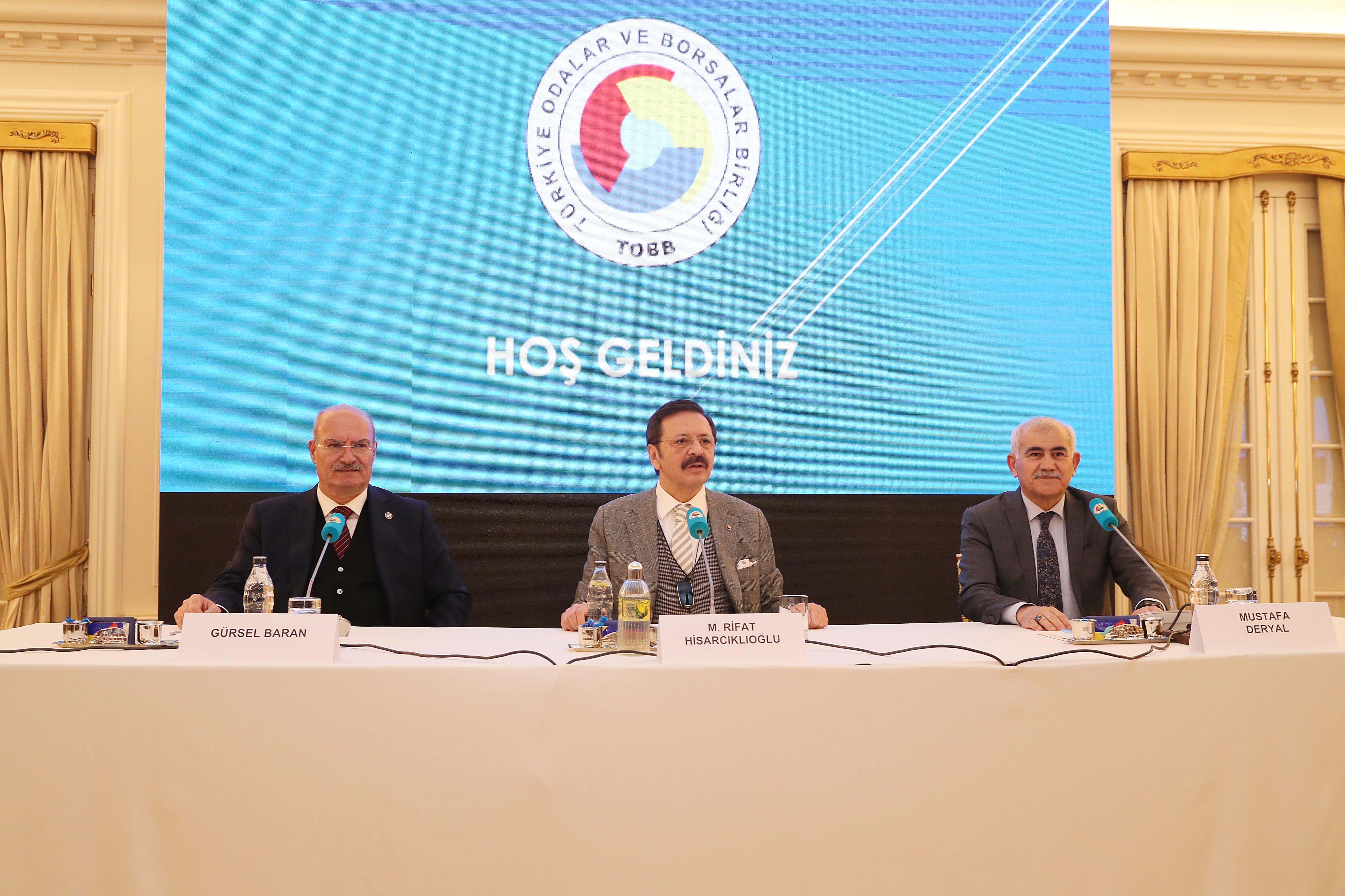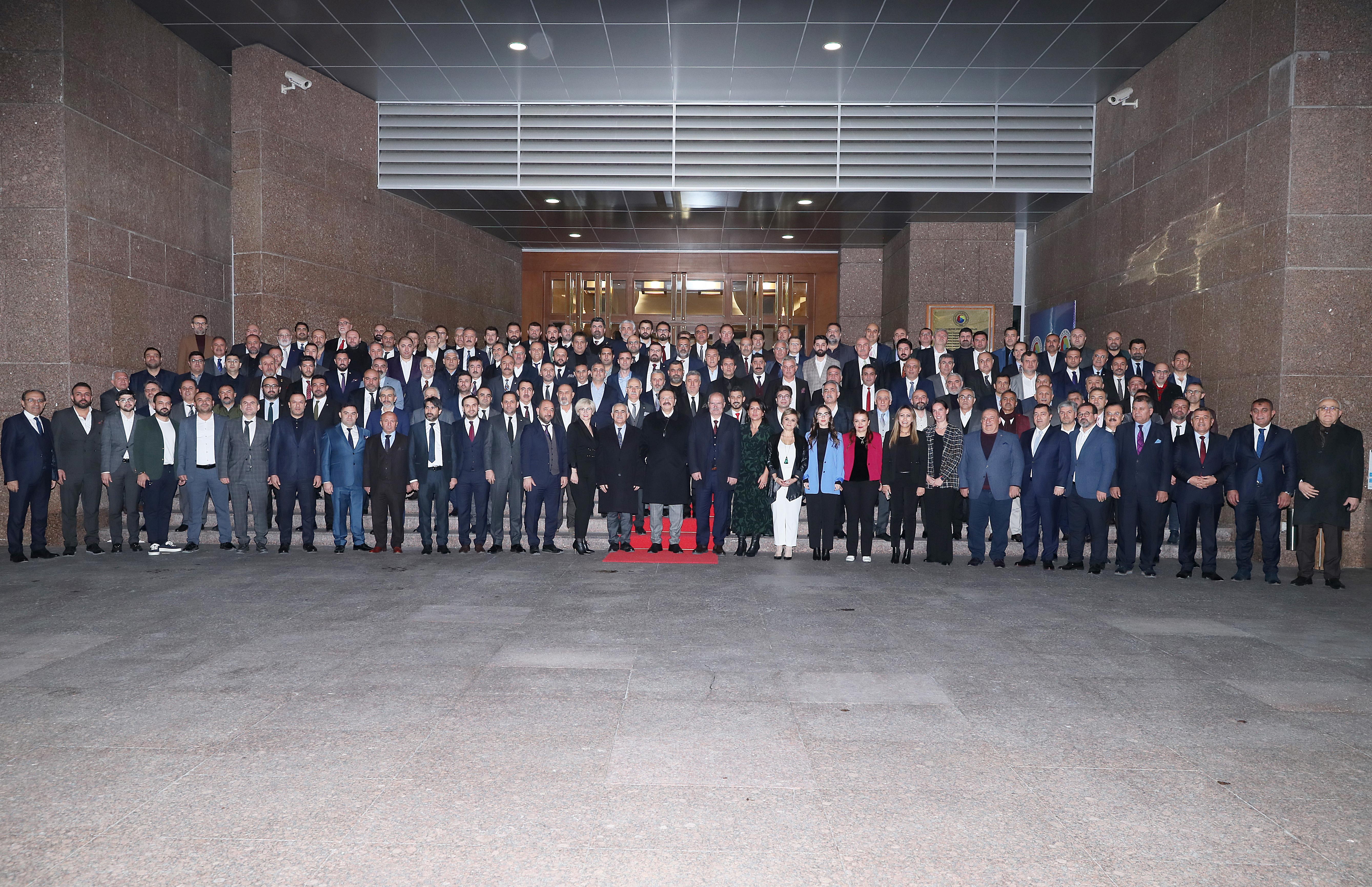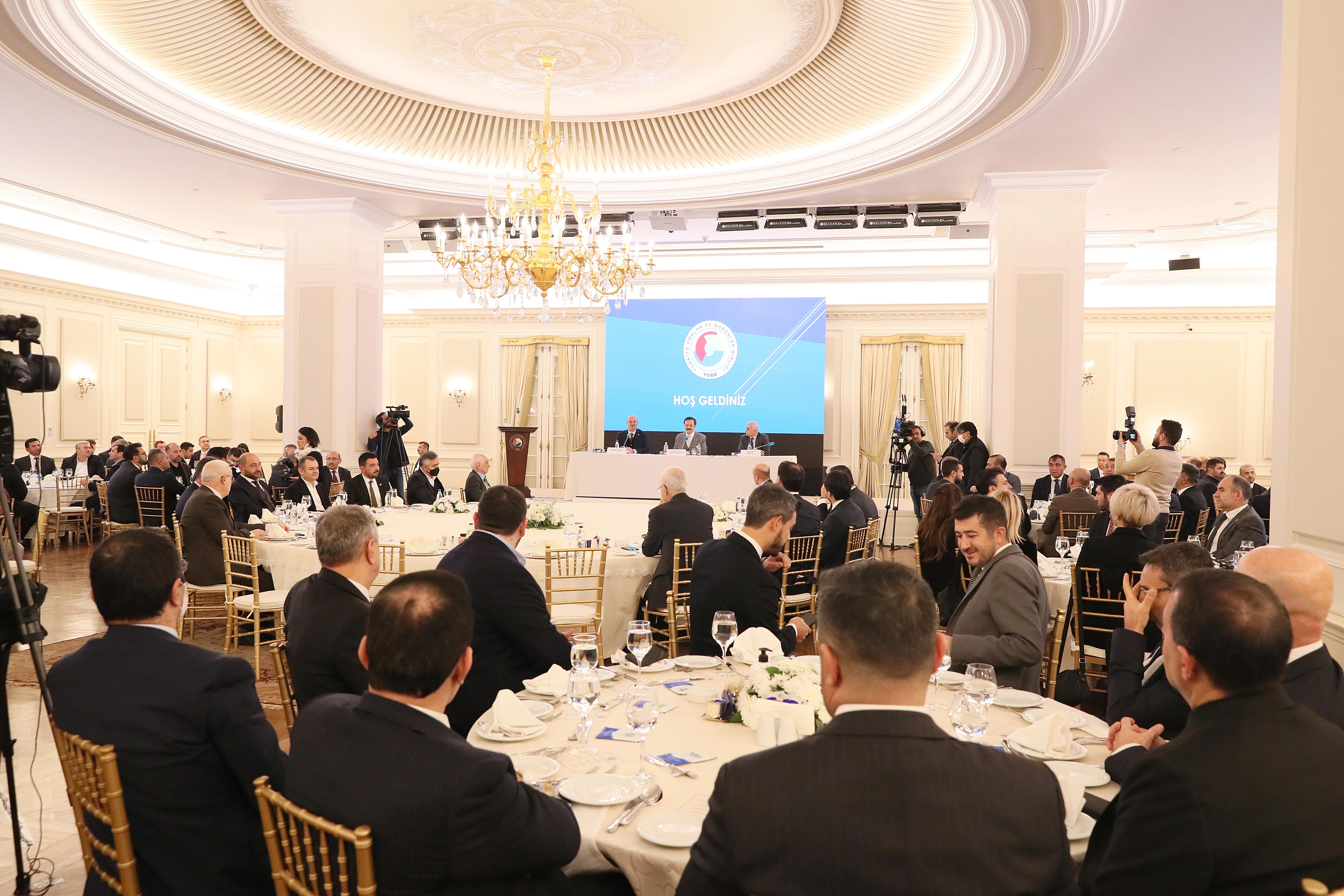 20 ARALIK 2022- Ankara Ticaret Odası (ATO) Yönetim Kurulu Başkanı Gürsel Baran, Meclis Başkanı Mustafa Deryal, ATO Yönetim Kurulu ve 29. Dönem Meclis üyeleri ile birlikte Türkiye Odalar ve Borsalar Birliği (TOBB) Başkanı M. Rifat Hisarcıklıoğlu'nun ev sahipliğinde TOBB İkiz Kuleler'de bir araya geldi.
