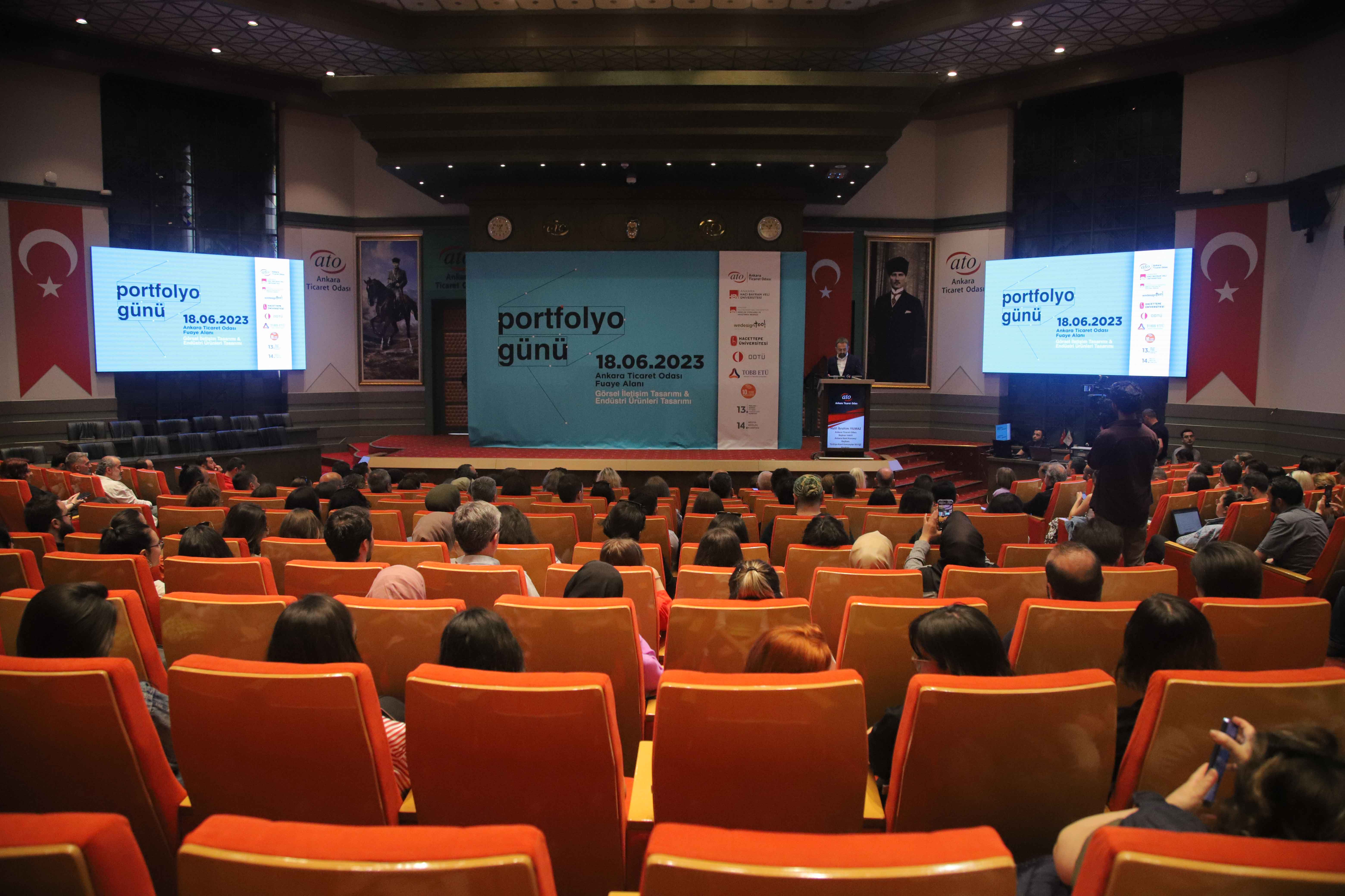 ANKARA TİCARET ODASI'NIN, BAŞKENT'TEKİ ÜNİVERSİTELERİN REKLAM VE TASARIM ALANLARINDA EĞİTİM GÖREN 300'E YAKIN PORTFOLYOLU ÖĞRENCİ İLE 100'E YAKIN SEKTÖR TEMSİLCİSİNİ BULUŞTURDUĞU "PORTFOLYO GÜNLERİ" ATO MECLİS SALONU'NDA YAPILDI.