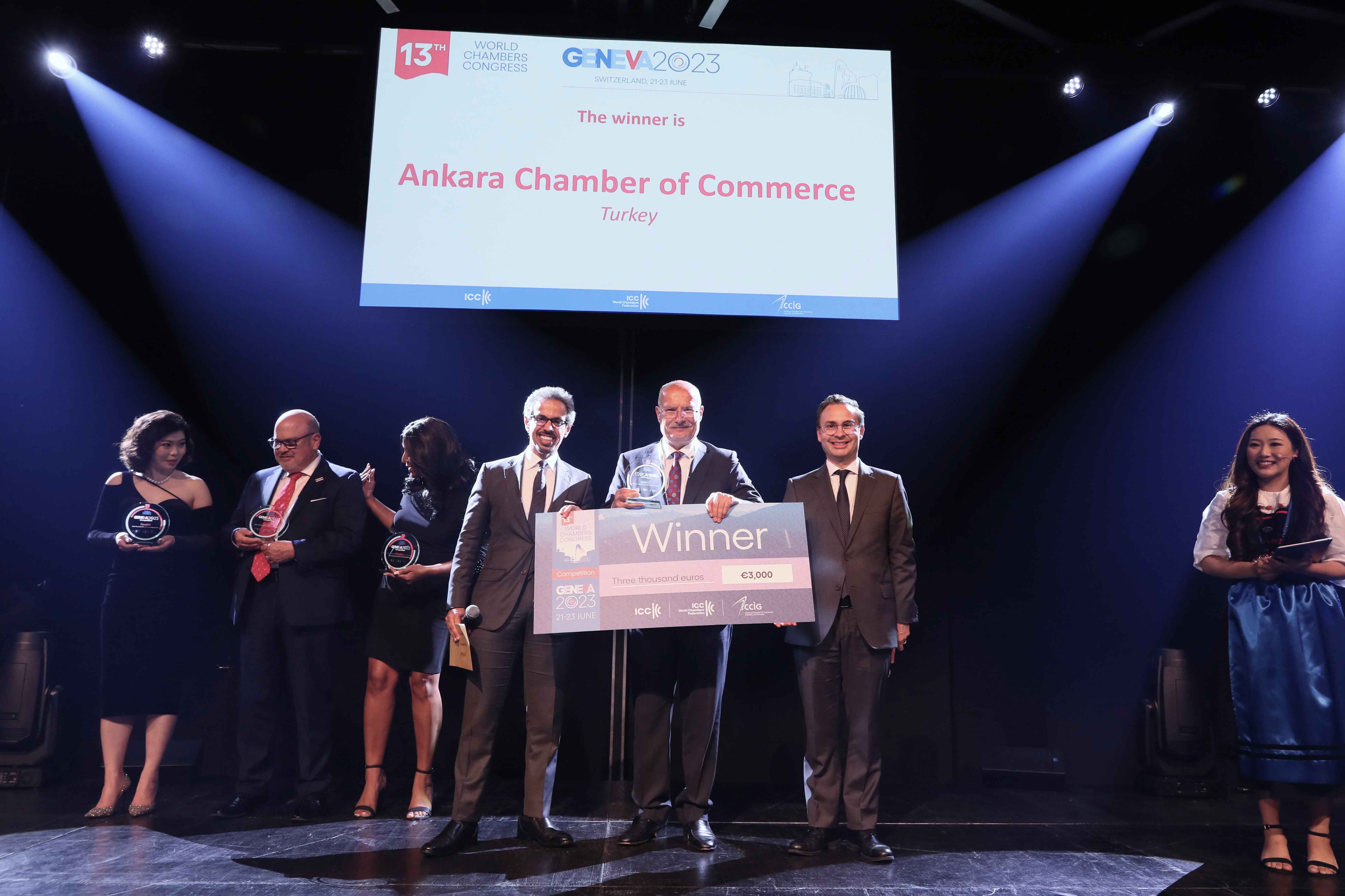 ATO, ATONET Üye Hizmet Platformu Projesi'ni ATO adına Gökhan Ertek'in sunduğu finalde, Amerika Birleşik Devletleri'nden (ABD) Tampa Bay Ticaret Odası'nın "Tampa Bay Ticaret Odası Azınlık İşini Hızlandırma Programı" ve Illinois Hispanik Ticaret Odası'nın "Sözleşme Radarı - Tüm İşletmeler İçin Yapay Zekâ" projeleri ile Çin Ticaret Odası'nın "RCEP ve diğer STA'ların Kullanım Oranını Teşvik Etmek" projeleriyle yarışarak birinciliği elde etti. Sonuçlar, 23 Haziran akşamı gerçekleştirilen Kongre Galasında açıklandı. Birincilik ödülünü ATO Başkanı Gürsel Baran teslim aldı.