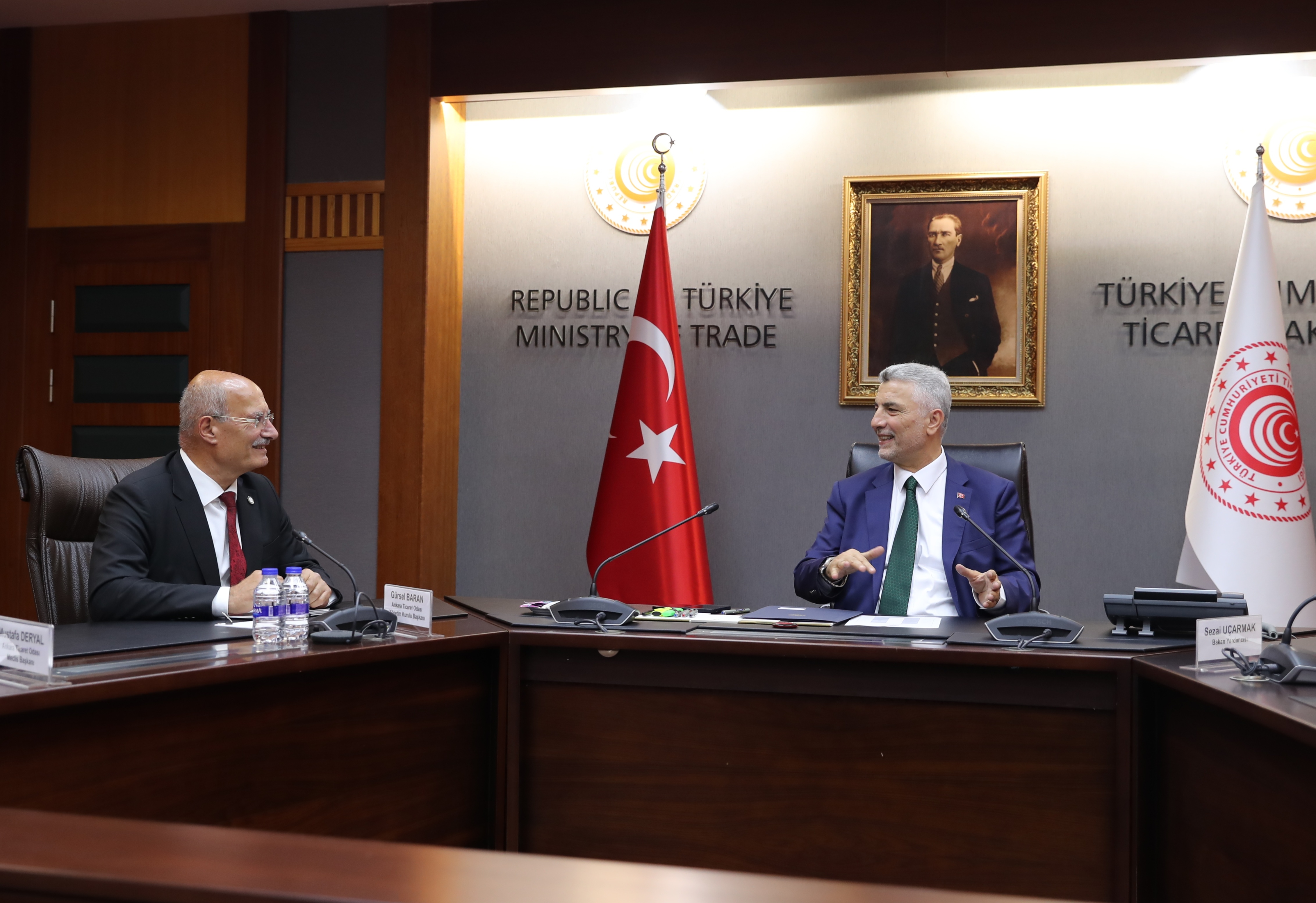 4 Temmuz 2023- Ankara Ticaret Odası (ATO) Yönetim Kurulu Başkanı Gürsel Baran, ATO Meclis Başkanı Mustafa Deryal ve beraberindeki heyet ile birlikte Ticaret Bakanı Ömer Bolat'a hayırlı olsun ziyareti gerçekleştirdi.