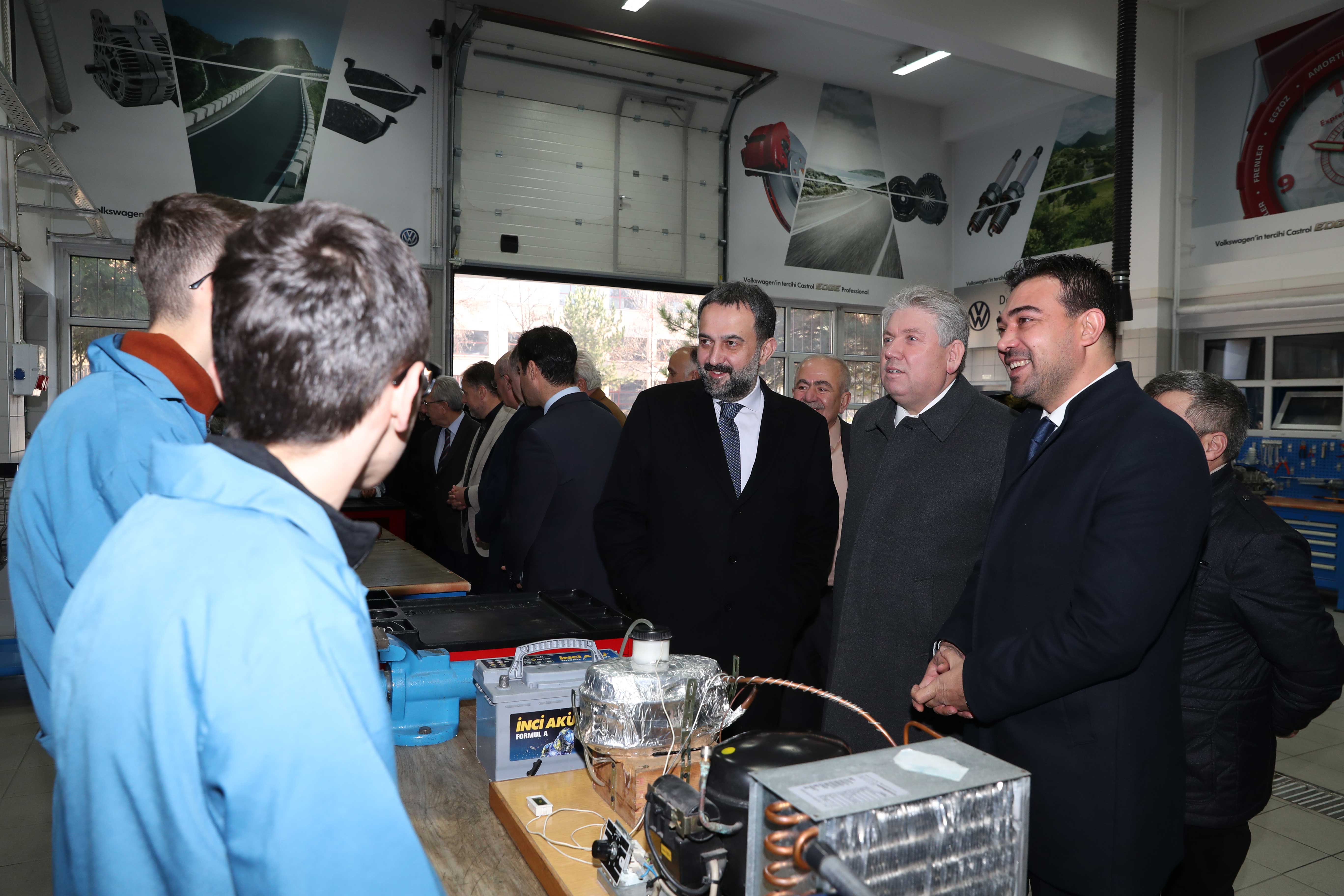 ATO BAŞKANI BARAN, MİLLİ EĞİTİM BAKAN YARDIMCISI ŞAMLIOĞLU İLE BİRLİKTE ATO'NUN HAMİSİ OLDUĞU GAZİ MESLEKİ VE TEKNİK ANADOLU LİSESİ'Nİ ZİYARET ETTİ.