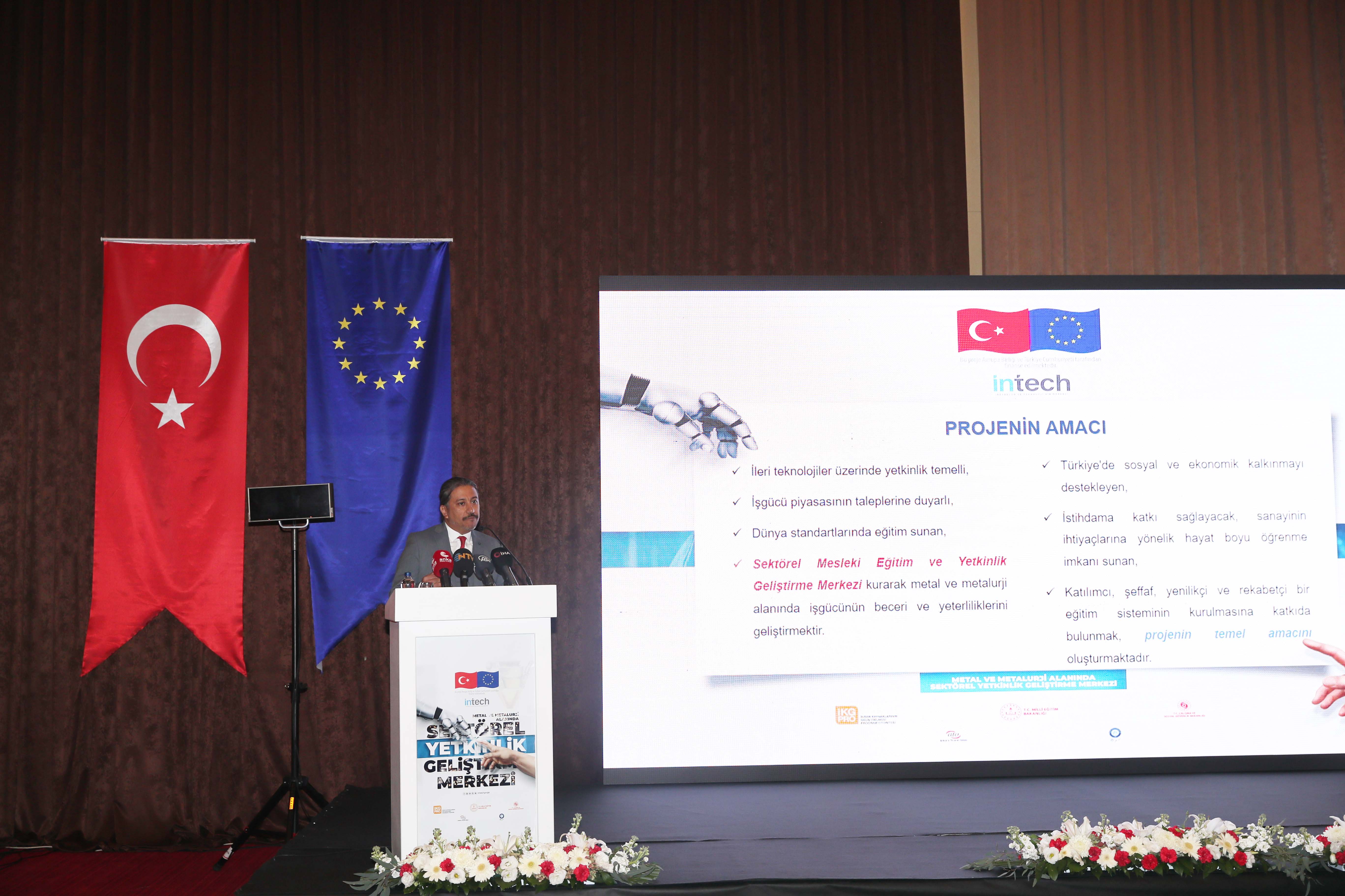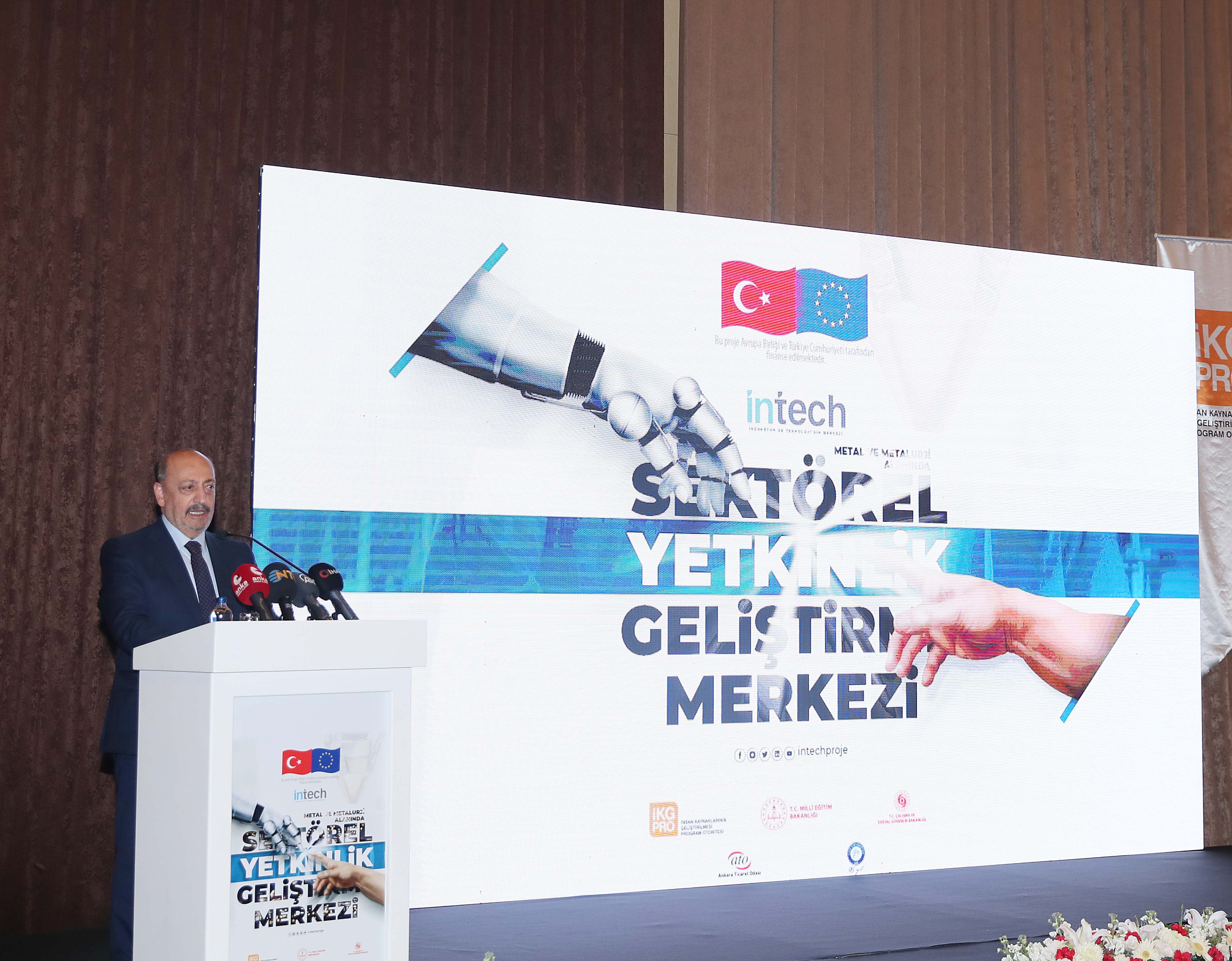 Ankara Ticaret Odası'nın (ATO) Gazi Üniversitesi işbirliğinde, Çalışma ve Sosyal Güvenlik Bakanlığı Avrupa Birliği ve Mali Yardımlar Dairesi Başkanlığı'nın "Sektörel Mükemmeliyet Merkezlerinin Kurulması Yoluyla Mesleki ve Teknik Eğitimin Artırılması Hibe Programı" kapsamında, Milli Eğitim Bakanlığı'nın teknik ve AB Türkiye Delegasyonu'nun finansal desteğiyle hayata geçirdiği ve kısa adı Intech olan, "Metal ve Metalurji Sektöründe Yenilikçi Teknik ve Mesleki Yeterlilik Geliştirme Merkezi Projesi"nin kapanış toplantısı yapıldı.