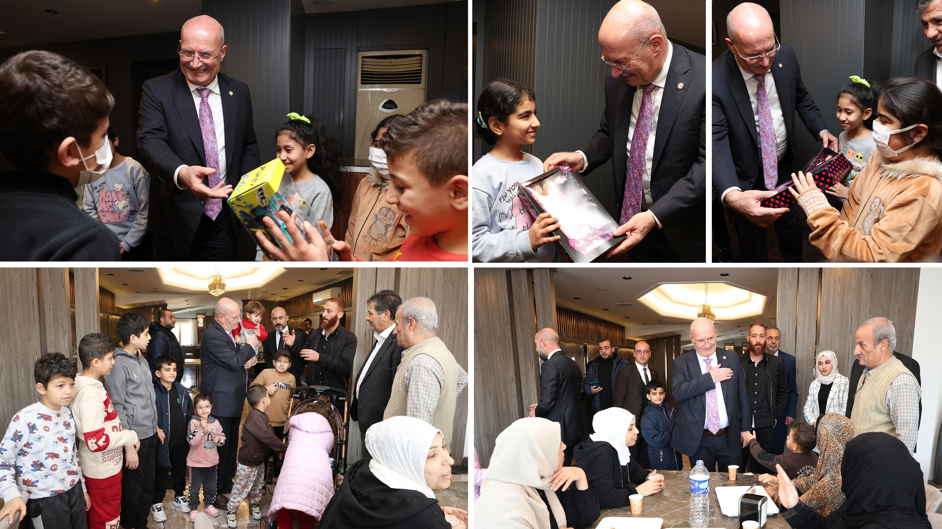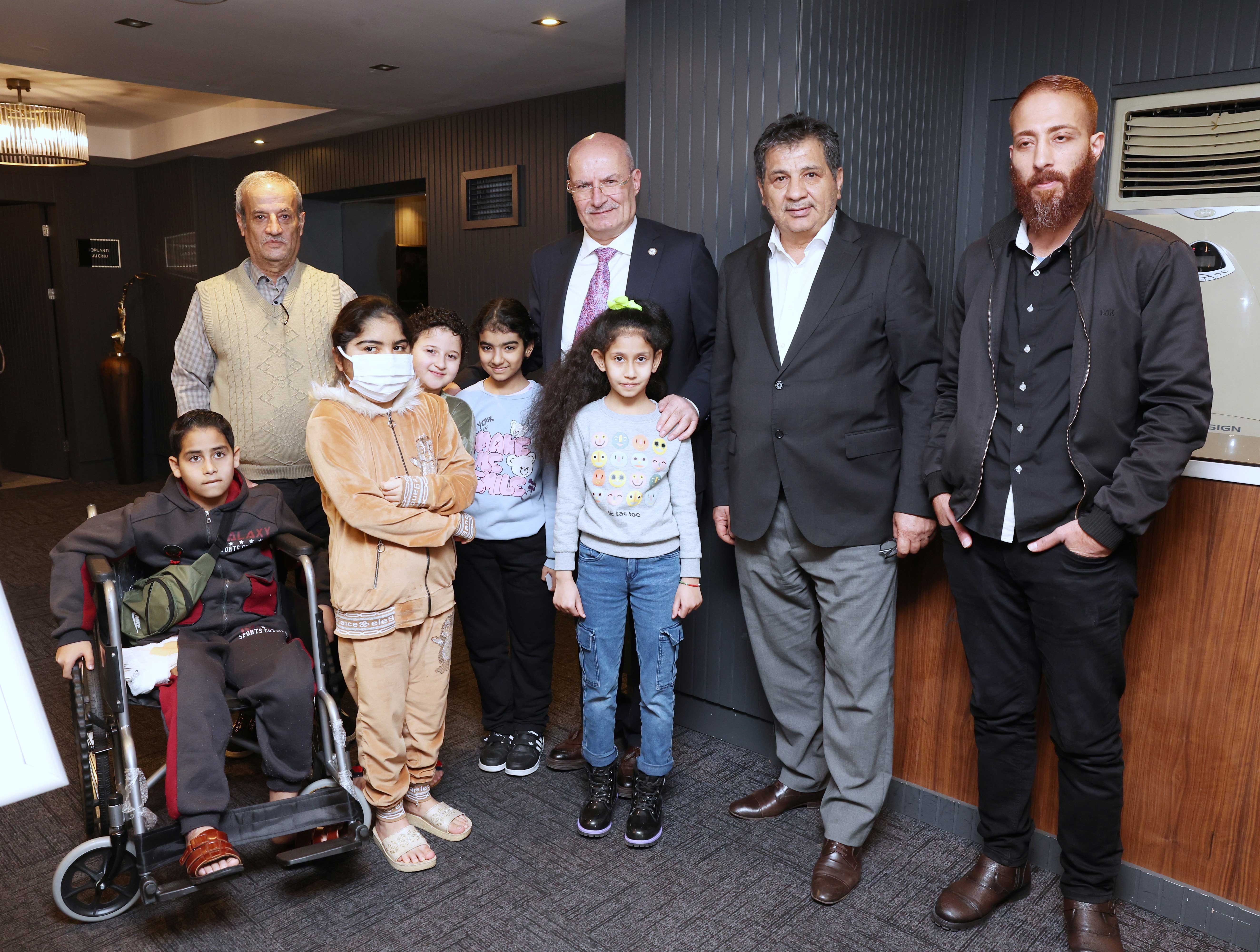 28 Şubat 2024-Ankara Ticaret Odası (ATO) Yönetim Kurulu Başkanı Gürsel Baran, İsrail'in saldırıları nedeniyle sağlık hizmetine ulaşamayan, Mısır üzerinden Ankara'ya getirilerek tedavilerine devam edilen Filistinli hasta, yakın ve çocukları İçişleri Bakanlığı Afet ve Acil Durum Yönetimi Başkanlığı (AFAD) koordinasyonunda yerleştirildikleri ATO üyesi bir otelde ziyaret etti.