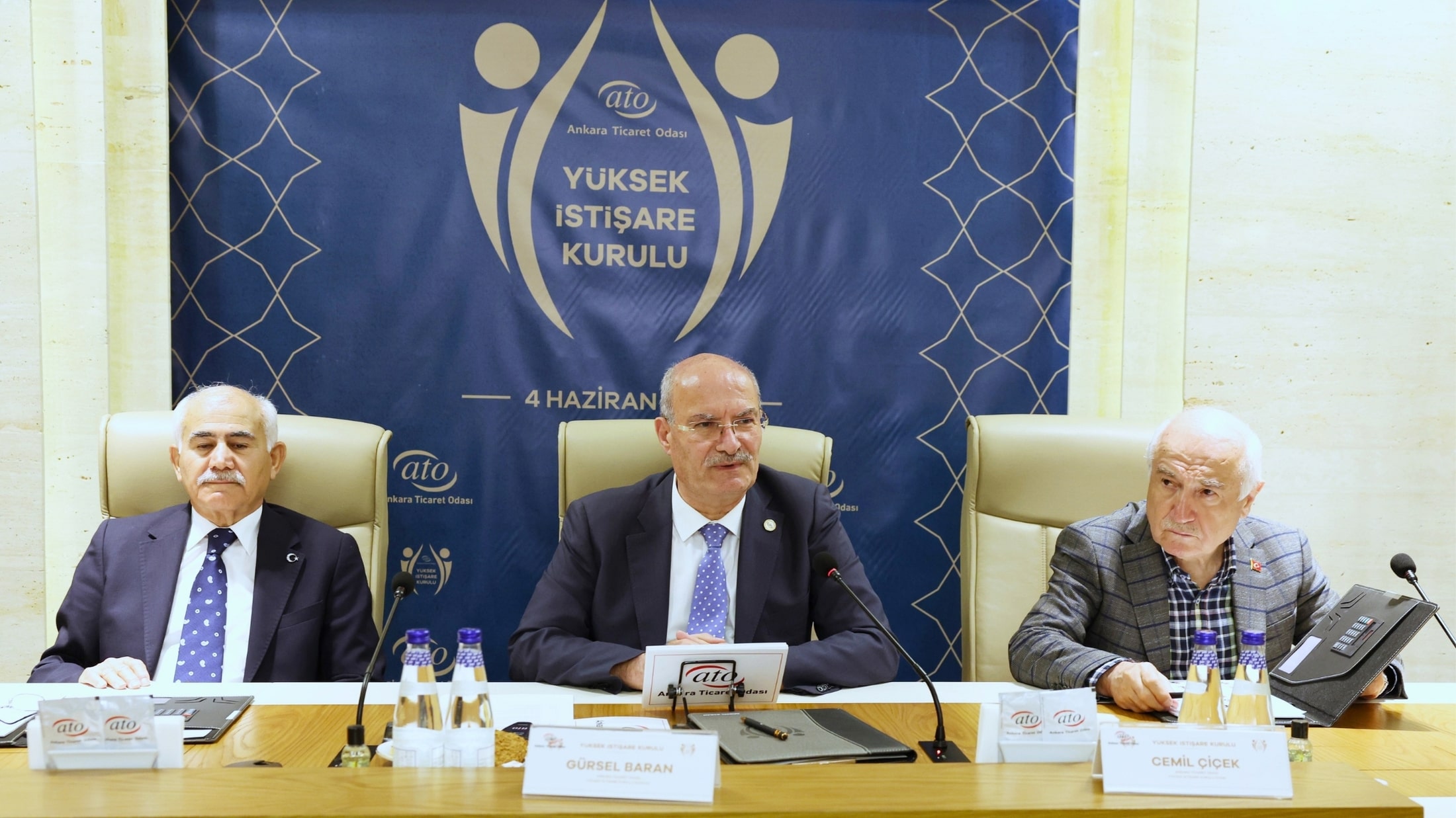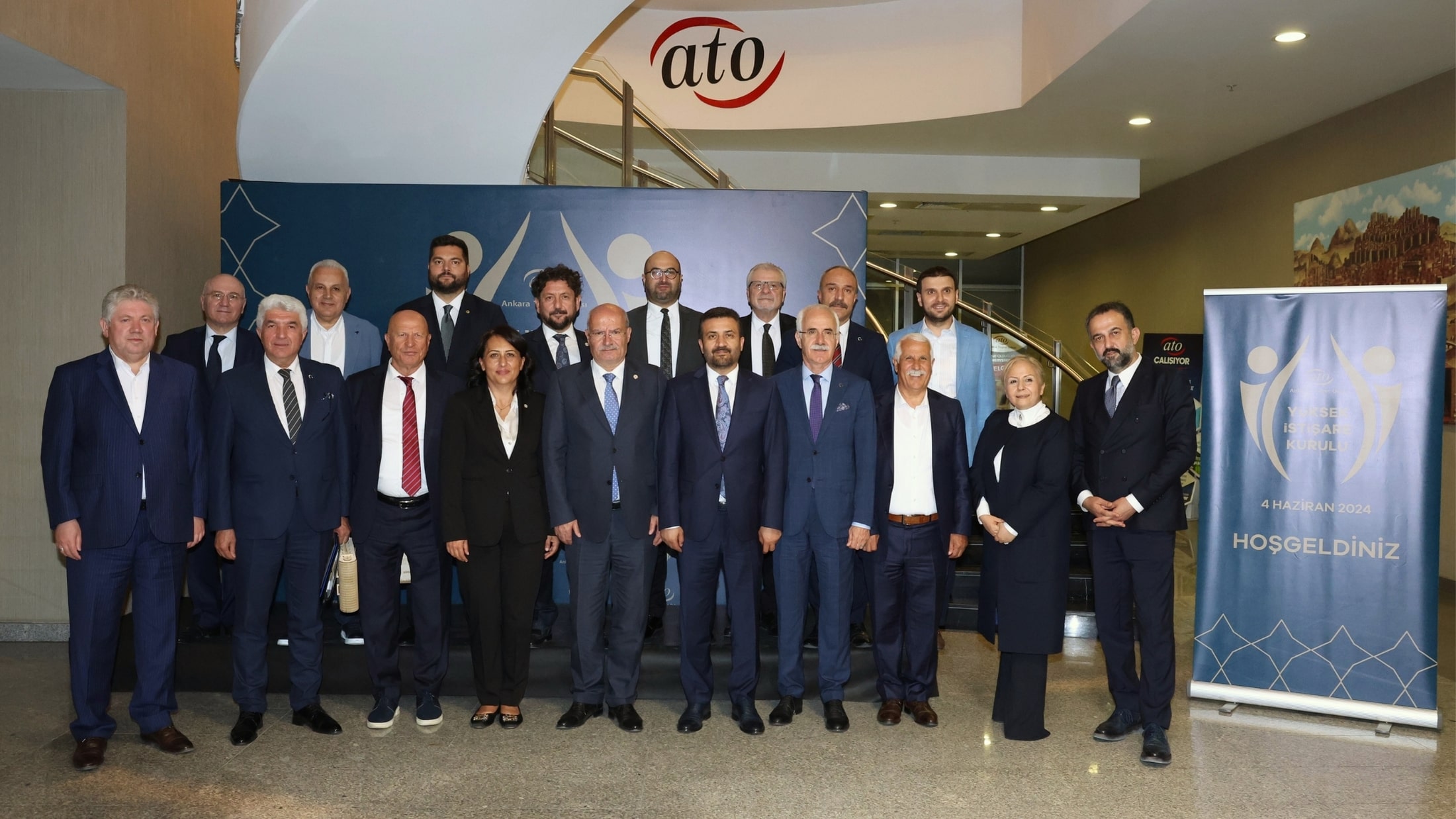 ATO'nun "2. Yüzyılda Ankara Vizyonu" gündemiyle, ATO Duatepe Hizmet Binası'nda gerçekleşen Yüksek İstişare Kurulu toplantısı, TBMM 24. Dönem Başkanı Cemil Çiçek, OSTİM Yönetim Kurulu Başkanı Orhan Aydın, Ankara Büyükşehir Belediye Başkan Vekili Berkay Gökçınar, ODTÜ Mimarlık Bölümü Öğretim Üyesi Prof. Dr. Lale Özgenel, ASİAD Yönetim Kurulu Başkanı Eda Ersoy Tombakoğlu, OSİAD Yönetim Kurulu Başkanı Süleyman Ekinci, ATO 28. Dönem Yönetim Kurulu Üyesi Nuh Acar, ATO E. Meclis Üyeleri Mustafa Kaya, Cemal Işık, Yunus Altun, Fatih Mert, ATO Üyesi iş insanları Mustafa Özbey ve Sertaç Köleli, Keçiören İnşaat Müteahhitleri Derneği Başkanı Yusuf Tekay, SAYOKAN Dünya Federasyonu ve Ankara Tekstil Ürünleri Sanayicileri Dernek Başkanı Yaşar Tanrıverdi ve TÜMSİAD Ankara Koordinatör Şube Başkanı İnan Yürek ile ATO Meclis Başkanı Mustafa Deryal, Yönetim Kurulu Başkan Yardımcıları Temel Aktay ve Halil İbrahim Yılmaz, Meclis Başkan Yardımcısı Ali İhsan Özdemir, Yönetim Kurulu Üyeleri Adem Ali Yılmaz, Ahmet Akça, Ali İhsan Güçlü, Ali Yıldız, Halil İlik, Nihat Uysallı, Yasin Özyolu ve Meclis Başkanlık Divan Katibi Ayşe Nilay Çelik'in katılımıyla gerçekleşti.