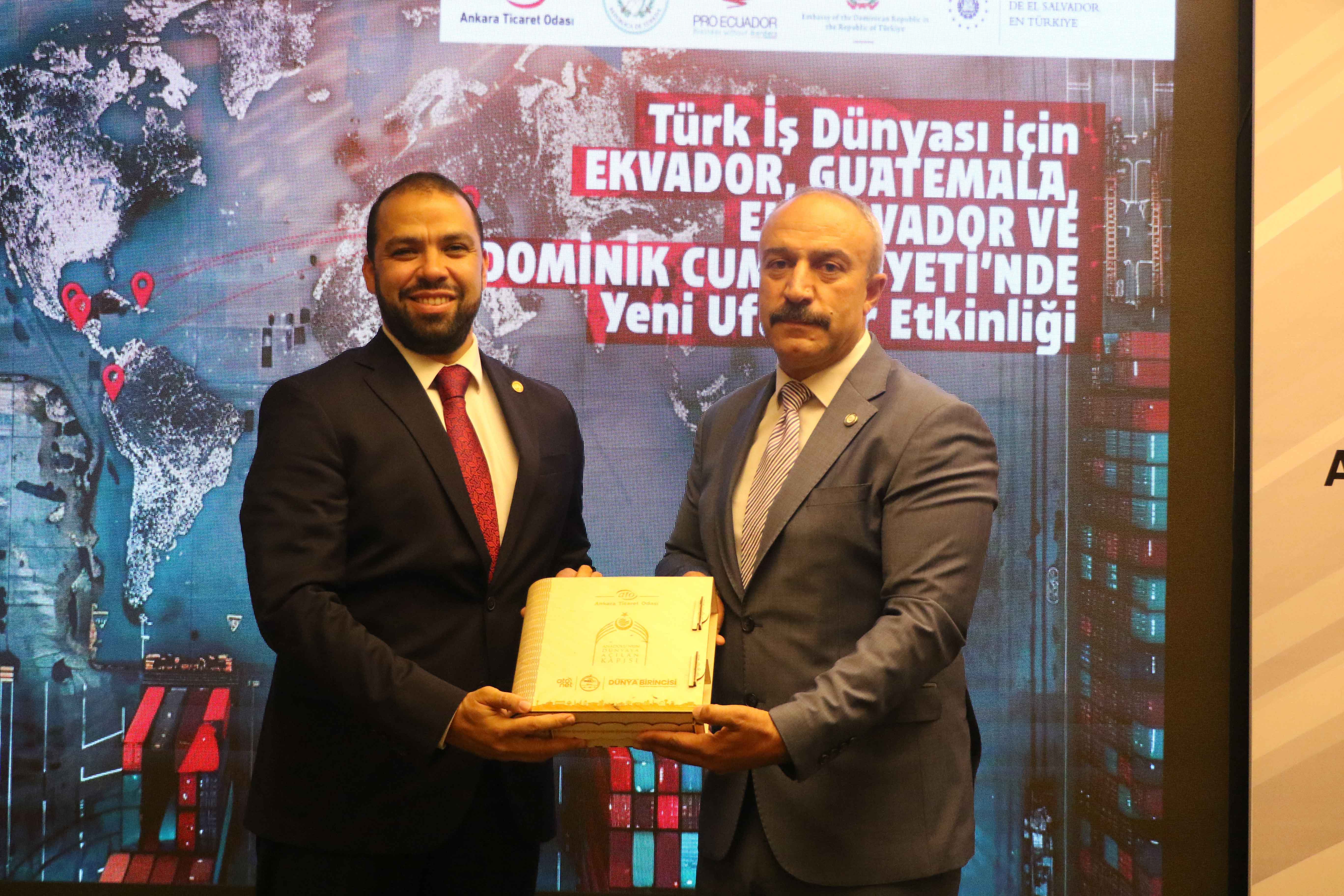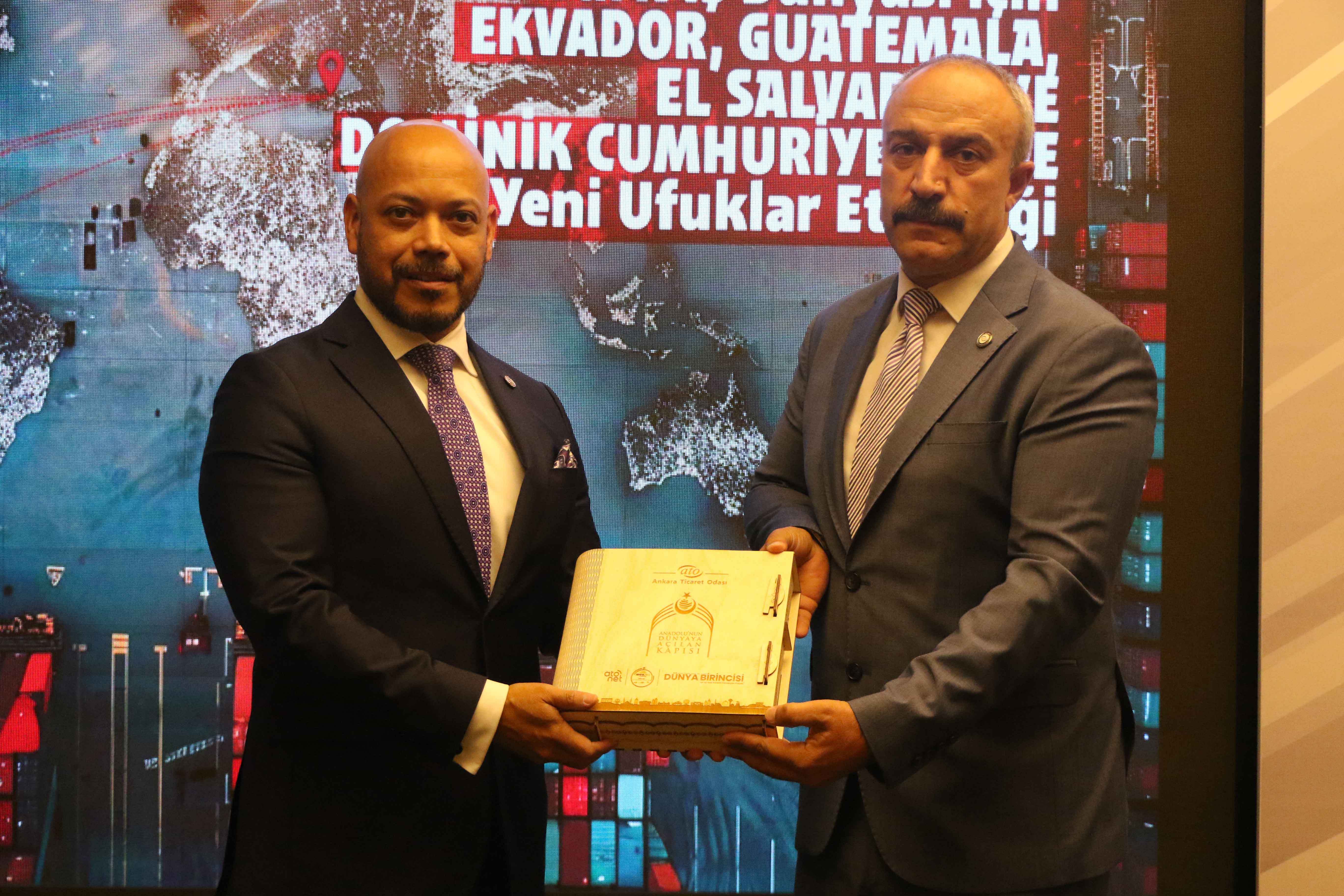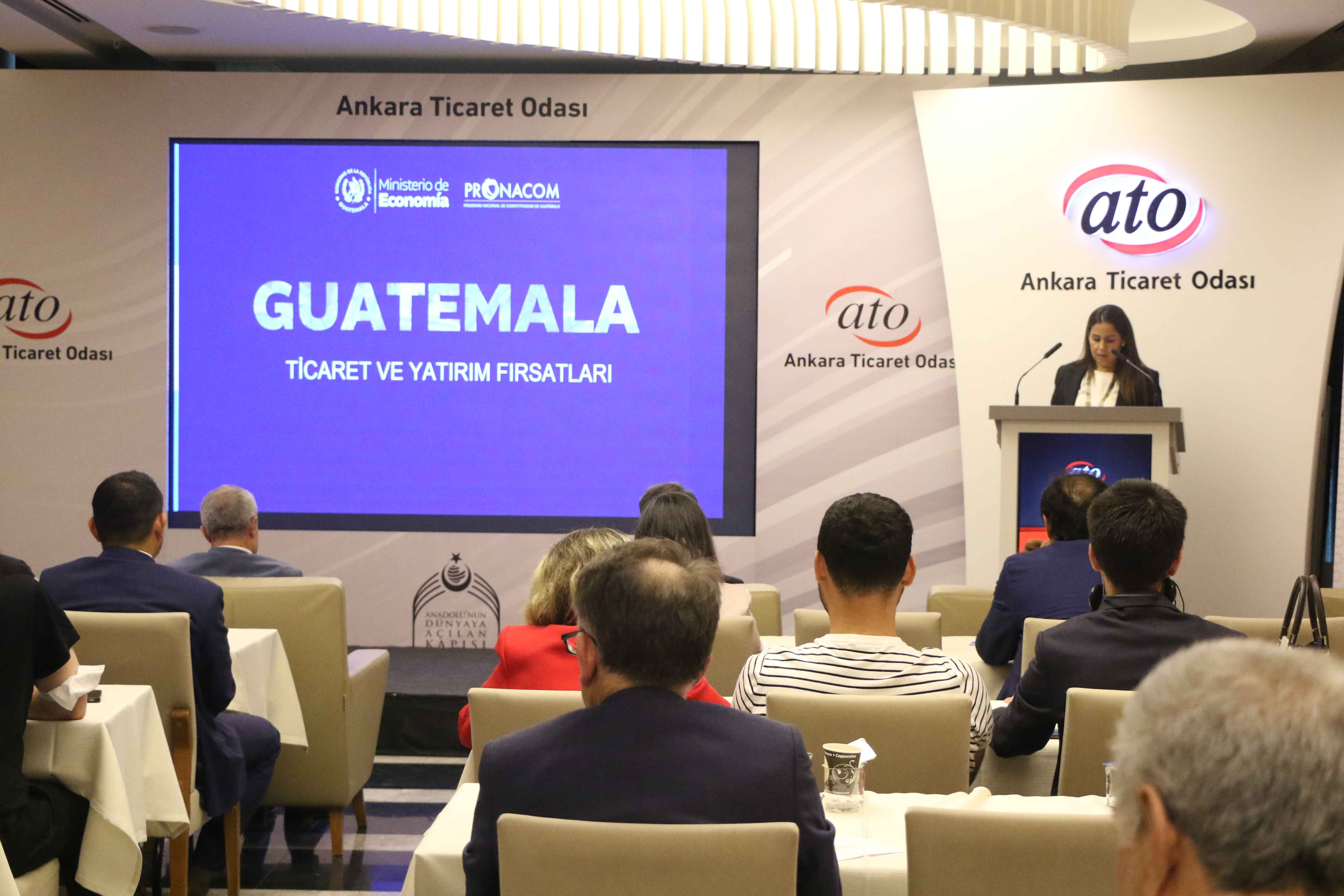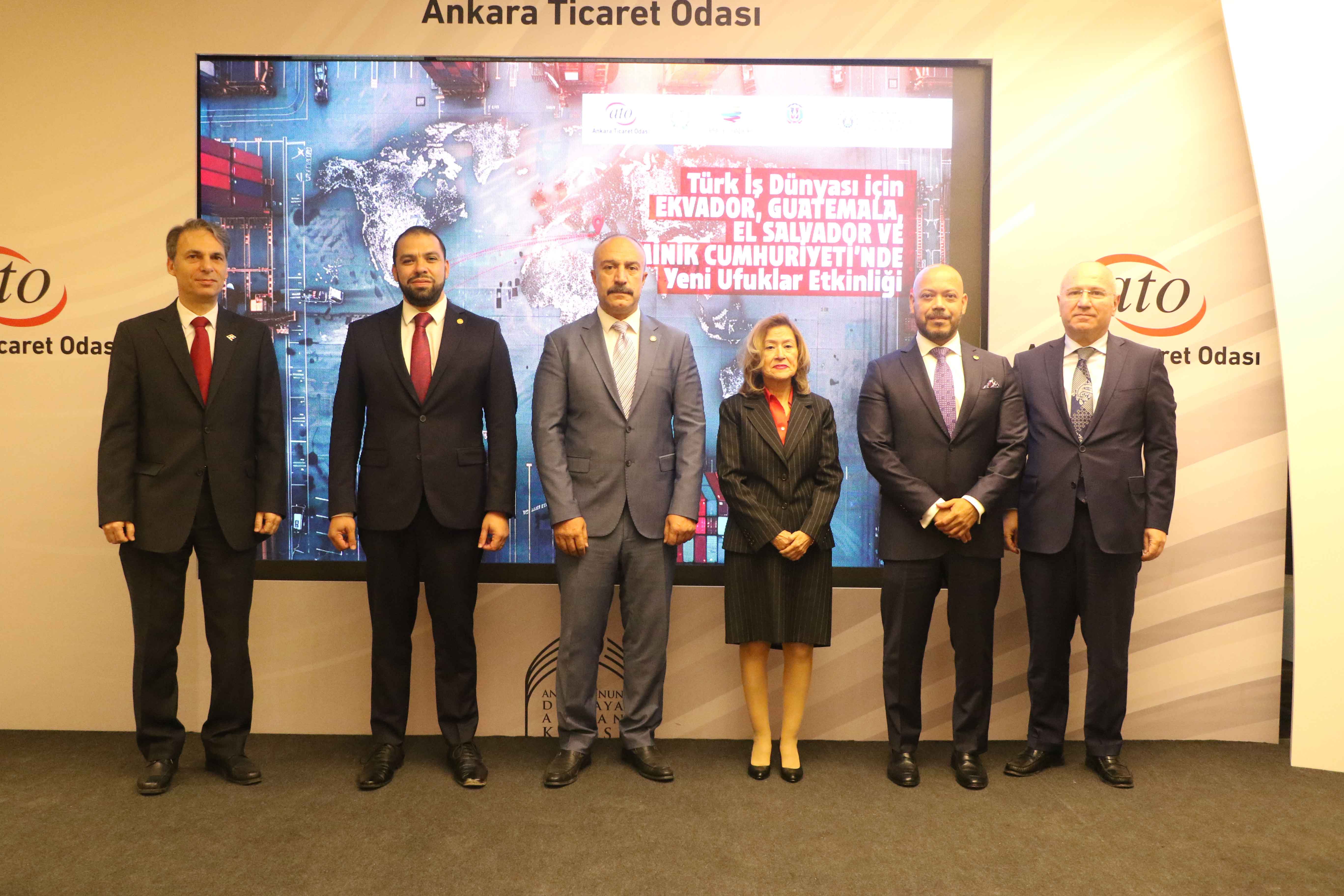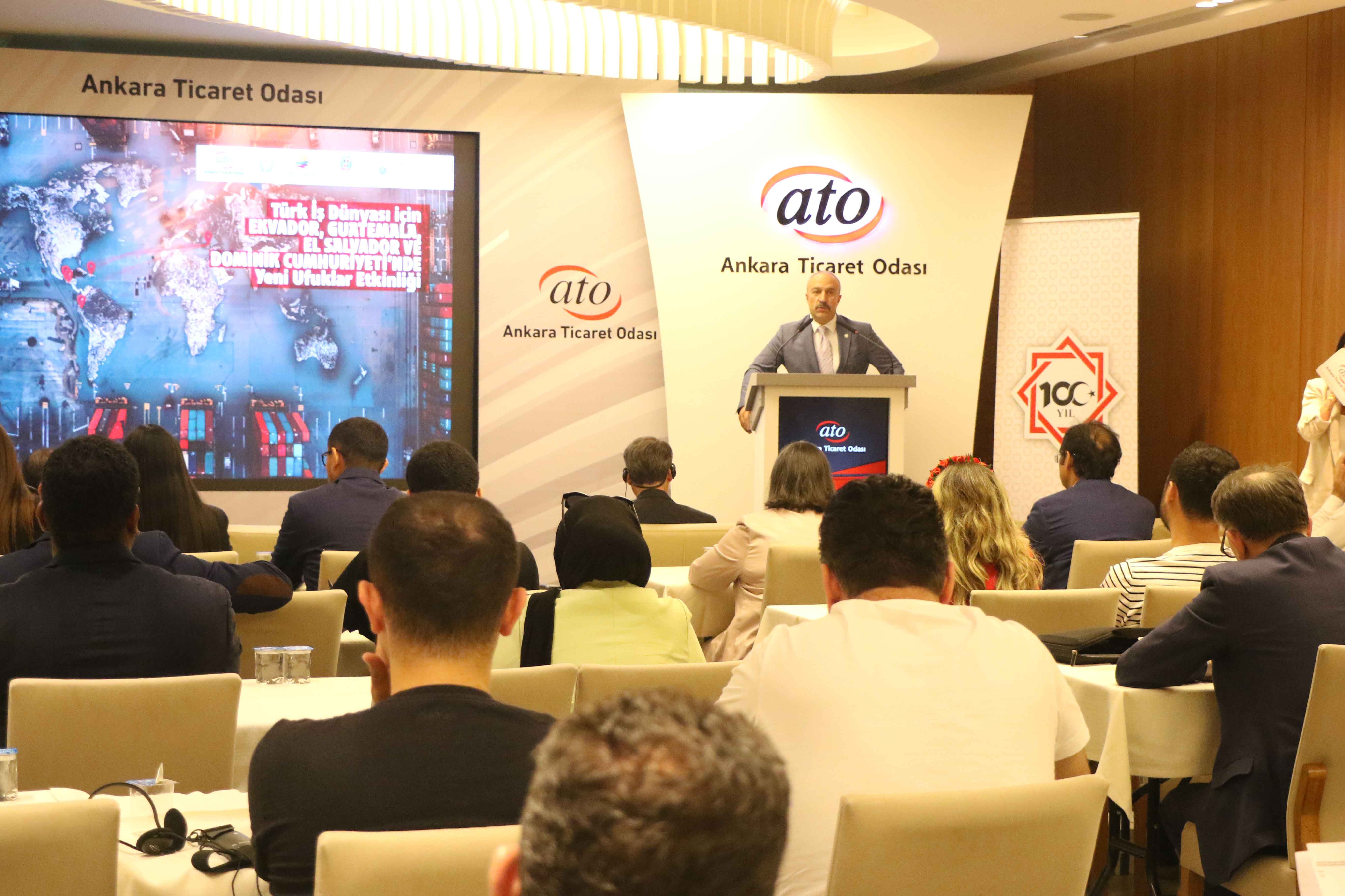 Toplantı'nın açılışında konuşan ATO Yönetim Kurulu Üyesi Ali İhsan Güçlü, Orta Amerika ülkeleriyle ekonomik ve ticari ilişkilerin geliştirilmesinde daha hızlı ve somut sonuçlar alınmaya başladığını belirterek, "Bölge ülkeleriyle inşaat, enerji, tarım, turizm, sağlık ve savunma sanayi başta olmak üzere pek çok alanda iş birliği potansiyeli mevcut. Ankara Ticaret Odası olarak, Ekvador, Guatemala, El Salvador ve Dominik Cumhuriyeti ile ticari ve ekonomik ilişkileri daha ileriye taşıma gayretindeyiz" dedi. Ankara Ticaret Odası olarak üyelerinin ticaretini, ihracatını, yatırımlarını geliştirmeye yönelik çalışma ve organizasyonları önemsediklerini kaydeden Güçlü, "Üyelerimizin özellikle büyüyen, gelişen ekonomiler ile tanışarak bu bölgelere ticaret ve yatırım yapmalarına katkı sağlamak istiyoruz. Bu etkinlikte de üyelerimiz, Ekvador, Guatemala, El Salvador ve Dominik Cumhuriyeti'nden gelen temsilciler ile birebir görüşmeler sağlayarak bölgelerin hızla büyüyen, gelişen pazarları hakkında derinlemesine bilgi sahibi olacaklar" dedi.