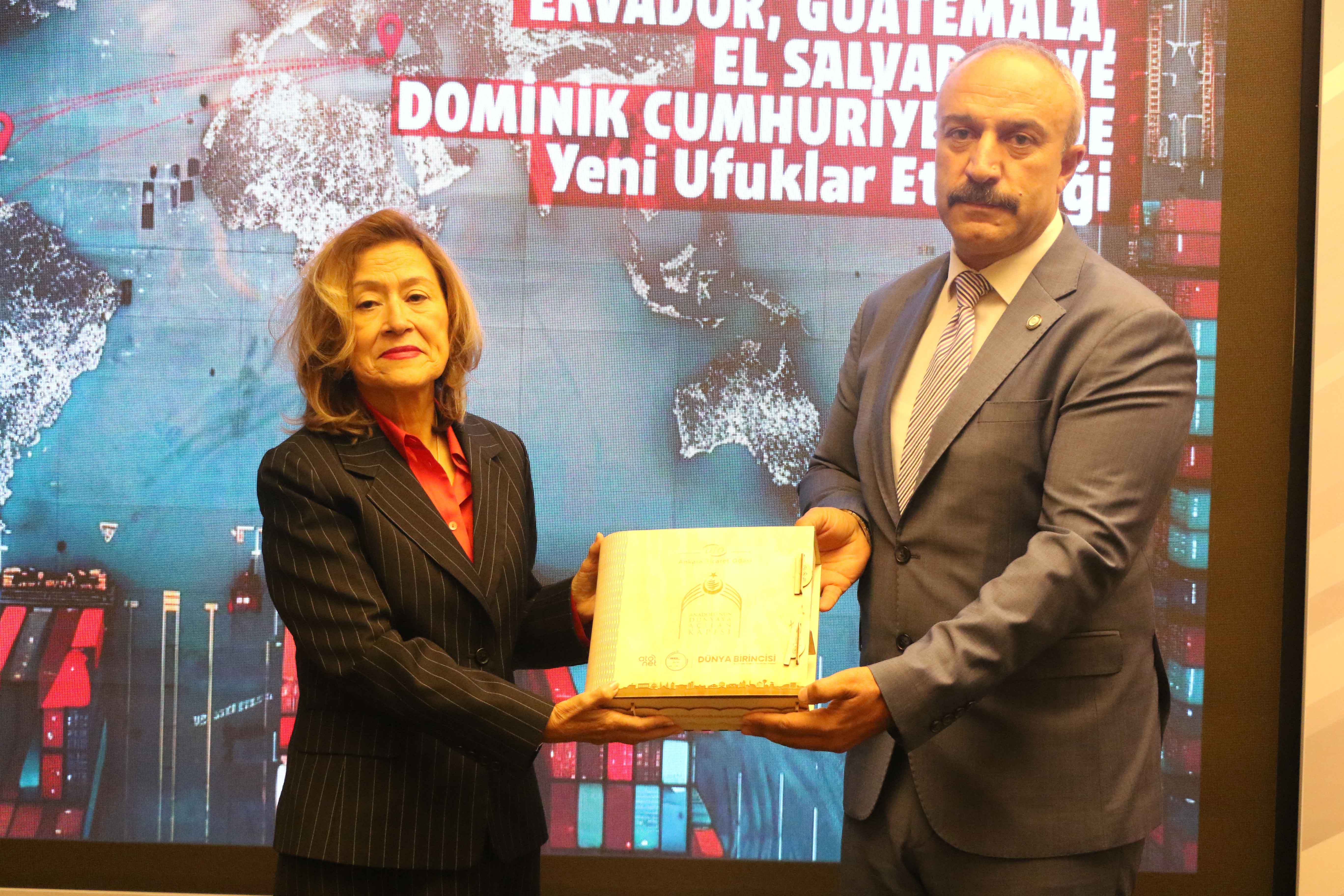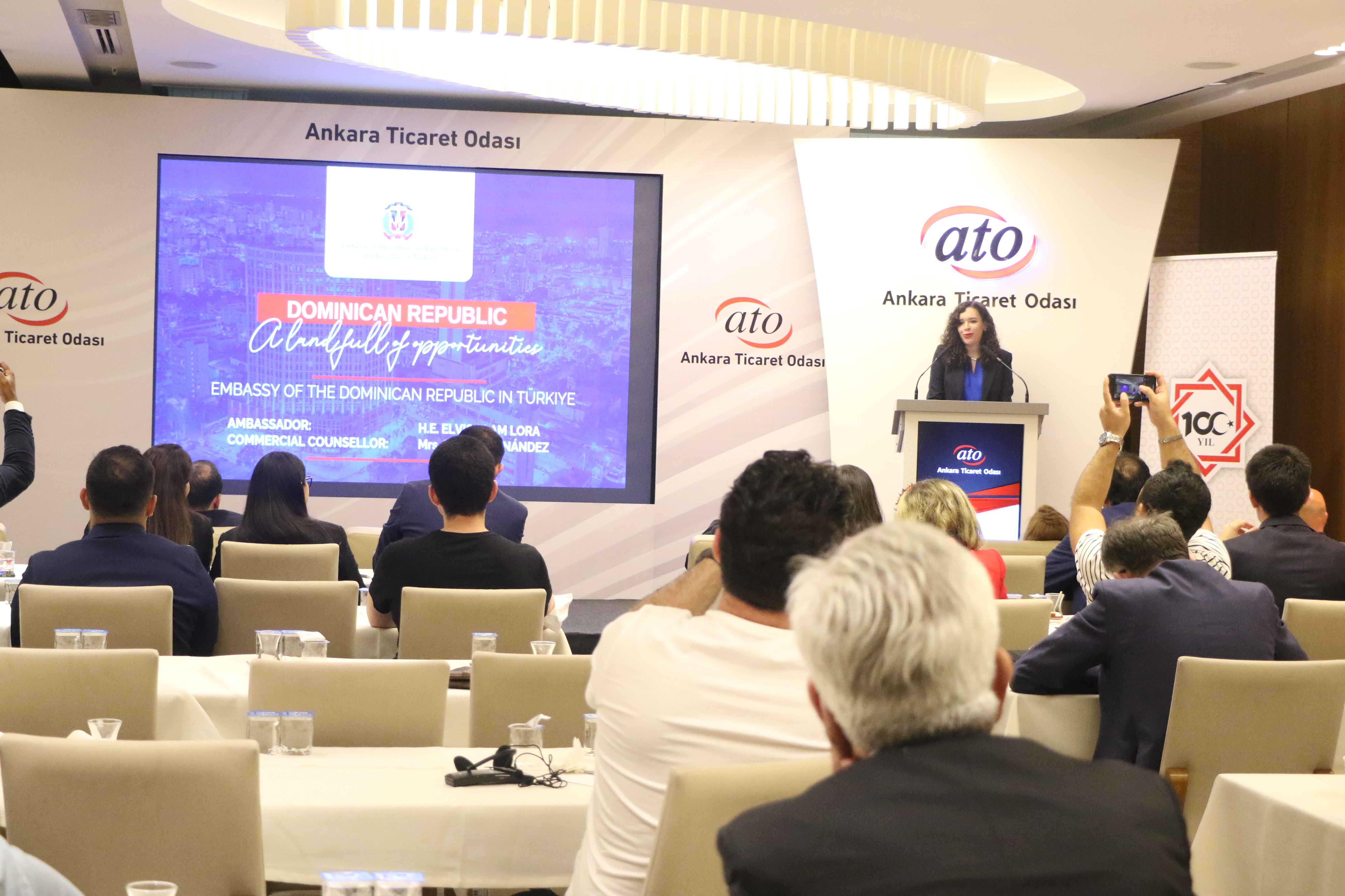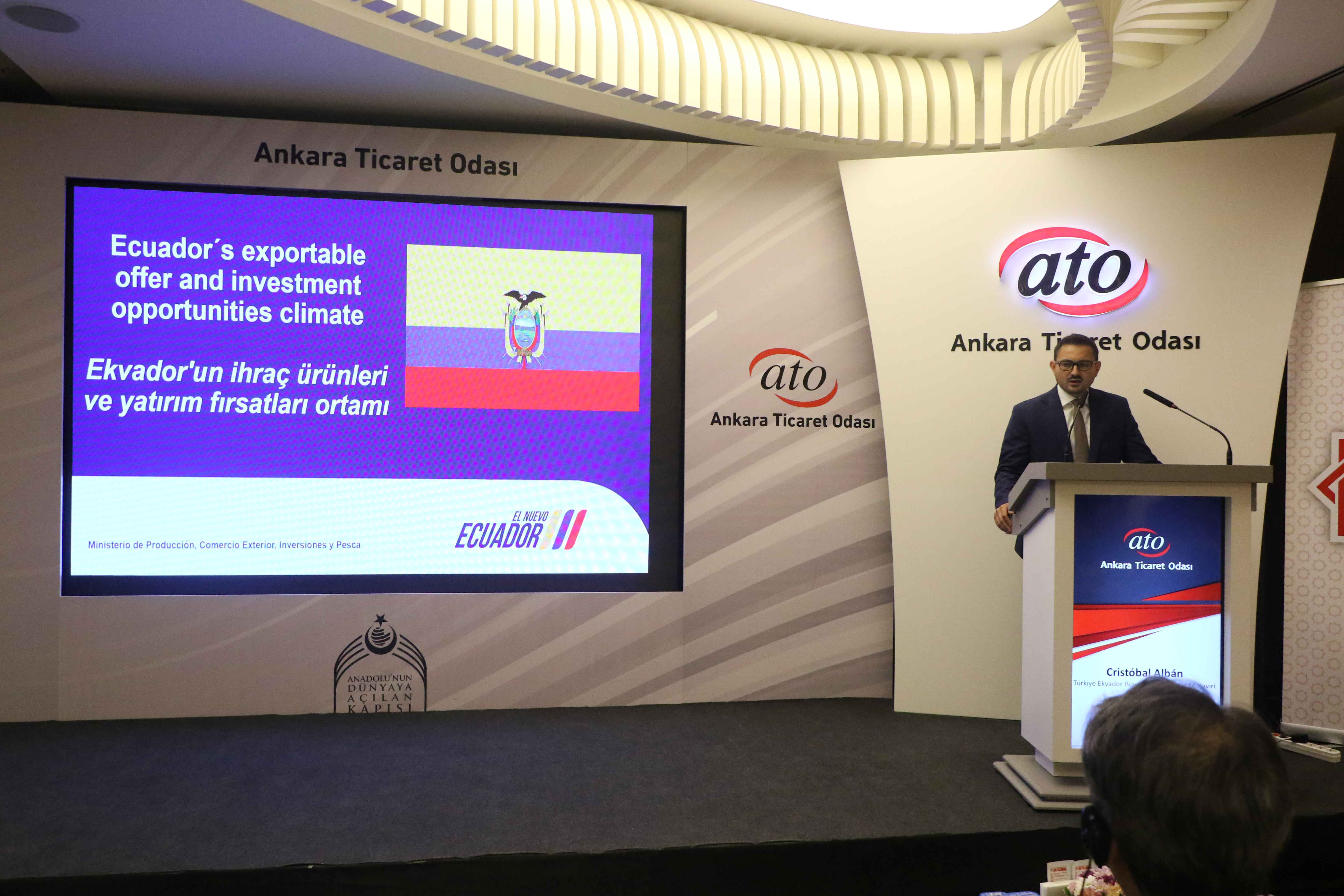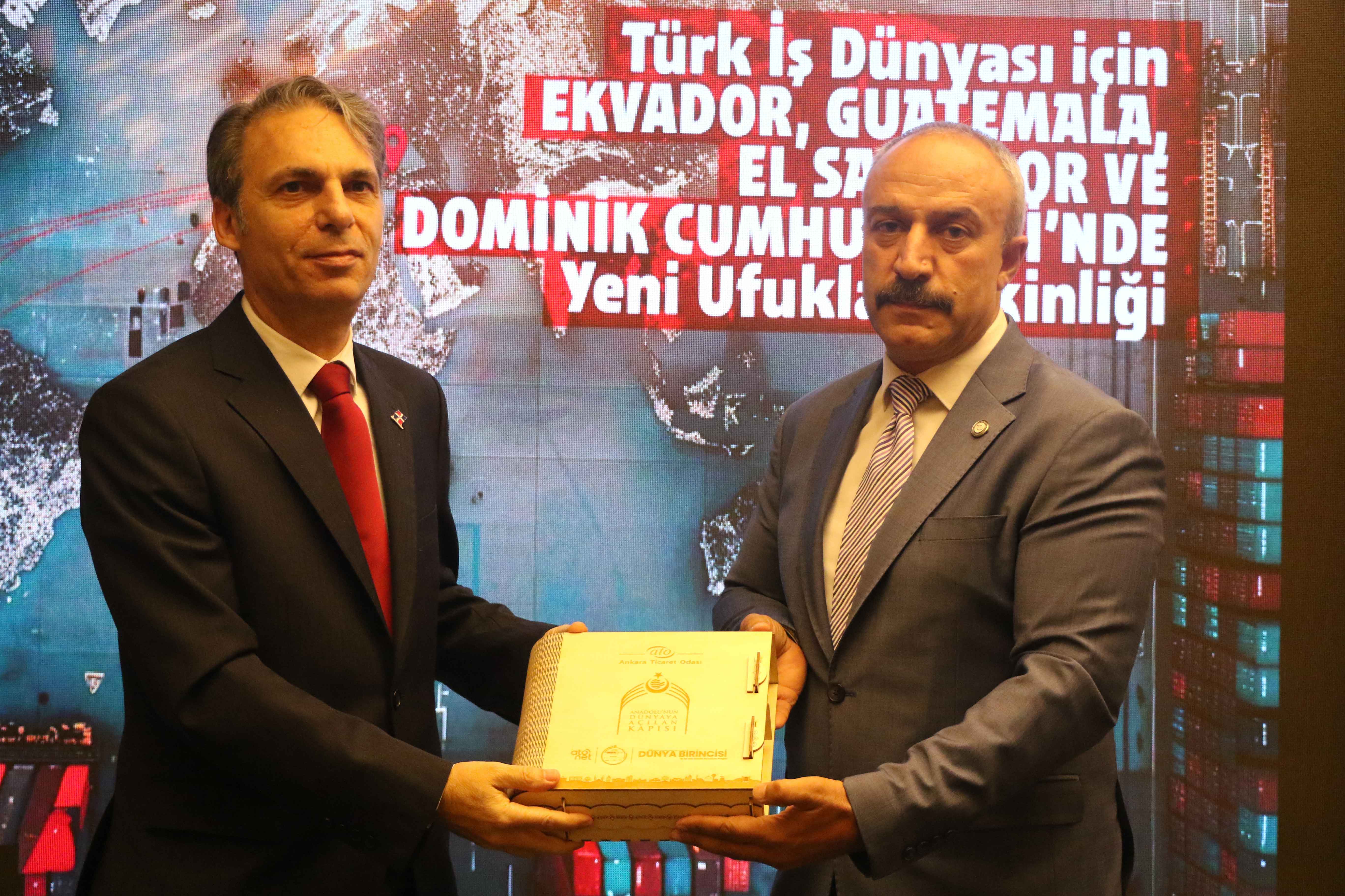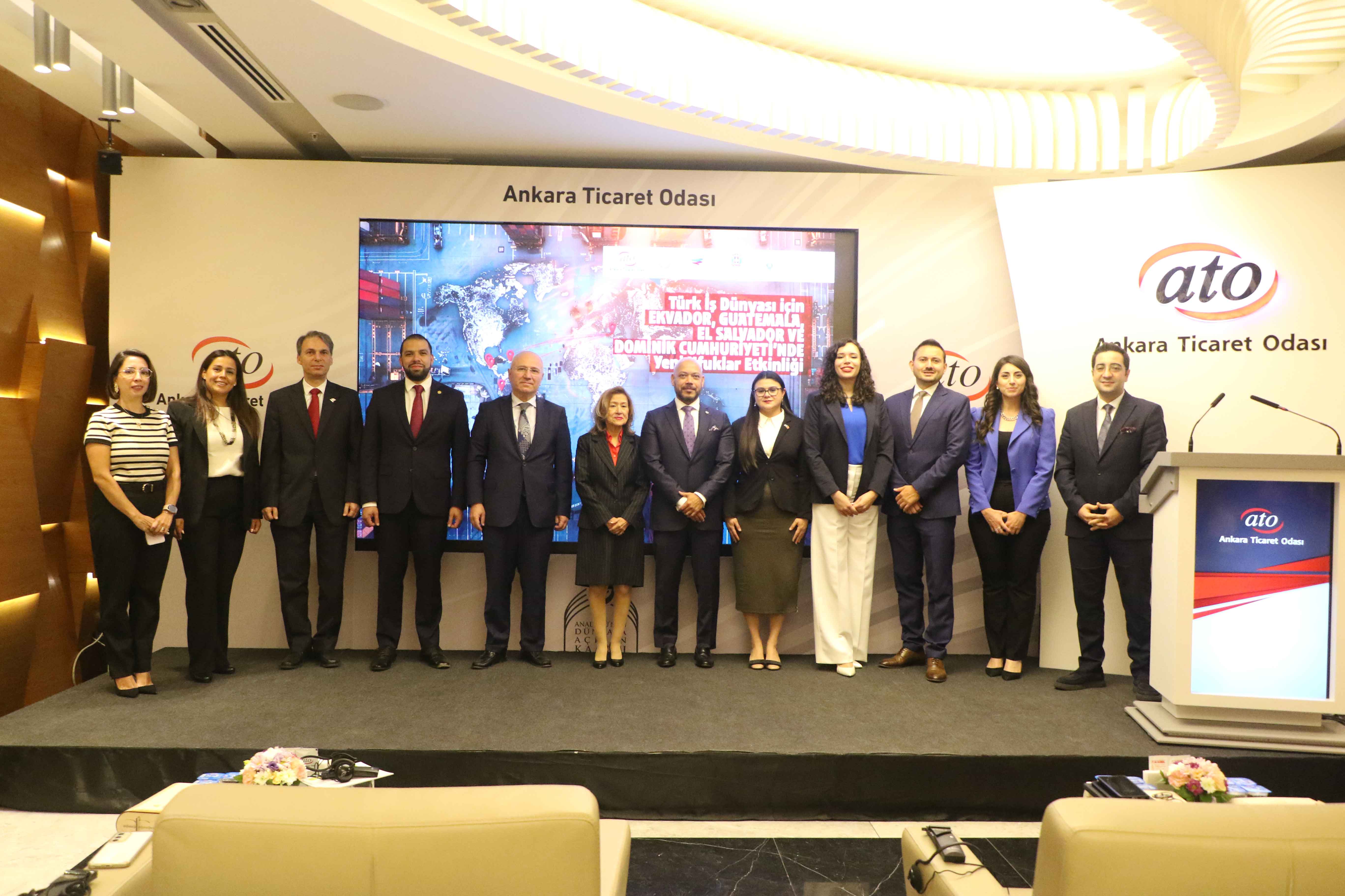 ATO Duatepe Hizmet Binası'nda gerçekleşen, "Türk İş Dünyası için Ekvador, Guatemala, El Salvador ve Dominik Cumhuriyeti'nde Yeni Ufuklar" toplantısı, ATO Yönetim Kurulu Üyesi Ali İhsan Güçlü ile Ekvador'un Türkiye Büyükelçisi Fanny de Lourdes Puma Puma, El Salvador'un Türkiye Büyükelçisi Hector Enrique Jaime Calderon, Guatemala'nın Türkiye Büyükelçisi Eduardo Hernández Recinos, Dominik Cumhuriyeti Türkiye Maslahatgüzarı Ramy Makhlouf Malek, bölgeden temsilci ve iş insanları ile ATO üyelerinin katılımıyla yapıldı.