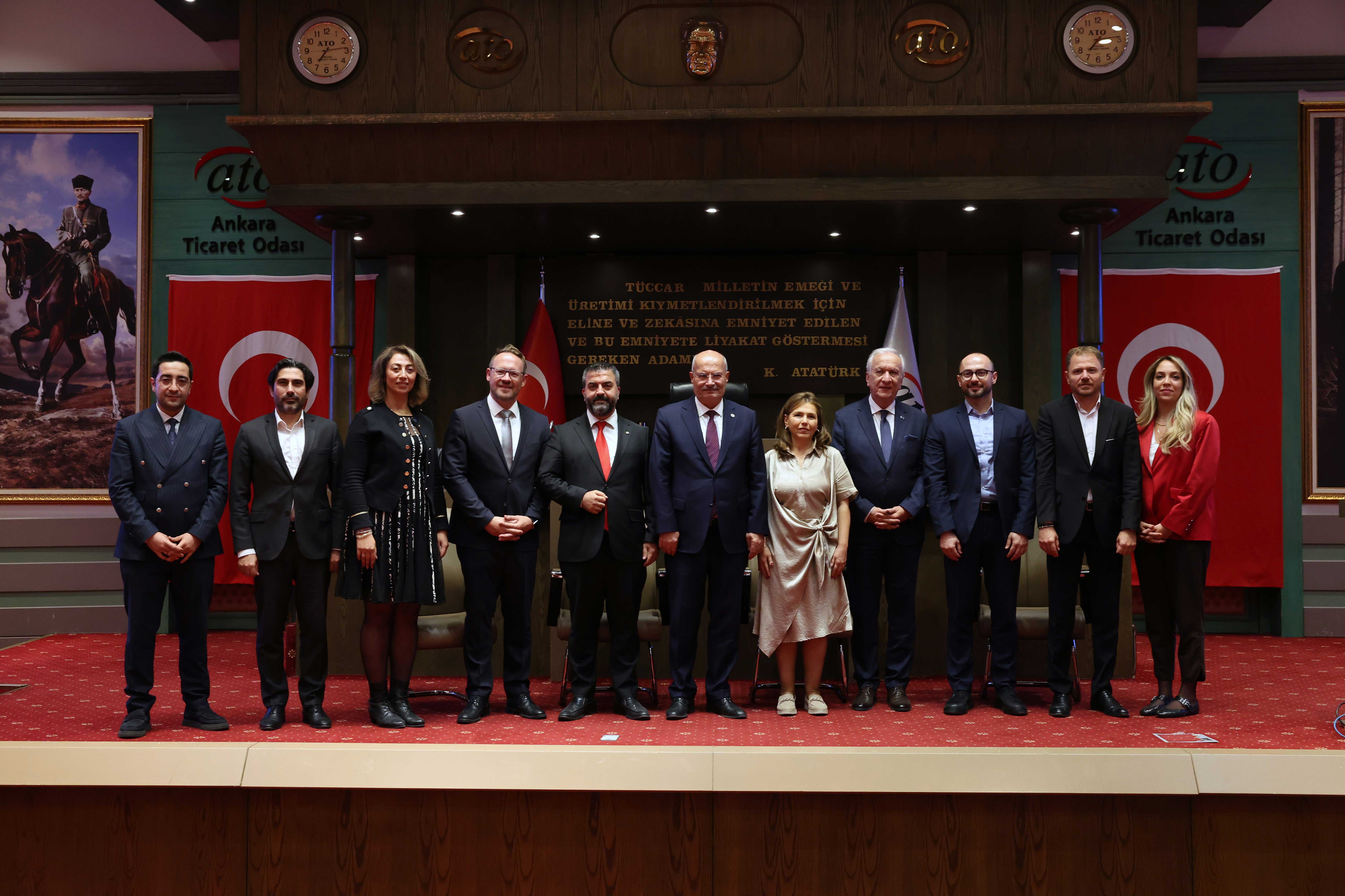 Türk Alman Ticaret ve Sanayi Odası'nın (TD IHK) "TOGG ve Trendyol desteğiyle Kars'tan Edirne'ye" adlı roadshowu kapsamında, Ankara Ticaret Odası işbirliğiyle gerçekleştirdiği, "Türk Şirketleri için Almanya'da Yatırım ve Şirketleşme Fırsatları" toplantısı, ATO Meclis Salonu'nda yapıldı.