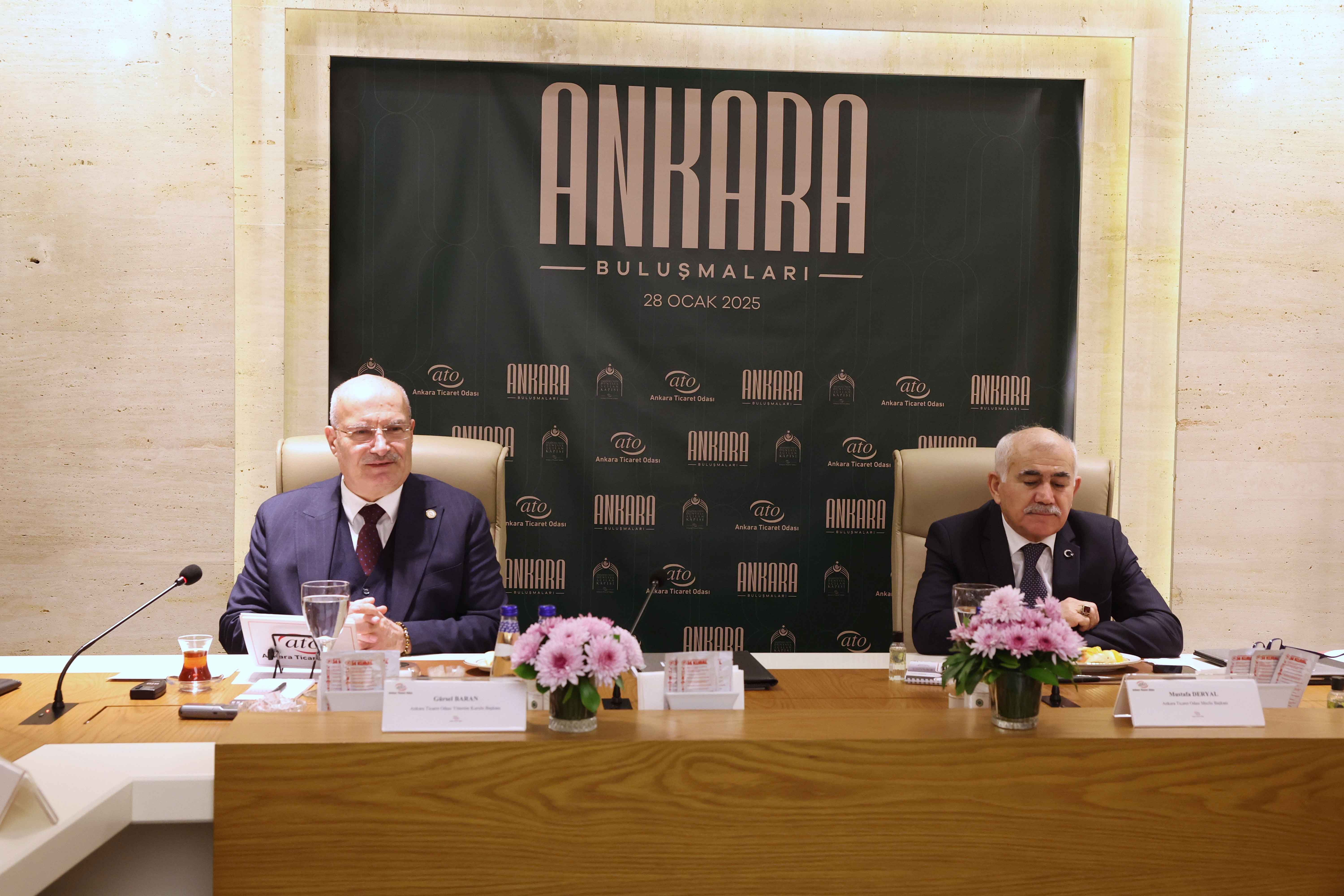 Konuşmasına, Ankara'nın temel göstergelerini içeren bir sunum yaparak başlayan ATO Başkanı Gürsel Baran, Ankara Ticaret Odası hakkında bilgi verdi. Ankara Ticaret Odası olarak yürüttükleri çalışmaların Başkent'in mevcut şartları, sorunları ve ihtiyaçlarını gündeme getirdiğini kaydeden Baran, "Ankara, siyasetin, bürokrasinin, kamu yönetiminin merkezi olmasının yanı sıra aynı zamanda tarihî ve kültürel zenginlikleri, üretim kapasitesi, ticaret ve turizm iklimi ve yükselen ihracat potansiyeliyle önemli bir şehir. Ankara'nın potansiyelinin harekete geçirilmesi ve ülkemizin gelişimine daha güçlü katkı sağlayabilmesi için gelişebileceği alanları belirlemek, sorunları tespit etmek ve çözüm önerilerini ortaya koymak, yeni projeler üretmek, kısacası kentimizi konuşmak üzere, Ankara ile ilgili söz söyleyebilecek tüm kesimlerle "Ankara Buluşmaları" toplantılarında bir araya gelmeyi, görüş alışverişinde bulunmayı, istişare etmeyi, birlik ve beraberliğimizi pekiştirmeyi istedik" dedi.