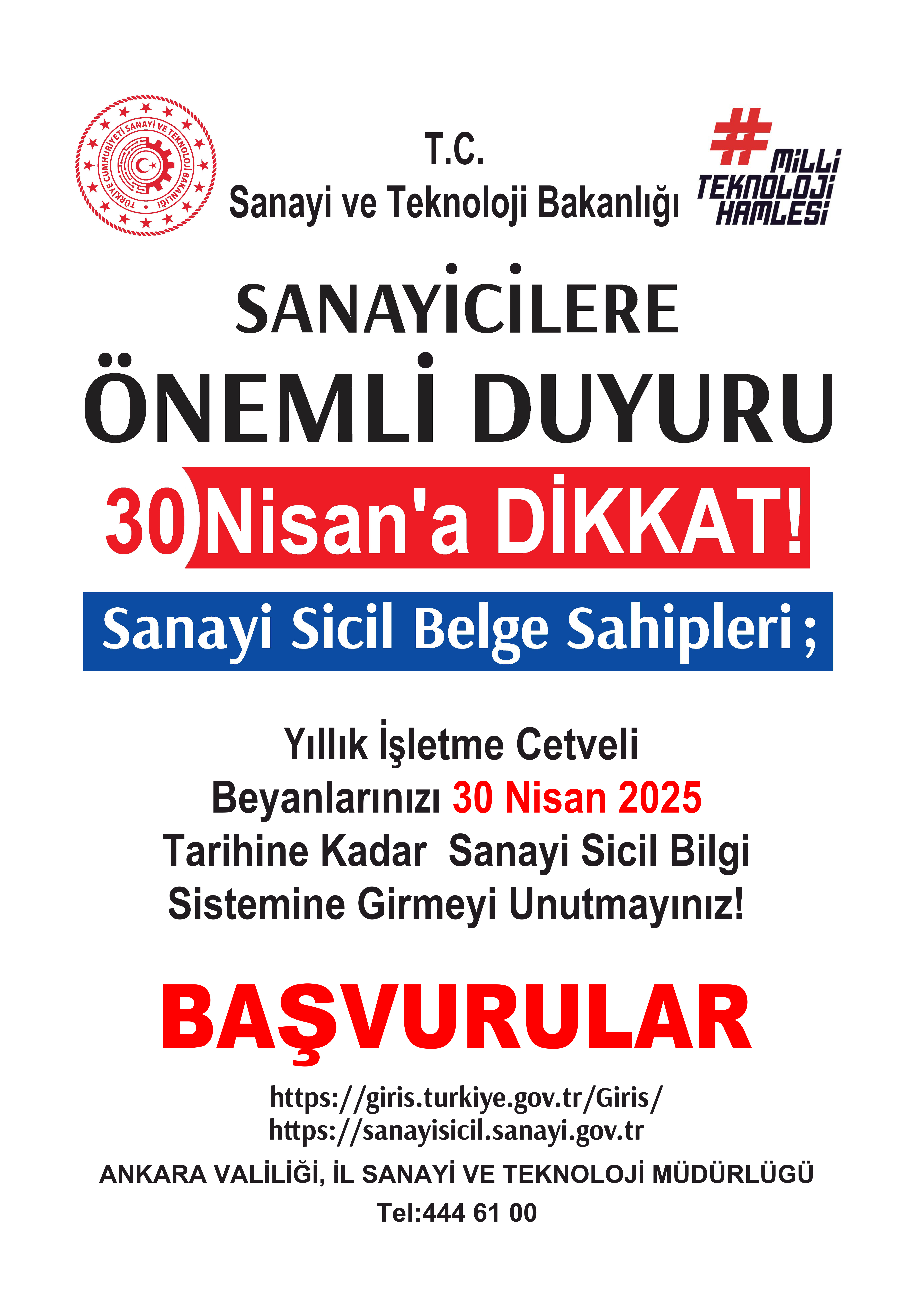 SANAYİ SİCİL BELGE SAHİPLERİ İÇİN ÖNEMLİ DUYURU