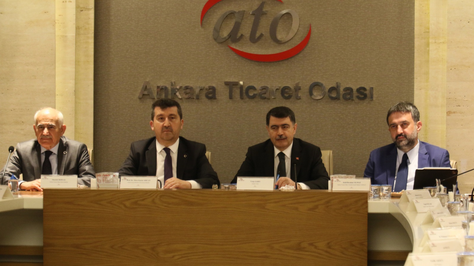 TOPLANTI'YA ANKARA VALİSİ VASİP ŞAHİN İLE ATO MECLİS BAŞKANI MUSTAFA DERYAL, ATO YÖNETİM KURULU BAŞKAN YARDIMCISI HALİL İBRAHİM YILMAZ VE ANKARA SOSYAL BİLİMLER ÜNİVERSİTESİ REKTÖRÜ, TYB GENEL BAŞKANI PROF. DR. MUSA KAZIM ARICAN KATILDI.