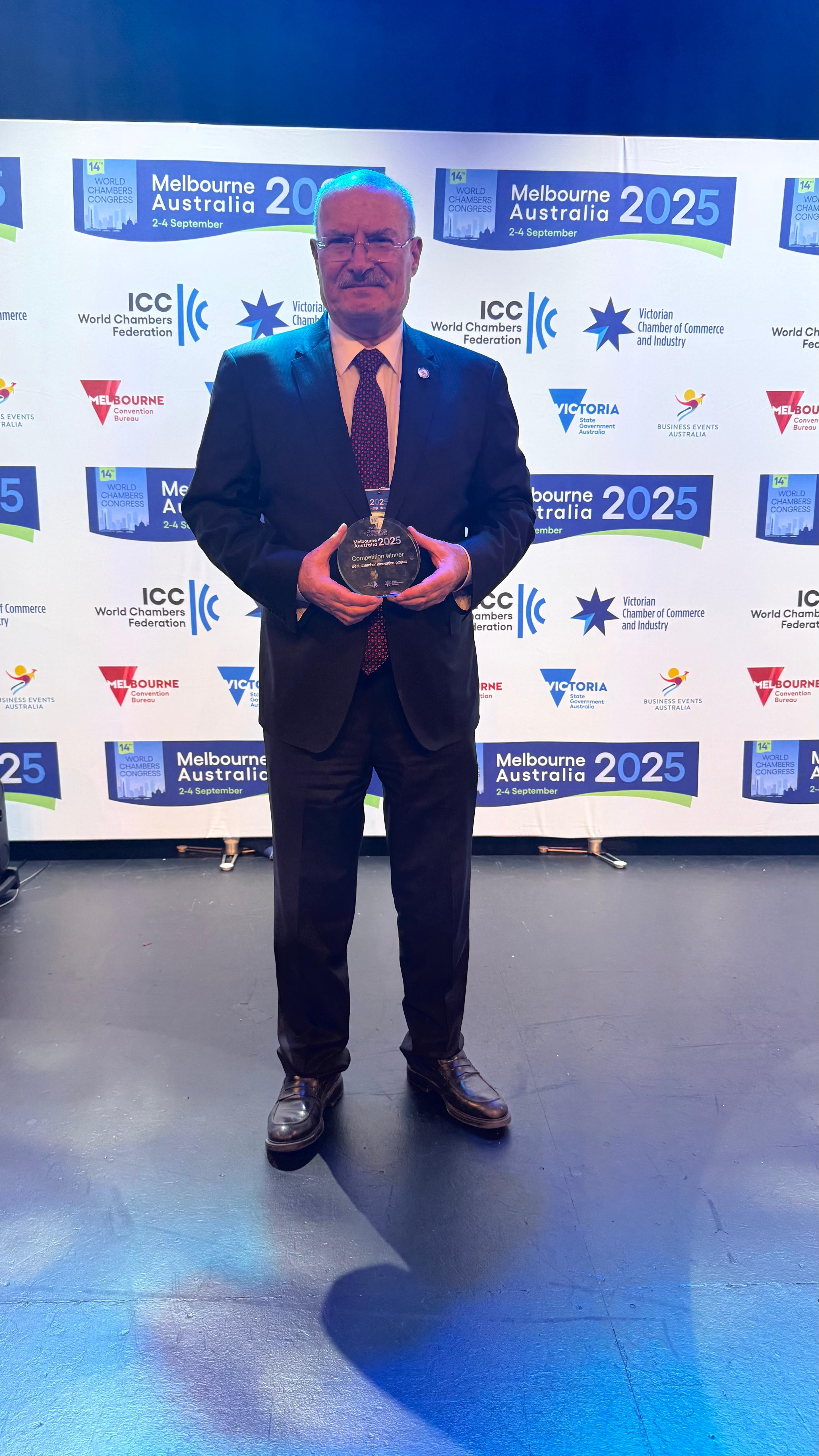 ATO Başkanı Gürsel Baran, Avustralya'nın Melbourne kentinde, 14. Dünya Odalar Kongresi kapsamında gerçekleştirilen "2025 Dünya Odalar Yarışması"nın final programı ve sonuçlarının açıklandığı kongre gala gecesine ATO Yönetim Kurulu Başkan Yardımcısı Temel Aktay, Yönetim Kurulu Üyesi Adem Ali Yılmaz, ATO Bilişim Teknolojileri Meslek Komitesi Başkanı Gökhan Ertek ve proje geliştirme ekibinde görevli ATO personeli ile birlikte katıldı.