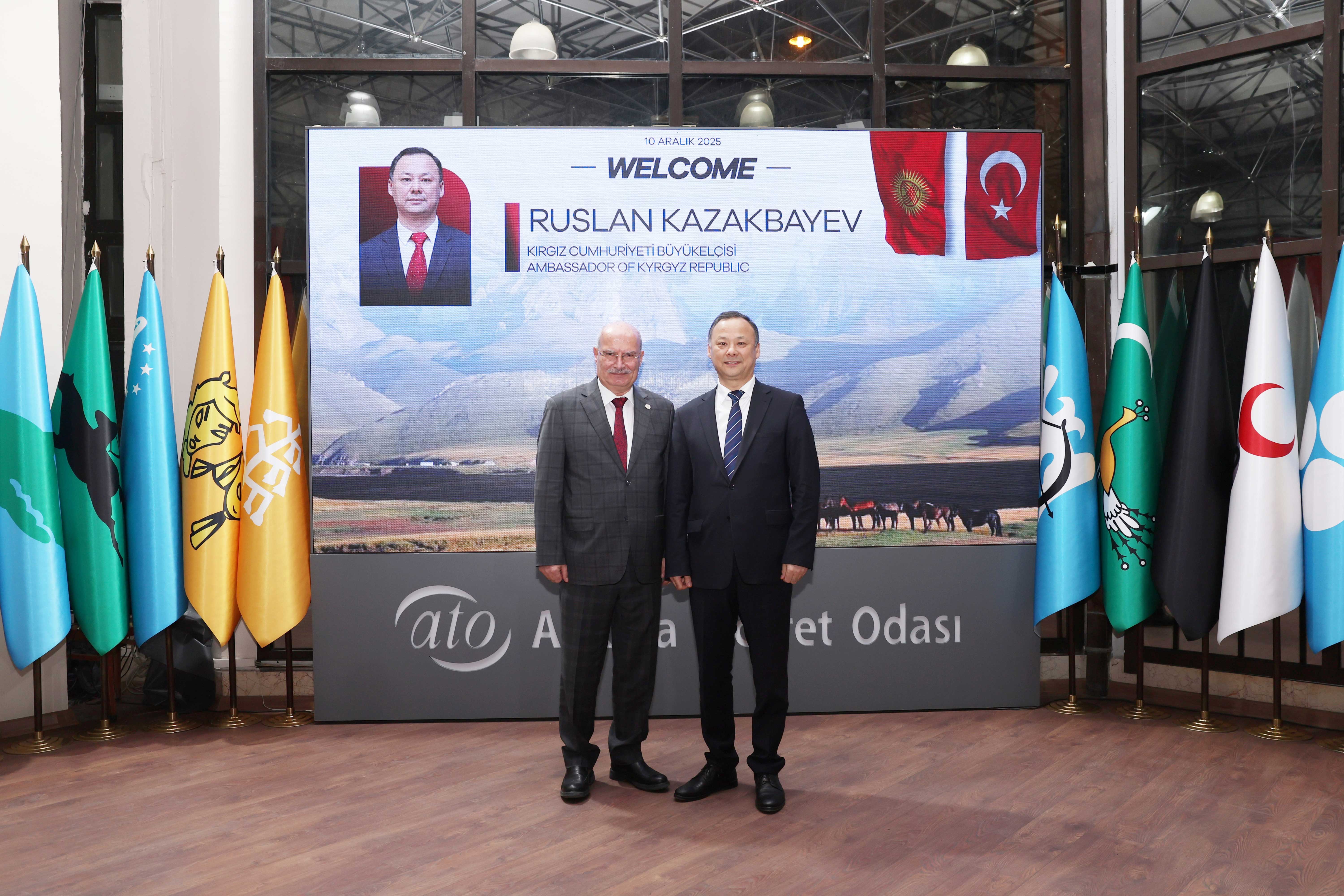 ATO BAŞKANI GÜRSEL BARAN'I ZİYARET EDEN KIRGIZİSTAN BÜYÜKELÇİSİ RUSLAN KAZAKBAEV, TÜRK YATIRIM FONU'NDA KIRGIZİSTAN'A YAPILAN YATIRIMLAR İÇİN ÖNEMLİ TEŞVİK VE ÖNCELİKLERİN BULUNDUĞUNU BELİRTEREK, ATO ÜYELERİNİ YATIRIMA DAVET ETTİ.