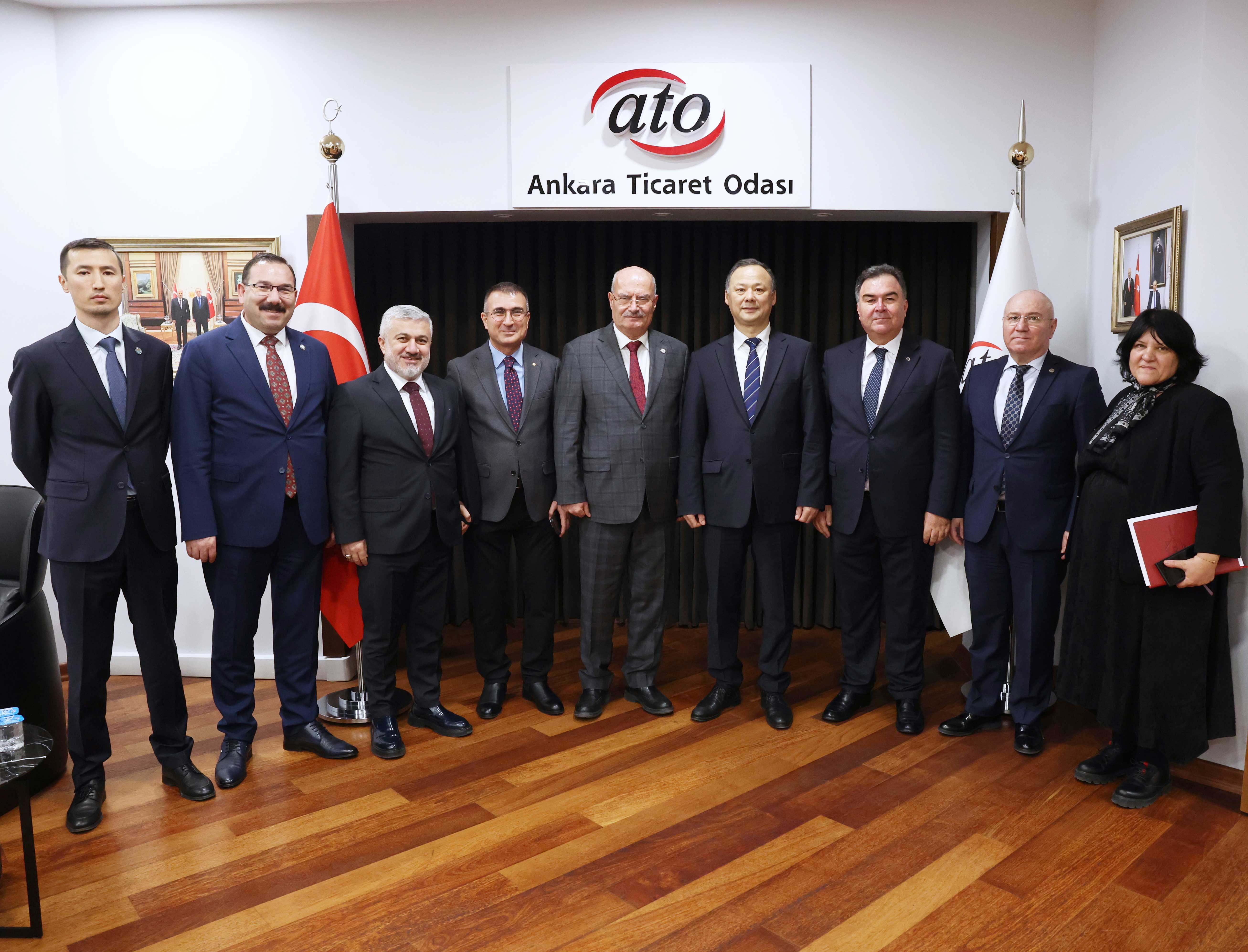 ATO Yönetim Kurulu Başkanı Gürsel Baran, Kırgızistan'ın Ankara Büyükelçisi Ruslan Kazakbaev ve beraberindeki heyeti makamında konuk etti. İki ülke arasındaki ticari ve yatırım ilişkileri ile Türk iş dünyası için Orta Asya'da ortaya çıkan yeni ekonomik fırsatların ele alındığı ziyarette konuşan Büyükelçi Kazakbaev, Türkiye ve Kırgızistan arasındaki ekonomik ilişkilerin geliştiğini ifade ederek, üst düzey siyasi temaslar, liderler düzeyinde gerçekleştirilen zirveler ve çok taraflı iş birliği teşkilatlarının bu gelişmede belirleyici rol oynadığını vurguladı. Büyükelçi iki ülke iş insanlarının yakın iş birliği içinde olduğunu belirterek, bu ilişkileri daha da güçlendirmek gerektiğini aktardı. Kırgızistan'ın Türk Devletleri Teşkilatı ve Şanghay İş Birliği Örgütü yapılarında aktif rol üstlendiğini ifade eden Büyükelçi, bu platformlarda artık güvenliğin yanı sıra ekonomi, teknoloji ve yatırımların da ön plana çıktığını dile getirdi.