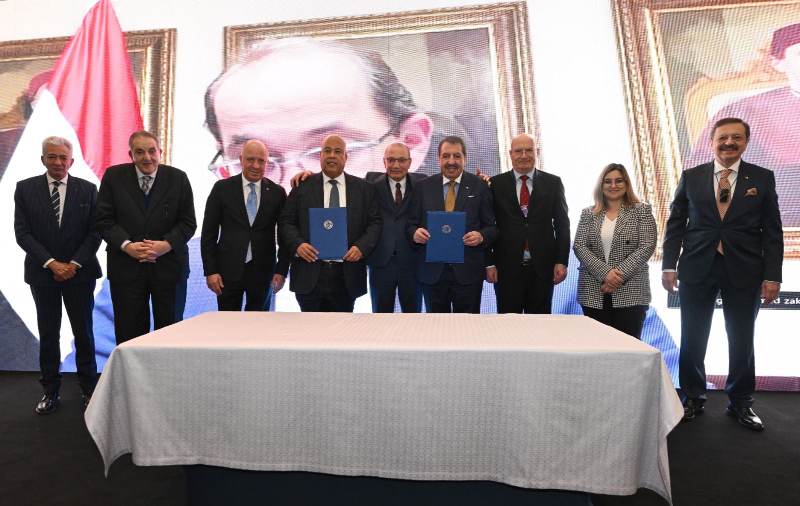 Mısır Maliye Bakanı Ahmed Kouchouk'un çevrim içi katılım sağladığı; iki ülke iş insanlarının Türkiye-Mısır ekonomik ve ticari ilişkileri ile iş birliği fırsatlarını değerlendirdiği programda; TOBB ve Mısır Ticaret ve Sanayi Odaları Federasyonu ile Ankara Ticaret Odası'nın da aralarında bulunduğu iki ülke Oda ve Borsaları arasında sanayi, ticaret, tarım, balıkçılık, turizm, lojistik ve inşaat alanlarında iş birliği anlaşmaları imzalandı.