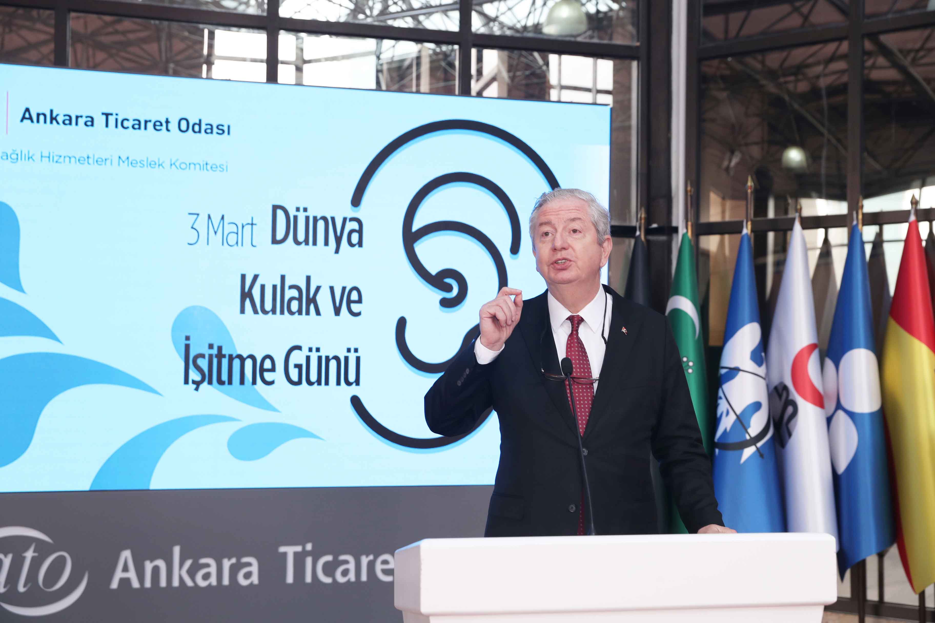 4 MART 2022 - Ankara Ticaret Odası (ATO) Yönetim Kurulu Başkanı Gürsel Baran, kulak sağlığı konusunda erken teşhis ve farkındalığı sağlamak, işitme engelli bireylerin sosyal hayata kazanımını arttırmak amacıyla "3 Mart Dünya Kulak ve İşitme Günü"nde, ATO'nun 56 No'lu Sağlık Hizmetleri Meslek Komitesi tarafından düzenlenen etkinliğe katıldı.