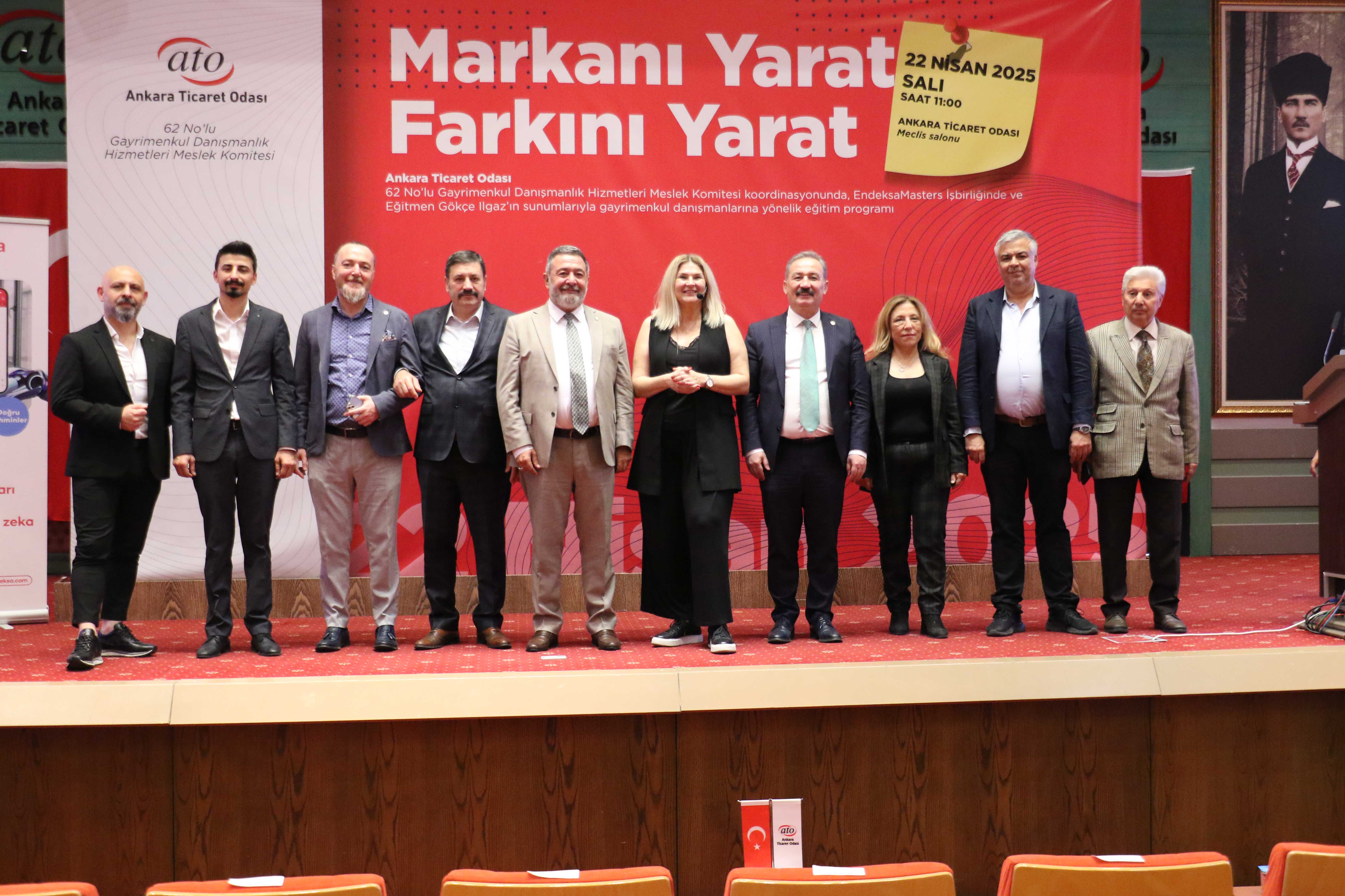 22 Nisan 2025-Ankara Ticaret Odası'nın (ATO) 62 No'lu Gayrimenkul Danışmanlık Hizmetleri Meslek Komitesi'nin, Endeksa Masters işbirliğinde düzenlediği "Markanı Yarat Farkını Yarat" konulu eğitim programı ATO Meclis Salonu'nda gerçekleşti.